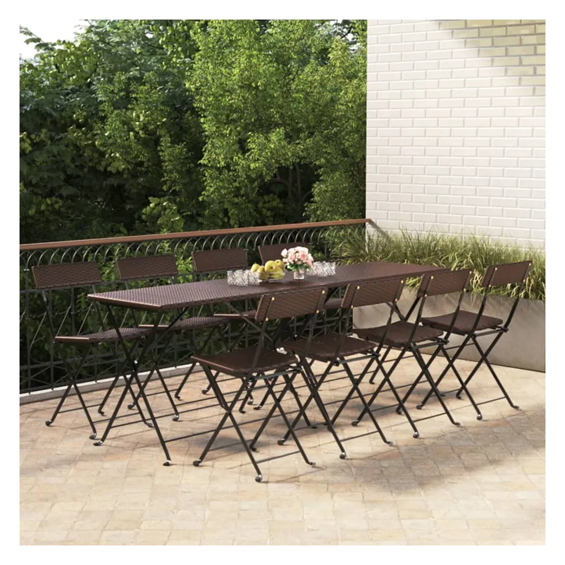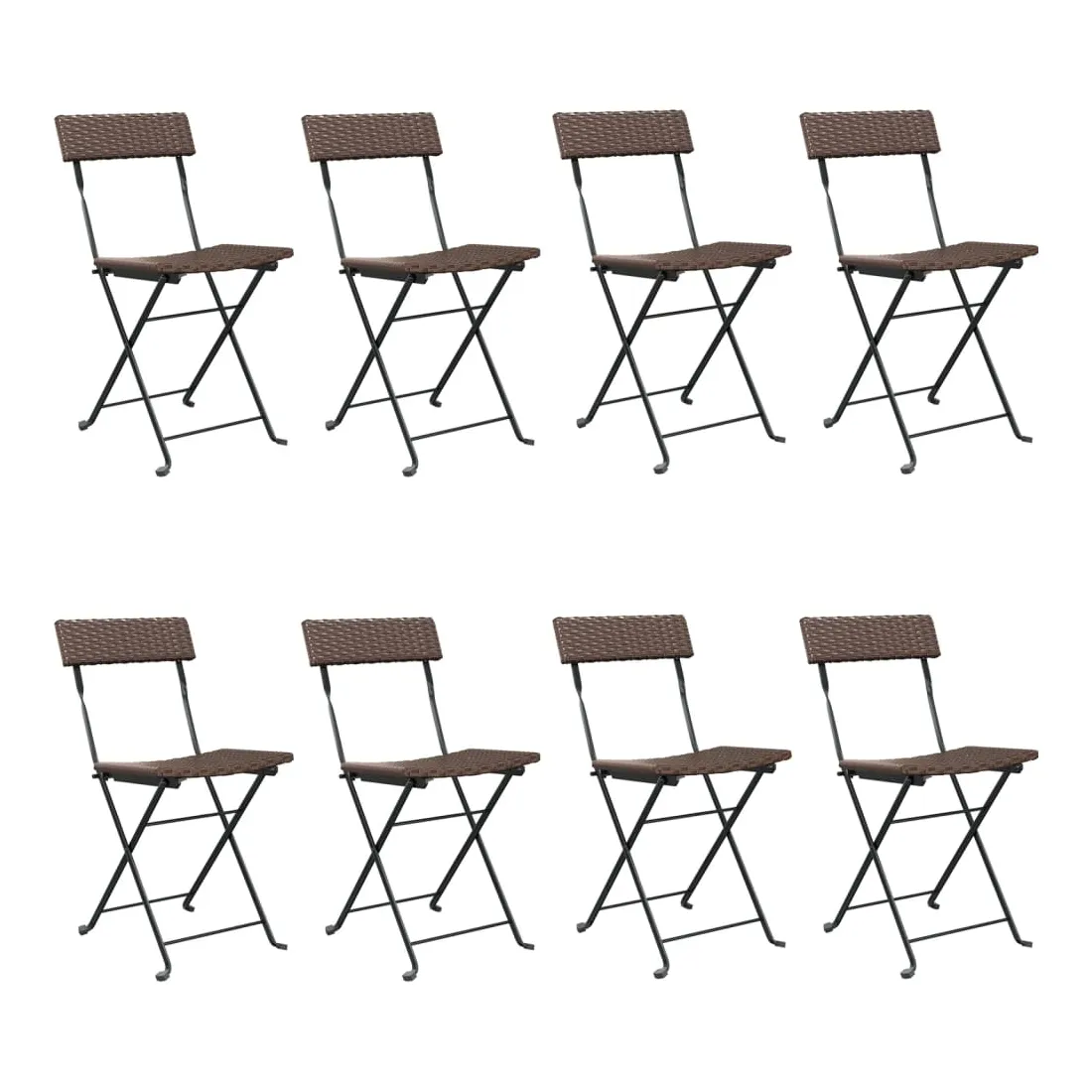 Ces chaises de bistrot pliantes sont le complément parfait à votre jardin et à votre terrasse, créant une impression durable ! Matériau durable : la résine tressée, également connue sous le nom de rotin poly, résiste aux intempéries et est facile à nettoyer. Elle reste belle à l'extérieur pendant une longue période. Elle est plus économique que d'autres matériaux, tout en offrant une excellente qualité, une commodité et un aspect esthétique.Cadre stable : le cadre en acier enduit de poudre assure la robustesse et la stabilité.Design pliable : les chaises peuvent être facilement repliées lorsqu'elles ne sont pas utilisées pour faciliter le rangement et le transport. Bon à savoir :Pour faciliter au maximum le montage, chaque produit est livré avec des instructions. Remarque :Pour que vos meubles d'extérieur restent beaux, nous vous recommandons de les protéger avec une housse imperméable.