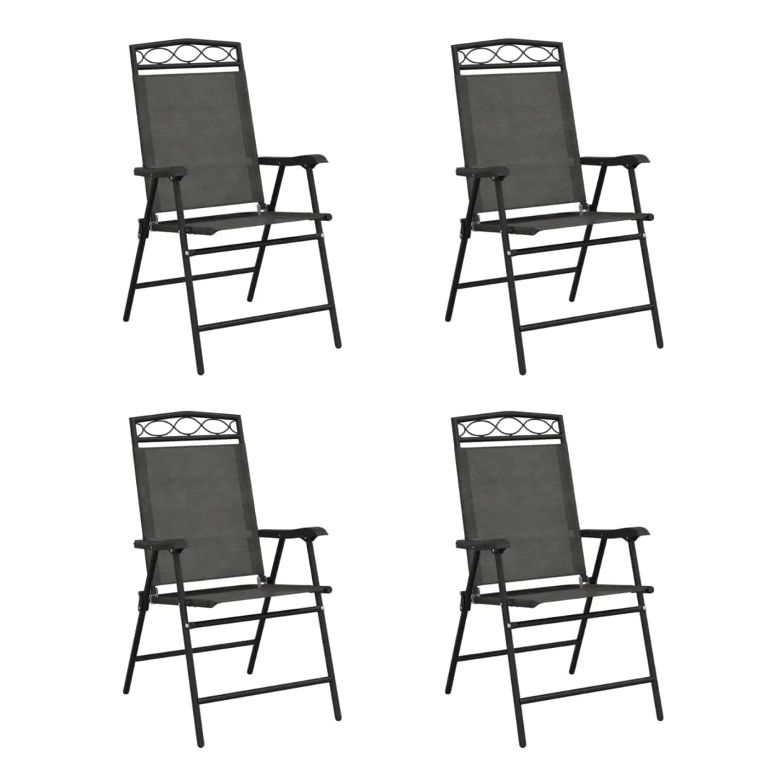 Ces chaises de jardin ont un design élégant et seront un excellent choix pour les repas en plein air dans le jardin ou sur la terrasse. Durable et longue durée de vie : le tissu textilène est apprécié pour sa durabilité, résistance à l'eau et à la décoloration, facilité d'entretien et protection contre les rayons UV et la moisissure, ce qui en fait un choix idéal pour le meuble d'extérieur et les structures d'ombrage.Robuste et stable : le cadre en acier impressionne par sa solidité, sa durabilité et sa résistance à la corrosion, ce qui en fait un choix idéal pour diverses applications, y compris la fabrication et la construction de meubles.Facile à transporter et à ranger : le siège de jardin est pliable et compact, ce qui permet de le ranger et de le transporter facilement. C'est un choix idéal pour les activités de plein air.Une expérience d'assise confortable : dotée d'accoudoirs et d'un dossier, la chaise d'extérieur vous offre un confort optimal. Bon à savoir :Pour que vos meubles d'extérieur restent beaux, nous vous recommandons de les protéger avec une housse imperméable.