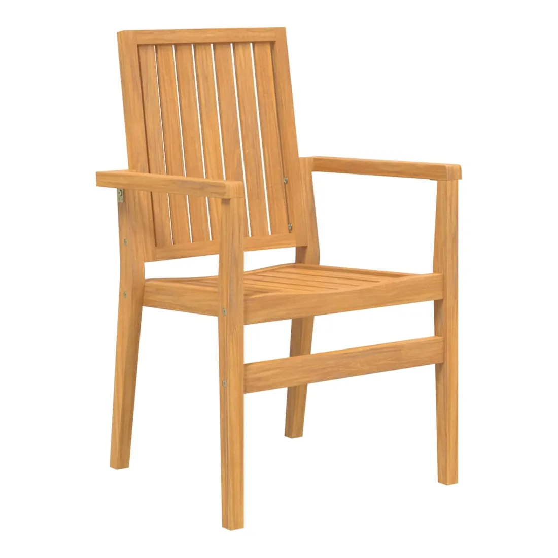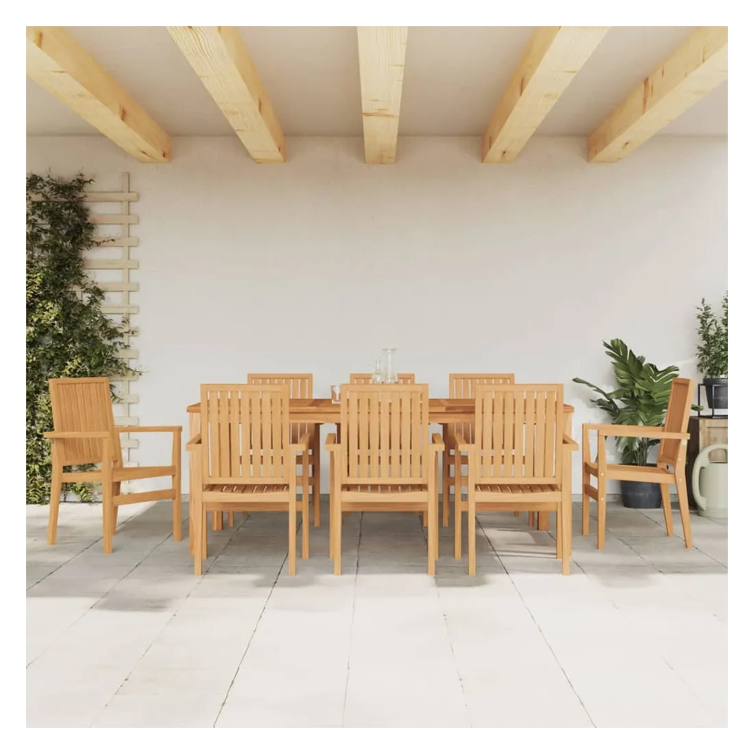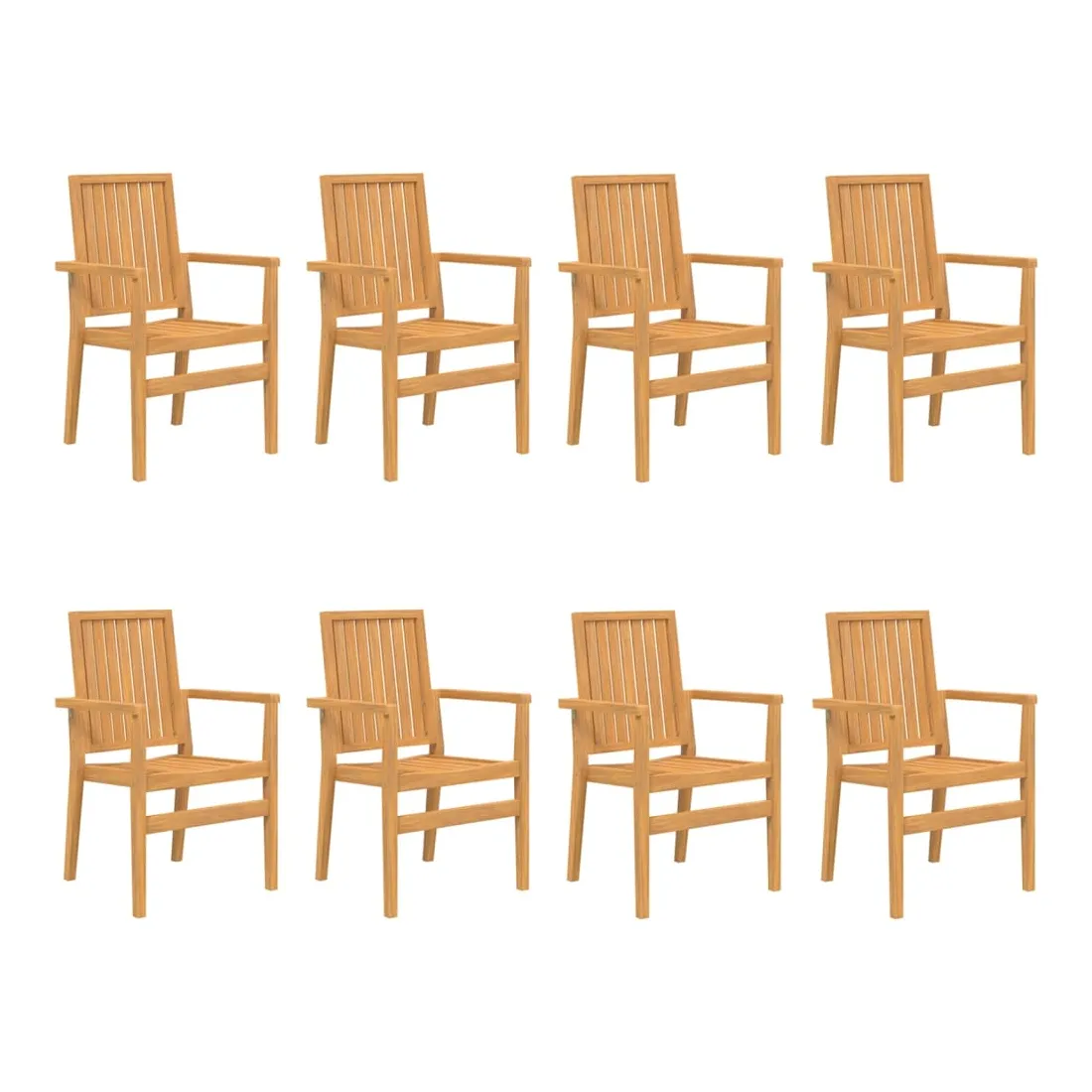 Ces chaises de jardin empilables en bois présentent un design classique et seront un excellent supplément à votre jardin, patio ou terrasse. Bois de teck massif : le bois de teck massif est un matériau naturel magnifique. Il a été chevronné, séché au four, puis sablé finement pour lui donner une apparence très lisse. Le bois de teck est connu pour sa résistance exceptionnelle et sa résistance aux intempéries.Expérience d'assise confortable : dotée d'accoudoirs et d'un dossier, la chaise de jardin vous offre le plus grand confort.Conception empilable : la chaise de jardin est empilable pour économiser de l'espace de stockage lorsqu'elle n'est pas utilisée. Bon à savoir :Pour que vos meubles d'extérieur restent beaux, nous vous recommandons de les protéger avec une housse imperméable.