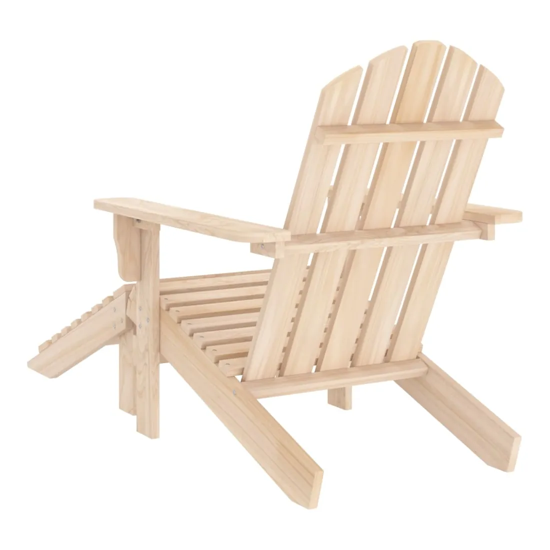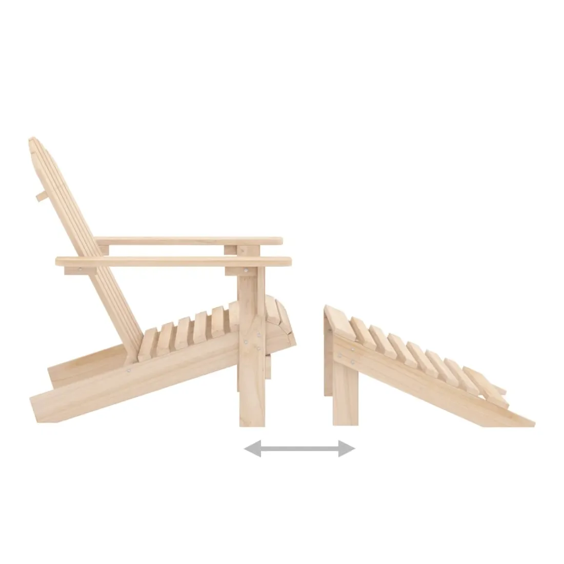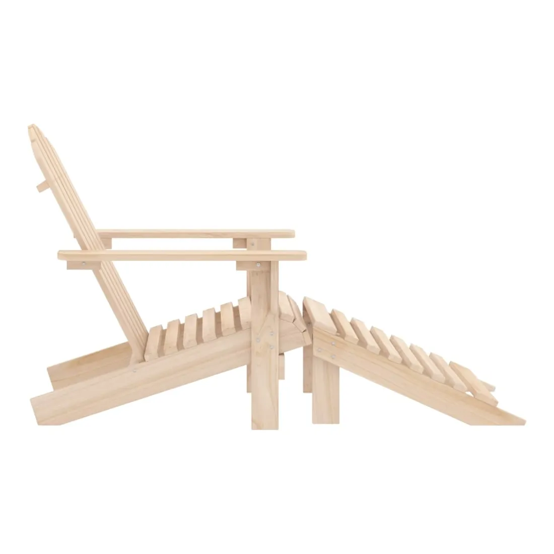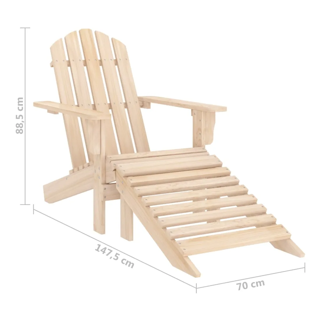 Détendez-vous dans le jardin ou sur la terrasse dans cette chaise Adirondack tendance et confortable avec pouf ! Cette chaise de jardin, fabriquée à partir de bois de sapin massif, dispose d'un cadre robuste et est stable, ce qui la rend facile à entretenir et résistante aux intempéries. La structure de conception ergonomique assure également un confort optimal. De plus, le pouf est détachable et peut fournir un soutien supplémentaire pour vos pieds. Avec un design élégant et intemporel, ce sera un supplément pratique et classique à votre espace de vie extérieur. Remarque : afin de prolonger la durée de vie des meubles d'extérieur, nous vous recommandons de les protéger avec une housse imperméable.