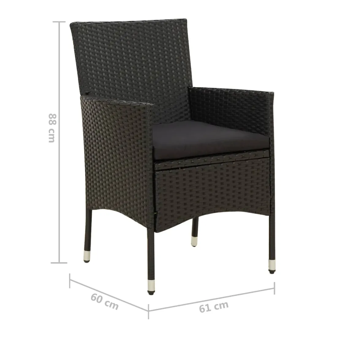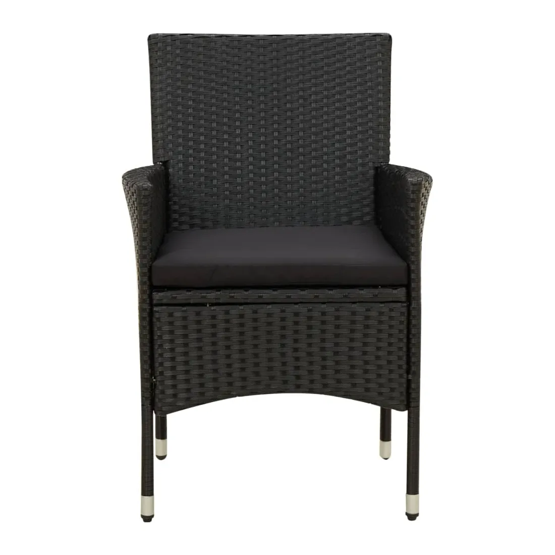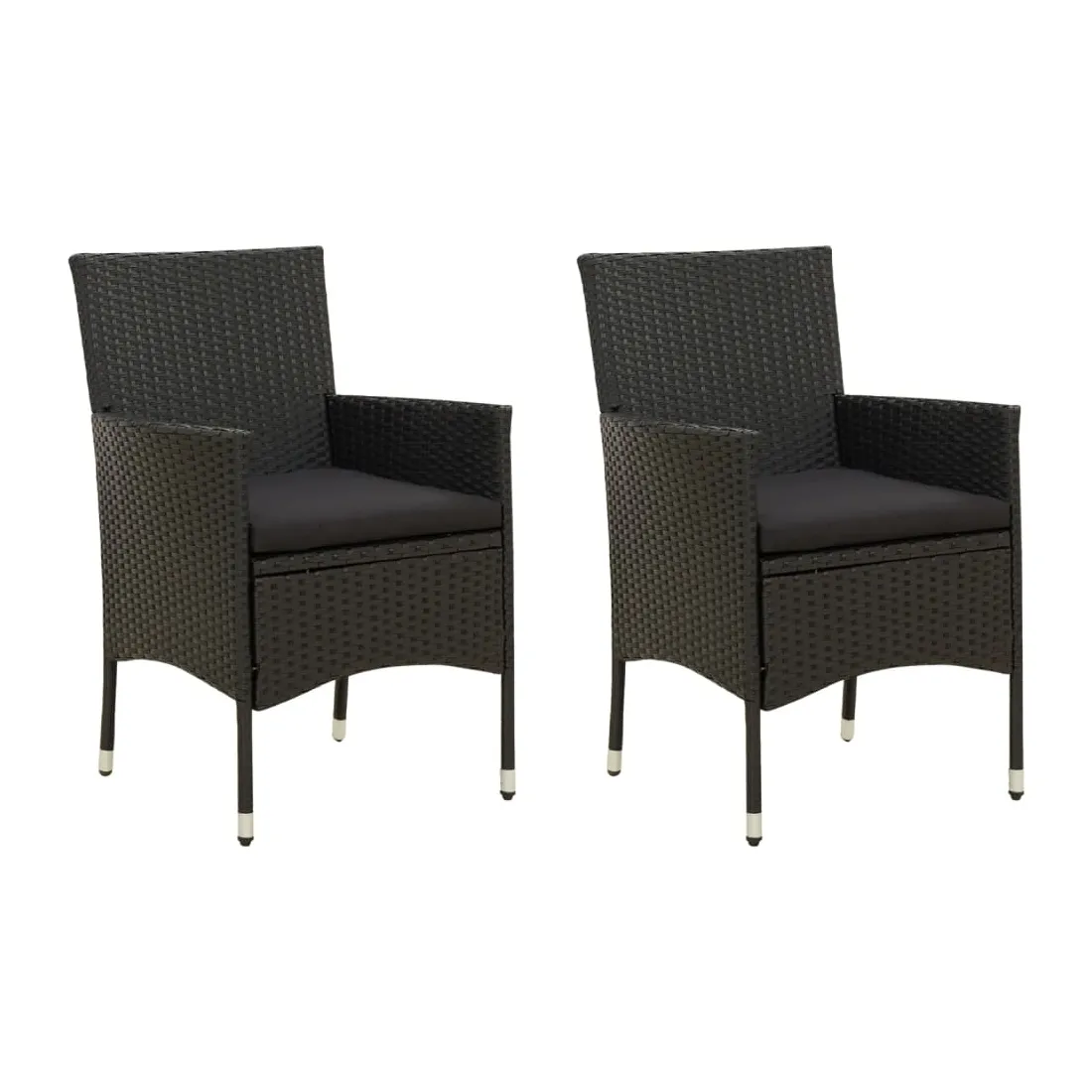vidaXLDînez avec les membres de votre famille ou profitez simplement du temps dans votre espace extérieur avec cet ensemble de chaises de jardin. La chaise d’extérieur est fabriquée à partir d’un solide cadre en acier enduit de poudre, ce qui la rend robuste et stable pour des années de détente. Le fauteuil recouvert de résine tressée est facile à nettoyer avec un chiffon humide et convient à une utilisation quotidienne à l’extérieur. De plus, le coussin d'assise bien rembourré ajoute un confort supplémentaire à la chaise. Remarque : afin de prolonger la durée de vie de vos meubles d'extérieur, nous vous recommandons de les nettoyer régulièrement et de ne pas les laisser à l'extérieur sans protection inutilement.Nettoyage : Utiliser une solution savonneuse douce.Stockage : si possible, stockez dans un endroit frais et sec à l'intérieur. Si le produit est stocké à l'extérieur, protégez-le avec une housse imperméable. Essuyez et séchez l'excès d'eau ou de neige des surfaces planes après la pluie ou une chute de neige. Permettez une circulation d'air suffisante afin d'éviter les dommages liés à l'humidité.