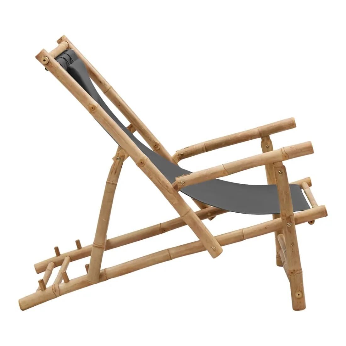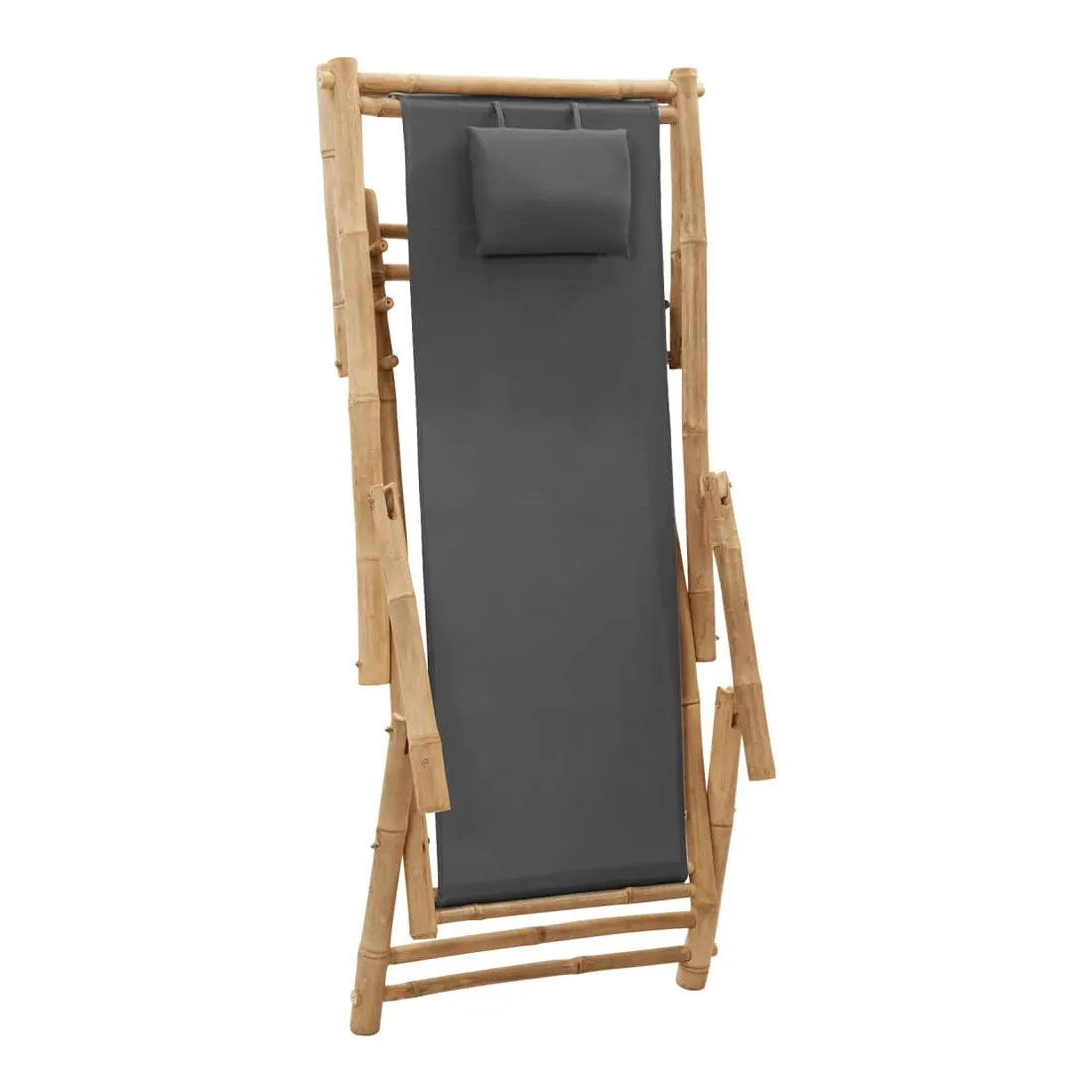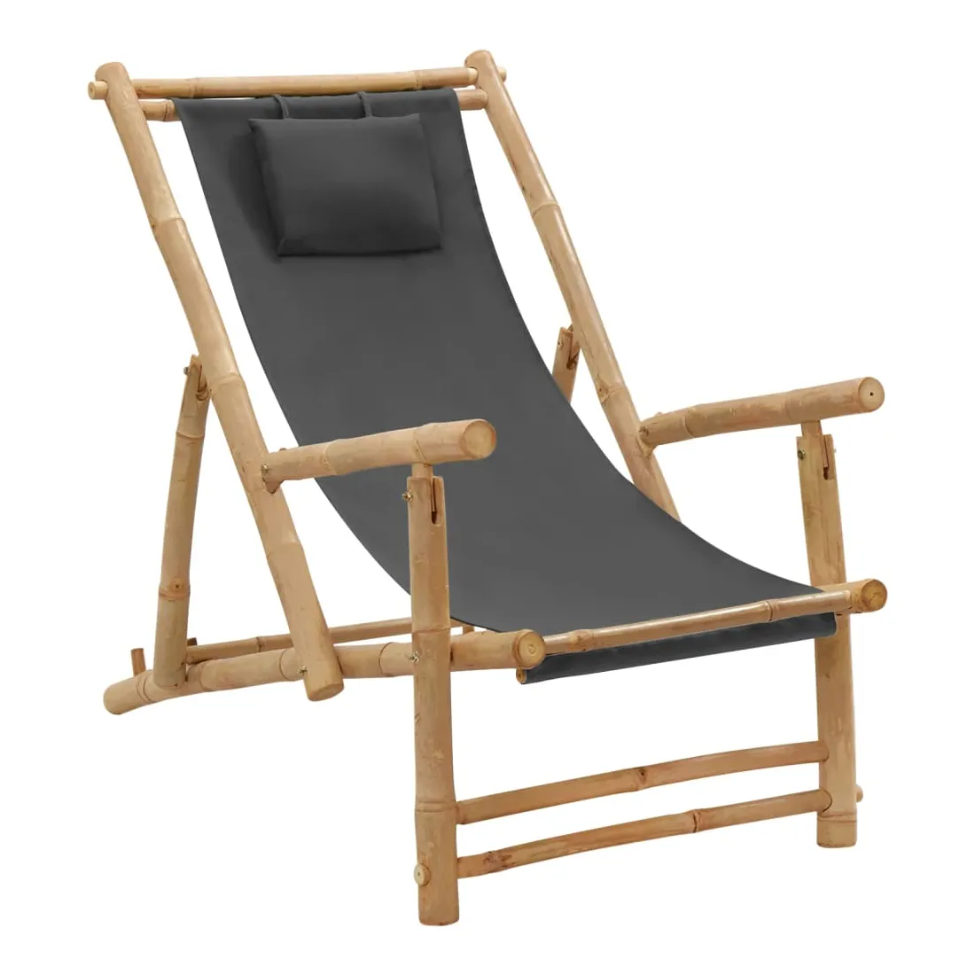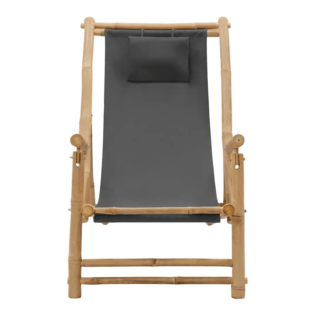Cette chaise de terrasse en bambou réglable en hauteur avec accoudoirs est conçue pour être un supplément fabuleux à votre jardin, patio ou terrasse. Matériau de première qualité : la toile est un tissu uni largement utilisé, connu pour sa robustesse, sa résistance à l'eau, sa légèreté et son utilisation intensive. De plus, il a un tissage plus serré que la plupart des tissus tissés, ce qui le rend plus rigide et durable.Cadre stable : le cadre de la chaise est fabriqué en bambou , qui est extrêmement durable. Le matériau ne change pas de couleur pendant longtemps et empêche la chaise de plage de se fissurer et de se déformer.Design pliable : la chaise longue peut être pliée pour économiser de l'espace lorsqu'elle n'est pas utilisée.Dossier réglable : grâce au dossier réglable, la chaise de jardin en bambou peut être ajustée en 3 positions. Par conséquent, vous pouvez profiter d'un confort maximal. Remarque :Afin de prolonger la durée de vie de votre mobilier d'extérieur, nous vous recommandons de le protéger avec une housse imperméable.