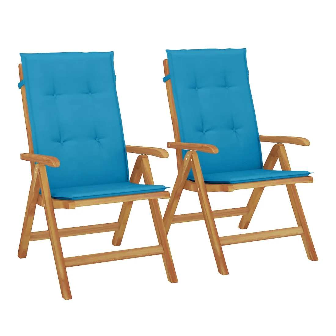 Améliorez le confort de votre espace extérieur avec ces chaises de jardin en bois classiques. Elles sont idéales pour discuter en famille et entre amis ou simplement pour profiter du bain de soleil ! Bois de teck massif : le bois de teck massif est un matériau naturel magnifique. Il a été chevronné, séché au four, puis sablé finement pour lui donner une apparence très lisse. Le bois de teck est connu pour sa résistance exceptionnelle et sa résistance aux intempéries.Dossier réglable : les dossiers des chaises de jardin sont réglables en 6 positions afin que vous puissiez toujours trouver la position la plus confortable.Fonction pliable : la chaise de jardin est pliable, ce qui vous permet de la replier pour gagner de la place lorsque vous ne l'utilisez pas.Assise confortable : la chaise d'extérieur, avec son assise à lattes, ses accoudoirs et son dossier incurvés, s'adapte à votre corps et vous offre un confort optimal. De plus, le coussin moelleux offre un confort d'assise optimal.Coussin antidérapant : des cordes bien conçues et une sangle arrière élastique permettent de fixer facilement le coussin à la chaise et de le maintenir proprement et en toute sécurité. Bon à savoir :Pour que vos meubles d'extérieur restent beaux, nous vous recommandons de les protéger avec une housse imperméable.