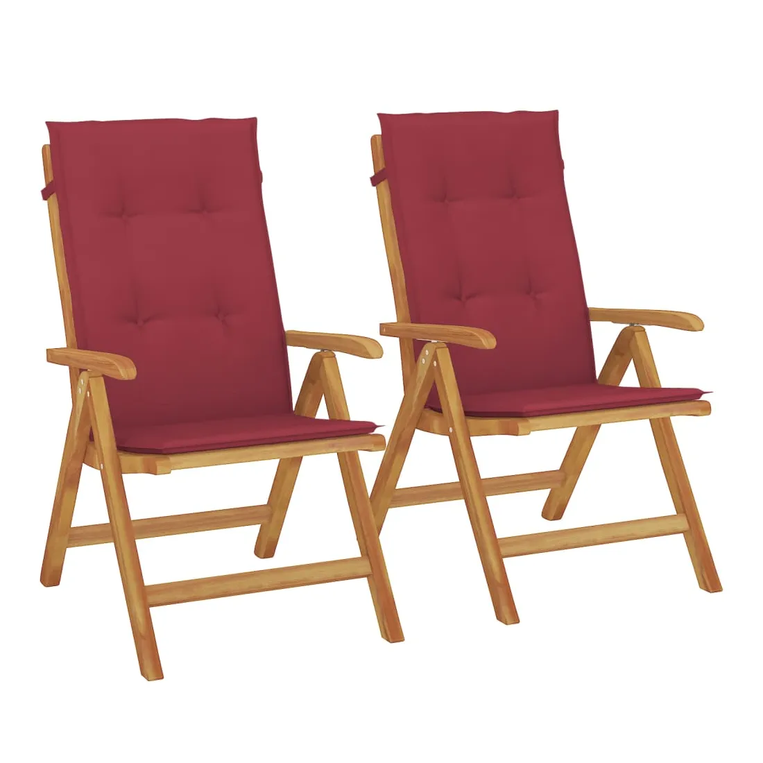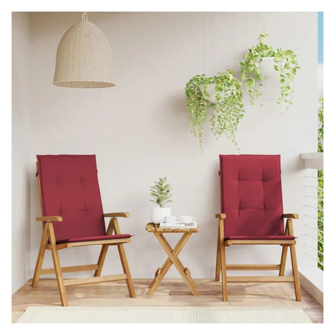 Améliorez le confort de votre espace extérieur avec ces chaises de jardin en bois classiques. Elles sont idéales pour discuter en famille et entre amis ou simplement pour profiter du bain de soleil ! Bois de teck massif : le bois de teck massif est un matériau naturel magnifique. Il a été chevronné, séché au four, puis sablé finement pour lui donner une apparence très lisse. Le bois de teck est connu pour sa résistance exceptionnelle et sa résistance aux intempéries.Dossier réglable : les dossiers des chaises de jardin sont réglables en 6 positions afin que vous puissiez toujours trouver la position la plus confortable.Fonction pliable : la chaise de jardin est pliable, ce qui vous permet de la replier pour gagner de la place lorsque vous ne l'utilisez pas.Assise confortable : la chaise d'extérieur, avec son assise à lattes, ses accoudoirs et son dossier incurvés, s'adapte à votre corps et vous offre un confort optimal. De plus, le coussin moelleux offre un confort d'assise optimal.Coussin antidérapant : des cordes bien conçues et une sangle arrière élastique permettent de fixer facilement le coussin à la chaise et de le maintenir proprement et en toute sécurité. Bon à savoir :Pour que vos meubles d'extérieur restent beaux, nous vous recommandons de les protéger avec une housse imperméable.