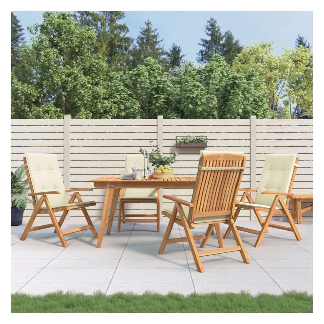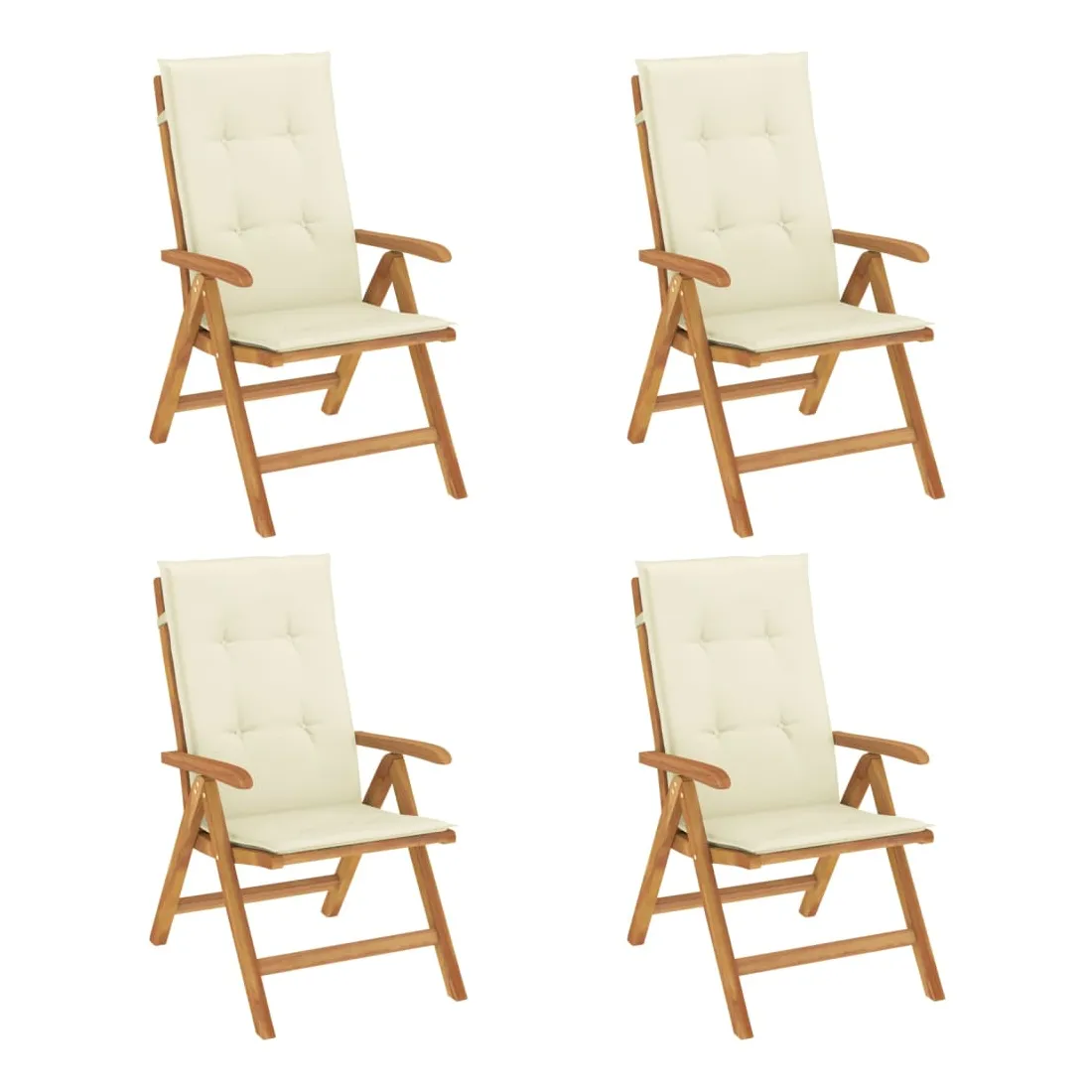 Améliorez le confort de votre espace extérieur avec ces chaises de jardin en bois classiques. Elles sont idéales pour discuter en famille et entre amis ou simplement pour profiter du bain de soleil ! Bois de teck massif : le bois de teck massif est un matériau naturel magnifique. Il a été chevronné, séché au four, puis sablé finement pour lui donner une apparence très lisse. Le bois de teck est connu pour sa résistance exceptionnelle et sa résistance aux intempéries.Dossier réglable : les dossiers des chaises de jardin sont réglables en 6 positions afin que vous puissiez toujours trouver la position la plus confortable.Fonction pliable : la chaise de jardin est pliable, ce qui vous permet de la replier pour gagner de la place lorsque vous ne l'utilisez pas.Assise confortable : la chaise d'extérieur, avec son assise à lattes, ses accoudoirs et son dossier incurvés, s'adapte à votre corps et vous offre un confort optimal. De plus, le coussin moelleux offre un confort d'assise optimal.Coussin antidérapant : des cordes bien conçues et une sangle arrière élastique permettent de fixer facilement le coussin à la chaise et de le maintenir proprement et en toute sécurité. Bon à savoir :Pour que vos meubles d'extérieur restent beaux, nous vous recommandons de les protéger avec une housse imperméable.