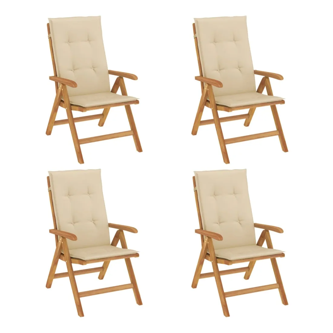 Améliorez le confort de votre espace extérieur avec ces chaises de jardin en bois classiques. Elles sont idéales pour discuter en famille et entre amis ou simplement pour profiter du bain de soleil ! Bois de teck massif : le bois de teck massif est un matériau naturel magnifique. Il a été chevronné, séché au four, puis sablé finement pour lui donner une apparence très lisse. Le bois de teck est connu pour sa résistance exceptionnelle et sa résistance aux intempéries.Dossier réglable : les dossiers des chaises de jardin sont réglables en 6 positions afin que vous puissiez toujours trouver la position la plus confortable.Fonction pliable : la chaise de jardin est pliable, ce qui vous permet de la replier pour gagner de la place lorsque vous ne l'utilisez pas.Assise confortable : la chaise d'extérieur, avec son assise à lattes, ses accoudoirs et son dossier incurvés, s'adapte à votre corps et vous offre un confort optimal. De plus, le coussin moelleux offre un confort d'assise optimal.Coussin antidérapant : des cordes bien conçues et une sangle arrière élastique permettent de fixer facilement le coussin à la chaise et de le maintenir proprement et en toute sécurité. Bon à savoir :Pour que vos meubles d'extérieur restent beaux, nous vous recommandons de les protéger avec une housse imperméable.