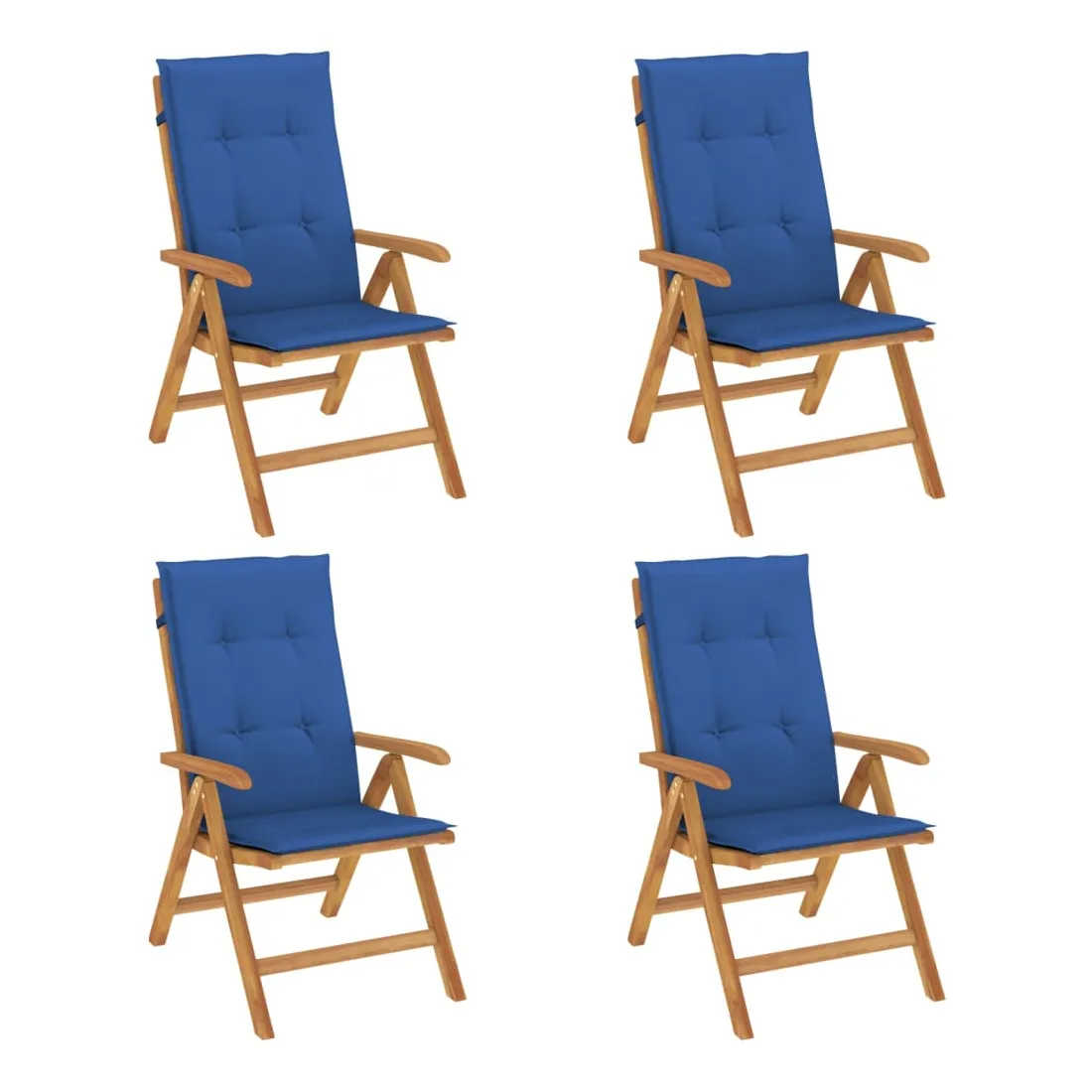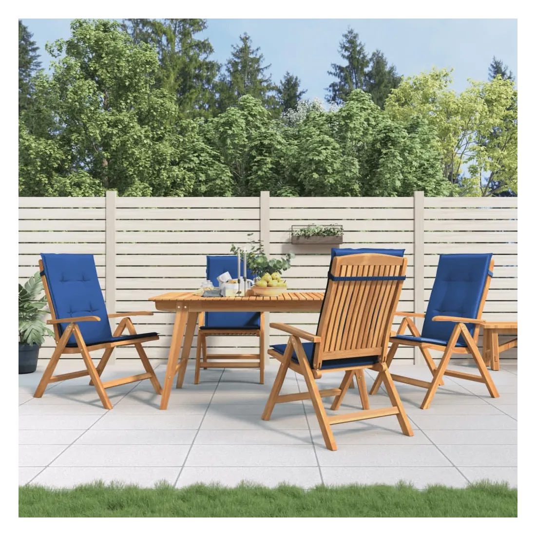 Améliorez le confort de votre espace extérieur avec ces chaises de jardin en bois classiques. Elles sont idéales pour discuter en famille et entre amis ou simplement pour profiter du bain de soleil ! Bois de teck massif : le bois de teck massif est un matériau naturel magnifique. Il a été chevronné, séché au four, puis sablé finement pour lui donner une apparence très lisse. Le bois de teck est connu pour sa résistance exceptionnelle et sa résistance aux intempéries.Dossier réglable : les dossiers des chaises de jardin sont réglables en 6 positions afin que vous puissiez toujours trouver la position la plus confortable.Fonction pliable : la chaise de jardin est pliable, ce qui vous permet de la replier pour gagner de la place lorsque vous ne l'utilisez pas.Assise confortable : la chaise d'extérieur, avec son assise à lattes, ses accoudoirs et son dossier incurvés, s'adapte à votre corps et vous offre un confort optimal. De plus, le coussin moelleux offre un confort d'assise optimal.Coussin antidérapant : des cordes bien conçues et une sangle arrière élastique permettent de fixer facilement le coussin à la chaise et de le maintenir proprement et en toute sécurité. Bon à savoir :Pour que vos meubles d'extérieur restent beaux, nous vous recommandons de les protéger avec une housse imperméable.