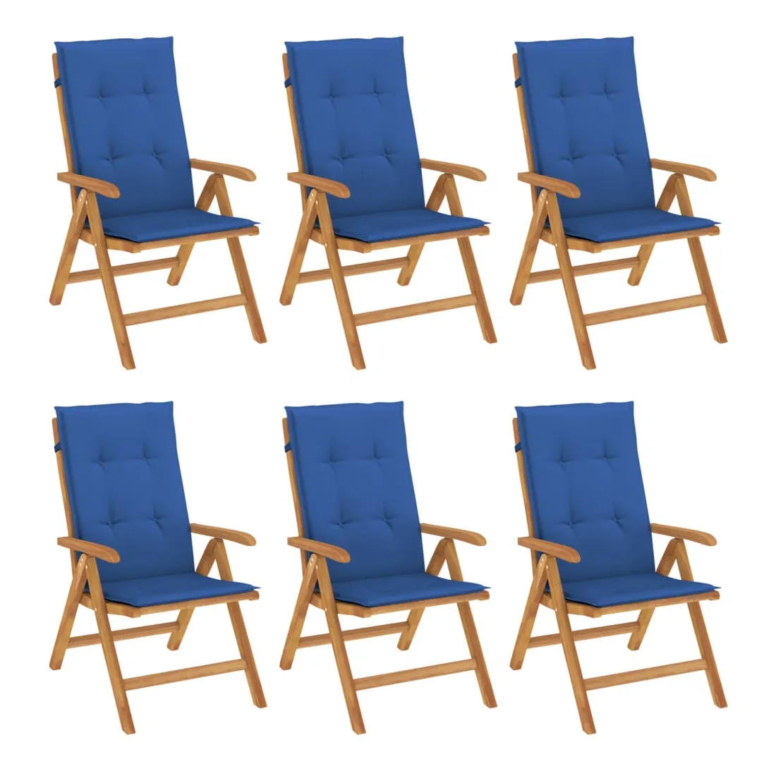 Améliorez le confort de votre espace extérieur avec ces chaises de jardin en bois classiques. Elles sont idéales pour discuter en famille et entre amis ou simplement pour profiter du bain de soleil ! Bois de teck massif : le bois de teck massif est un matériau naturel magnifique. Il a été chevronné, séché au four, puis sablé finement pour lui donner une apparence très lisse. Le bois de teck est connu pour sa résistance exceptionnelle et sa résistance aux intempéries.Dossier réglable : les dossiers des chaises de jardin sont réglables en 6 positions afin que vous puissiez toujours trouver la position la plus confortable.Fonction pliable : la chaise de jardin est pliable, ce qui vous permet de la replier pour gagner de la place lorsque vous ne l'utilisez pas.Assise confortable : la chaise d'extérieur, avec son assise à lattes, ses accoudoirs et son dossier incurvés, s'adapte à votre corps et vous offre un confort optimal. De plus, le coussin moelleux offre un confort d'assise optimal.Coussin antidérapant : des cordes bien conçues et une sangle arrière élastique permettent de fixer facilement le coussin à la chaise et de le maintenir proprement et en toute sécurité. Bon à savoir :Pour que vos meubles d'extérieur restent beaux, nous vous recommandons de les protéger avec une housse imperméable.