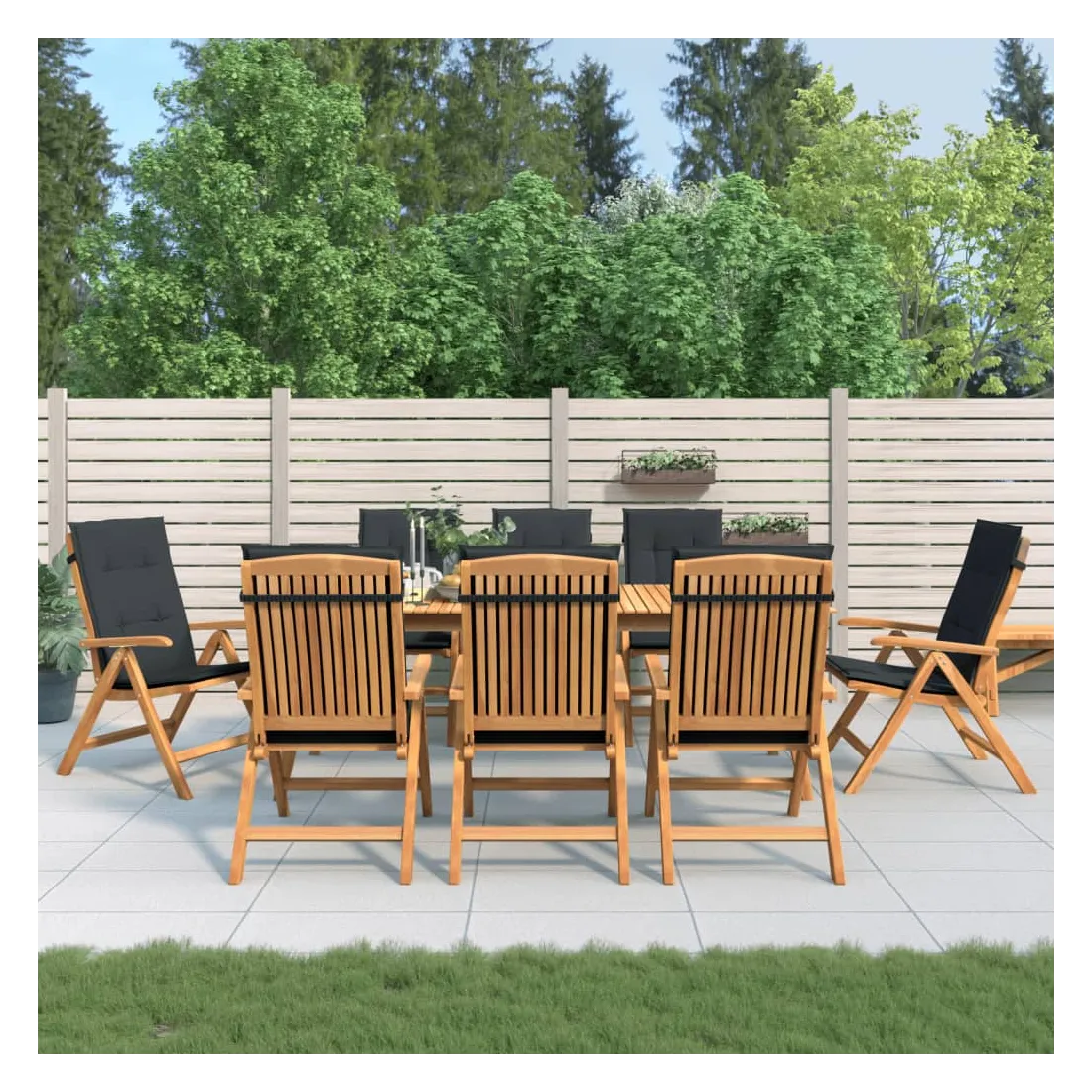 Améliorez le confort de votre espace extérieur avec ces chaises de jardin en bois classiques. Elles sont idéales pour discuter en famille et entre amis ou simplement pour profiter du bain de soleil ! Bois de teck massif : le bois de teck massif est un matériau naturel magnifique. Il a été chevronné, séché au four, puis sablé finement pour lui donner une apparence très lisse. Le bois de teck est connu pour sa résistance exceptionnelle et sa résistance aux intempéries.Dossier réglable : les dossiers des chaises de jardin sont réglables en 6 positions afin que vous puissiez toujours trouver la position la plus confortable.Fonction pliable : la chaise de jardin est pliable, ce qui vous permet de la replier pour gagner de la place lorsque vous ne l'utilisez pas.Assise confortable : la chaise d'extérieur, avec son assise à lattes, ses accoudoirs et son dossier incurvés, s'adapte à votre corps et vous offre un confort optimal. De plus, le coussin moelleux offre un confort d'assise optimal.Coussin antidérapant : des cordes bien conçues et une sangle arrière élastique permettent de fixer facilement le coussin à la chaise et de le maintenir proprement et en toute sécurité. Bon à savoir :Pour que vos meubles d'extérieur restent beaux, nous vous recommandons de les protéger avec une housse imperméable.