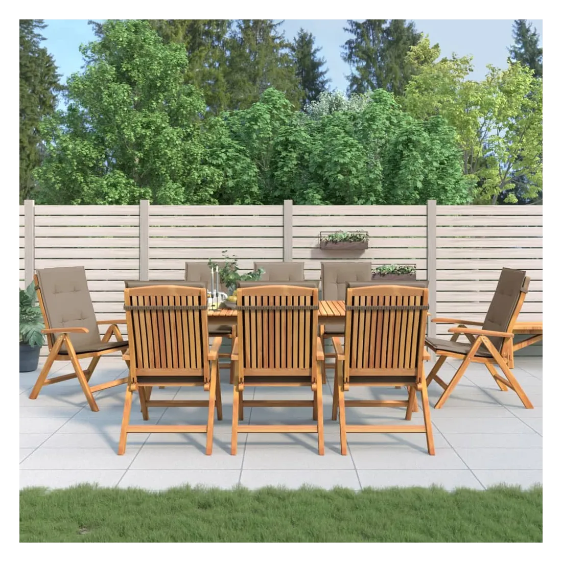 Améliorez le confort de votre espace extérieur avec ces chaises de jardin en bois classiques. Elles sont idéales pour discuter en famille et entre amis ou simplement pour profiter du bain de soleil ! Bois de teck massif : le bois de teck massif est un matériau naturel magnifique. Il a été chevronné, séché au four, puis sablé finement pour lui donner une apparence très lisse. Le bois de teck est connu pour sa résistance exceptionnelle et sa résistance aux intempéries.Dossier réglable : les dossiers des chaises de jardin sont réglables en 6 positions afin que vous puissiez toujours trouver la position la plus confortable.Fonction pliable : la chaise de jardin est pliable, ce qui vous permet de la replier pour gagner de la place lorsque vous ne l'utilisez pas.Assise confortable : la chaise d'extérieur, avec son assise à lattes, ses accoudoirs et son dossier incurvés, s'adapte à votre corps et vous offre un confort optimal. De plus, le coussin moelleux offre un confort d'assise optimal.Coussin antidérapant : des cordes bien conçues et une sangle arrière élastique permettent de fixer facilement le coussin à la chaise et de le maintenir proprement et en toute sécurité. Bon à savoir :Pour que vos meubles d'extérieur restent beaux, nous vous recommandons de les protéger avec une housse imperméable.