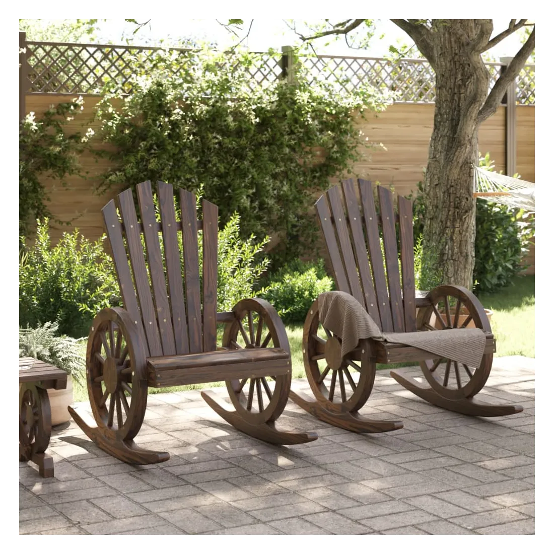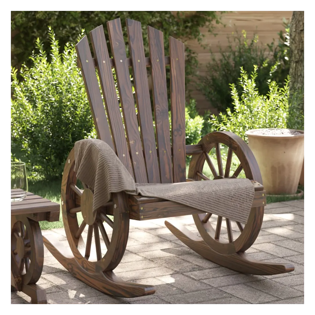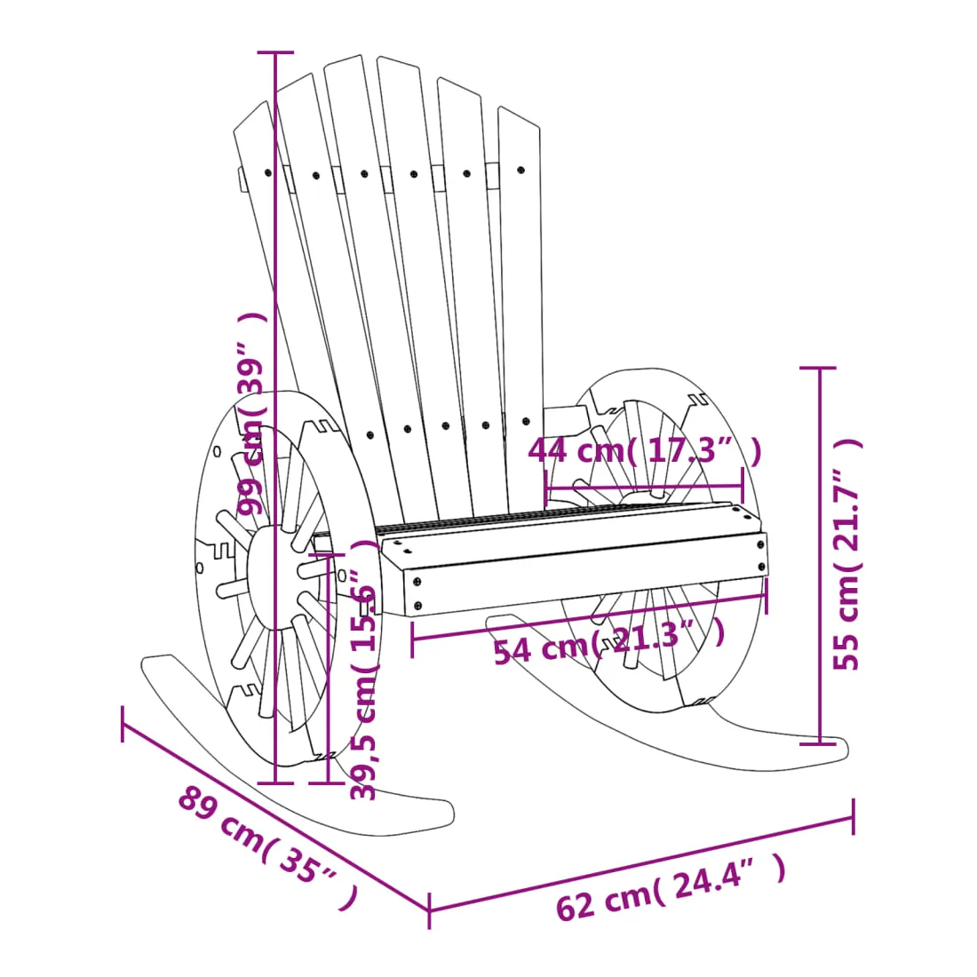 Ces chaises à bascule Adirondack sont parfaites pour ceux qui veulent profiter du plein air avec style et confort. Bois de sapin massif : le bois de sapin massif est un matériau beau et durable qui conserve son intégrité même lorsqu'il est exposé à l'humidité. Il ne sèche pas et ne se déforme pas, ce qui en fait un choix fiable.Assise confortable : la chaise longue de jardin est dotée d'une assise ergonomique et d'un dossier incliné pour un confort d'assise optimal. De plus, les accoudoirs en forme de roue de chariot offrent un espace confortable pour reposer vos bras.Design à bascule : détendez-vous en vous asseyant confortablement sur cette chaise à bascule Adirondack tout en profitant d'un mouvement de basculement doux et apaisant.Nombreuses applications : la chaise d'extérieur est une solution d'assise parfaite dans vos jardins, arrière-cours, pelouses, terrasses, bords de piscine, balcons et autres espaces de vie extérieurs. Bon à savoir :Pour que vos meubles d'extérieur restent beaux, nous vous recommandons de les protéger avec une housse imperméable.