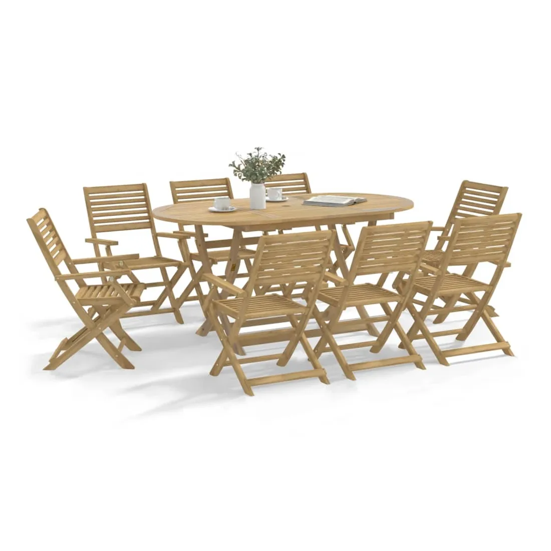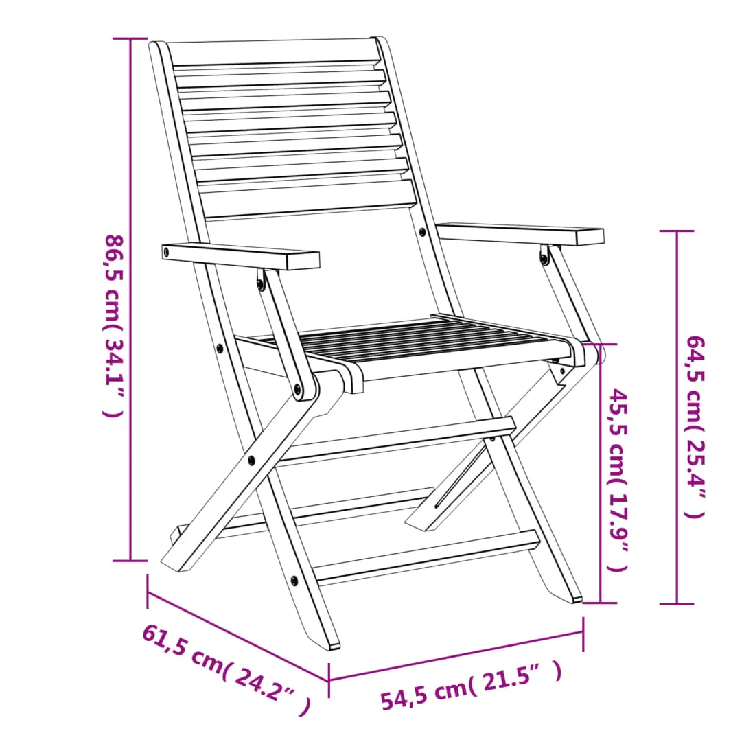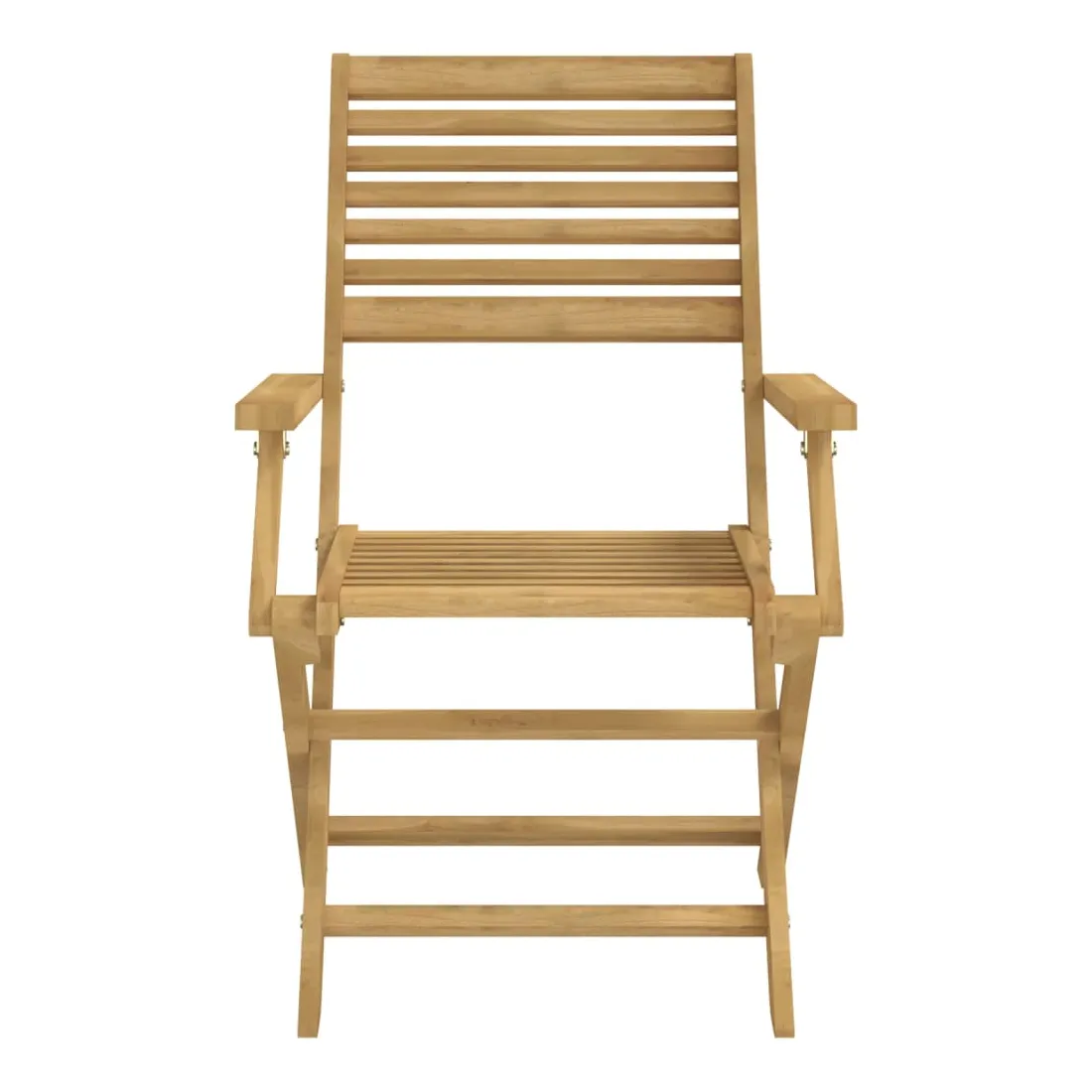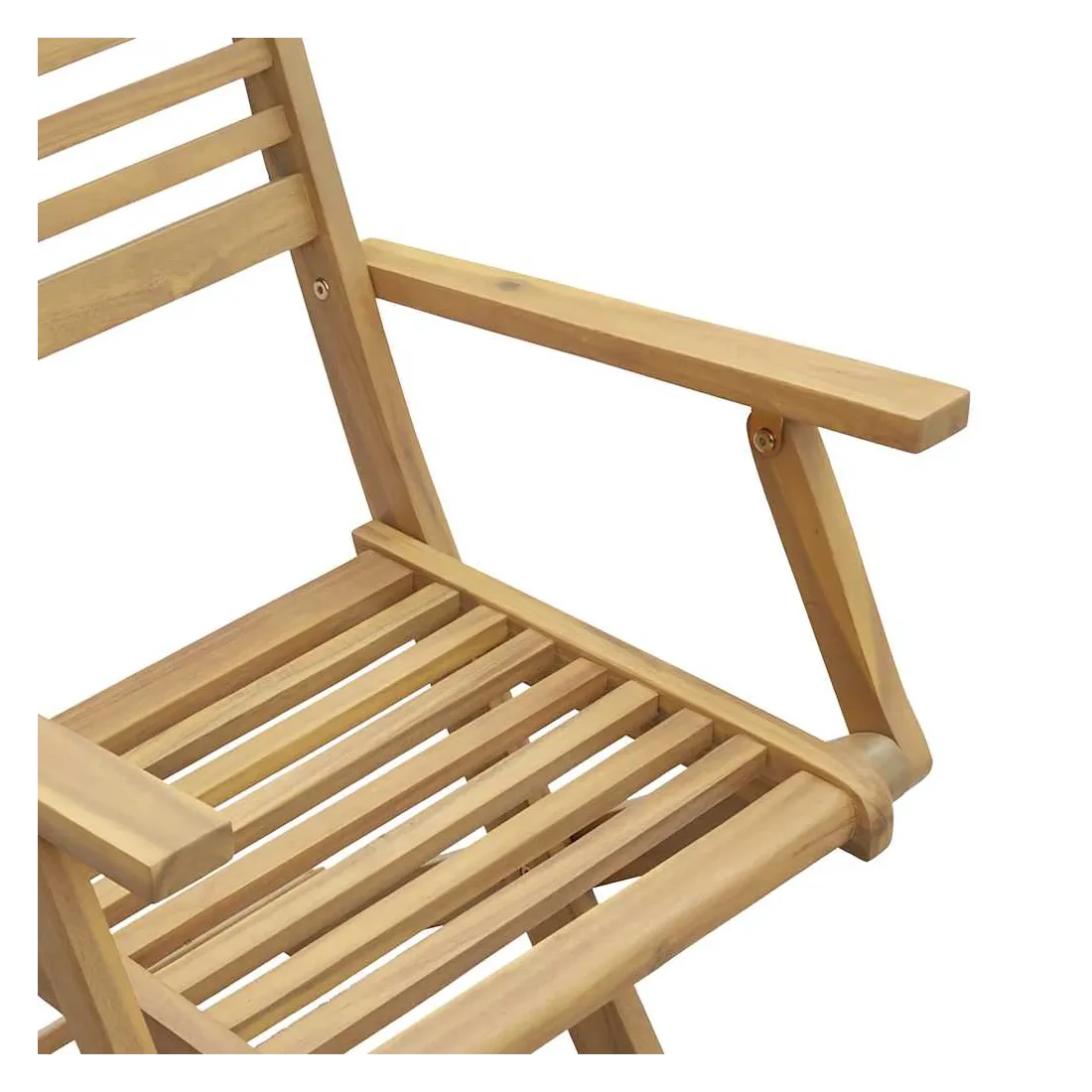 Ces chaises de jardin en bois complèteront à merveille votre jardin, patio ou terrasse, vous permettant de passer des moments agréables avec votre famille ou vos amis. Bois d'acacia massif : le siège de jardin est fabriqué en bois d'acacia massif pour plus de robustesse et de stabilité. Le bois d'acacia massif est un beau matériau naturel. Le bois d'acacia a un grain droit et les nœuds donnent au matériau son aspect caractéristique et rustique.Une expérience d'assise confortable : dotée d'accoudoirs et d'un dossier, la chaise d'extérieur vous offre un confort optimal.Design à lattes : le design à lattes de la chaise de jardin en bois empêche l'accumulation de l'eau, ce qui permet de garder le siège au sec et d'éviter un pourrissement inutile.Design pliable : la chaise de patio peut être facilement pliée lorsqu'elle n'est pas utilisée, pour un rangement et un transport faciles. Bon à savoir :Pour que vos meubles d'extérieur restent beaux, nous vous recommandons de les protéger avec une housse imperméable.