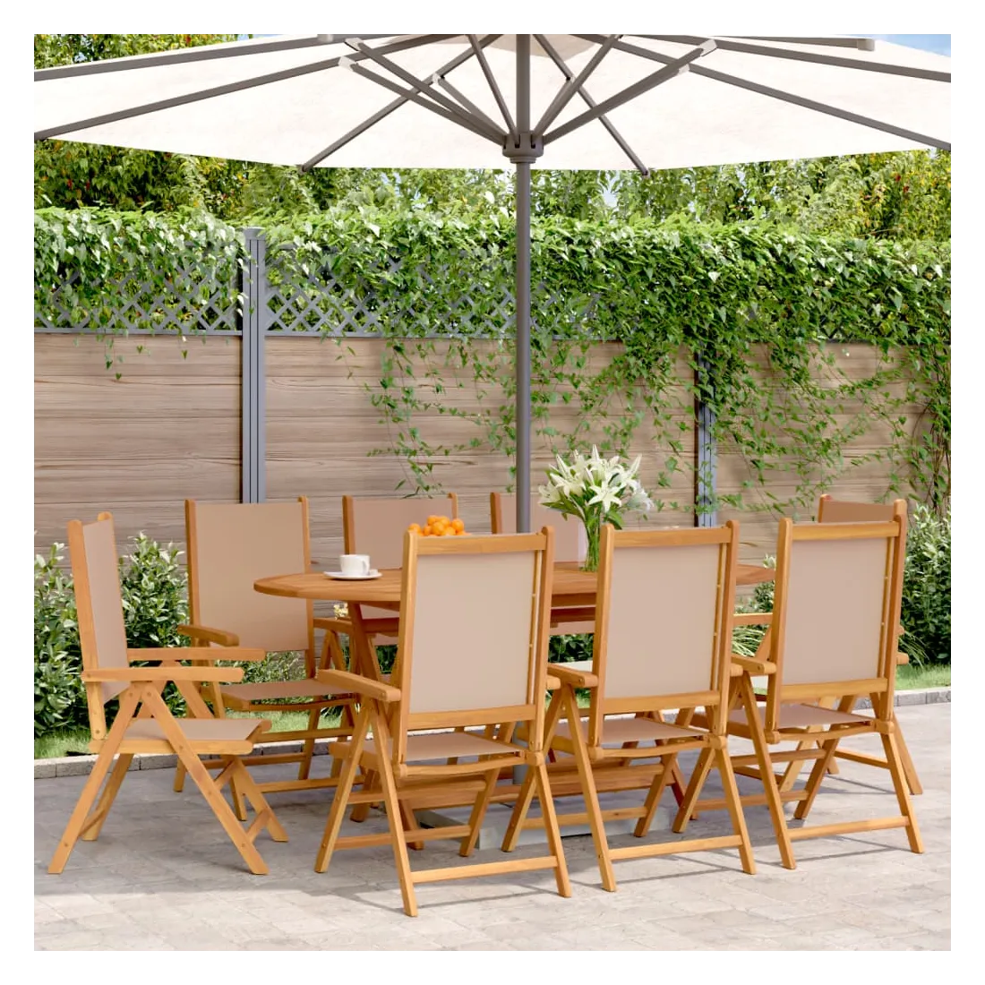 Chaises inclinables de jardin lot de 8 taupe tissu bois massif
