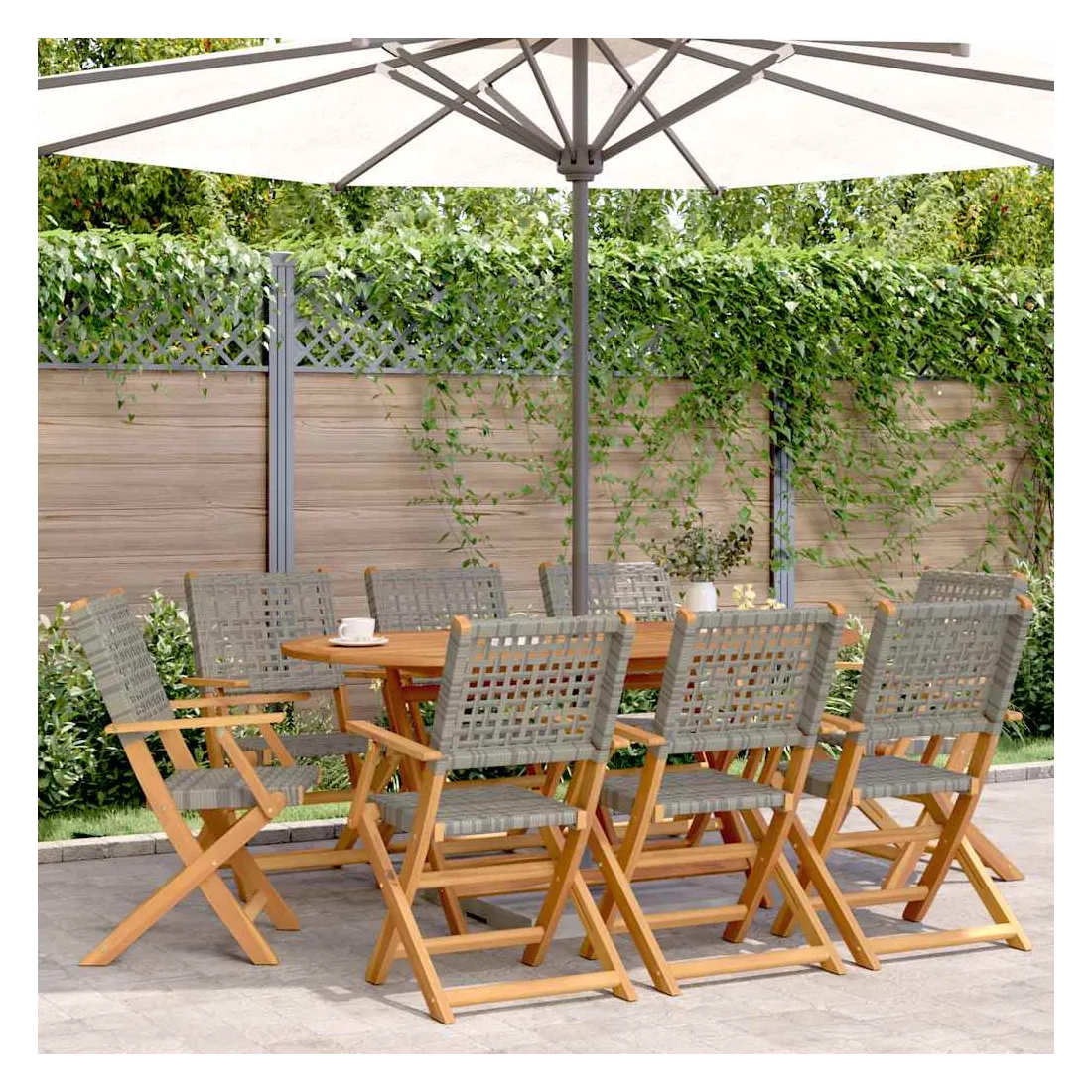 Détendez-vous et profitez de l'extérieur dans ces confortables chaises de jardin pliantes ! Robuste et stable : le bois d'acacia massif est connu pour sa solidité et sa durabilité. Ses couleurs variées et ses grains uniques lui confèrent un aspect attrayant. Sa stabilité et sa résistance aux intempéries en font un matériau idéal pour la fabrication de meubles d'intérieur et d'extérieur.Matériau durable : la résine tressée, également connue sous le nom de poly rotin, est un matériau synthétique solide et nécessitant peu d'entretien qui ressemble au rotin naturel. Il est léger, facile à nettoyer et couramment utilisé pour les meubles d'extérieur en raison de sa durabilité et de ses propriétés de résistance aux intempéries.Facile à transporter et à ranger : la chaise peut être facilement pliée lorsqu'elle n'est pas utilisée, pour un rangement et un transport faciles.Conception pratique : la main courante en bois, pratique et plate, vous permet de poser vos mains dessus tout en profitant d'un moment en plein air.Diverses utilisations : la chaise pliable a un large éventail d'utilisations et peut facilement répondre à vos besoins dans n'importe quel environnement extérieur, comme les jardins, les patios, les balcons, etc. Bon à savoir :Pour que vos meubles d'extérieur restent beaux, nous vous recommandons de les protéger avec une housse imperméable.