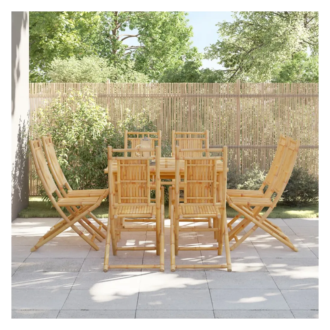Ces chaises pliables de jardin en bambou ont un design élégant et seront un excellent choix pour dîner en plein air dans le jardin ou sur le patio. Durable et durable : en tant que matériau naturel, le bambou offre une bonne respirabilité et une faible odeur. Ces qualités rendent la chaise pliable en bambou résistant à l’eau et durable.Design pliable : la chaise à manger peut être facilement pliée lorsqu'elle n'est pas utilisée, pour un rangement et un transport faciles.Une expérience d'assise confortable : dotée d'un dossier, la chaise d'extérieur vous offre un confort optimal. Bon à savoir :Pour que vos meubles d'extérieur restent beaux, nous vous recommandons de les protéger avec une housse imperméable.