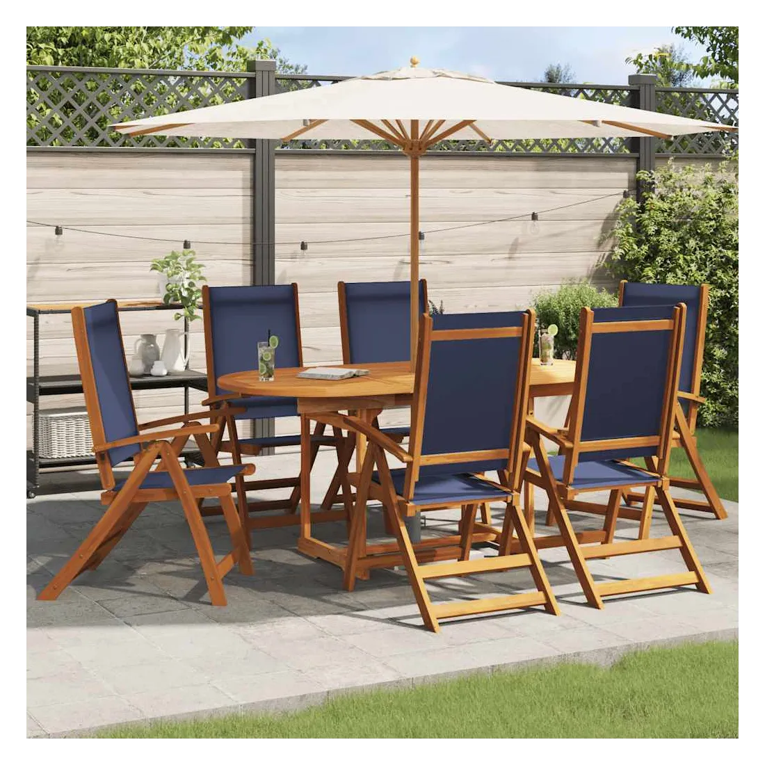 - Matériau : bois d'acacia massif avec finition à l'huile, tissu textilène