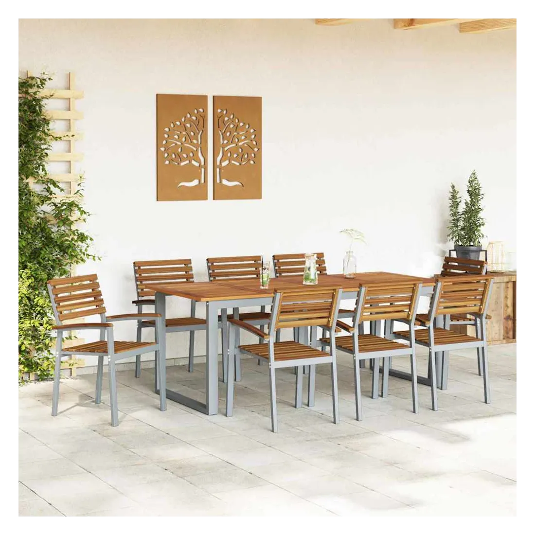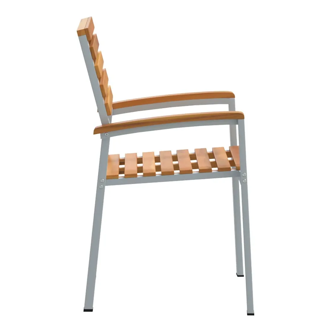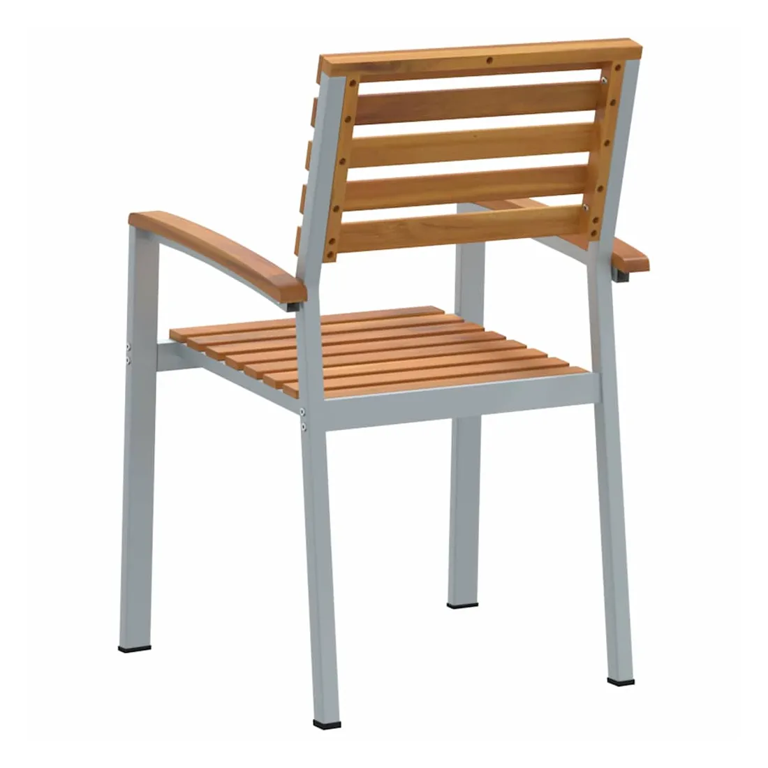 Cette chaise de jardin empilable allie style moderne et praticité, parfaite pour tous les espaces extérieurs comme patios et terrasses. Avec son design rectangulaire et minimaliste, elle embellit vos extérieurs, idéale pour des soirées jardin ou des moments tranquilles. Son bois naturel combiné avec un cadre en acier solide apporte un style contemporain en garantissant confort et durabilité. Matériaux : Fait en bois d'acacia massif, cette chaise mixe texture bois naturel et robustesse pour un extérieur durable. Le matériau donne une classe tout en assurant résistance face aux éléments, alliant beauté et praticité sur le long terme. Composants inclus : Avec des accoudoirs plats en bois d'acacia, la chaise assure à la fois confort et un look cohérent. Les pieds en acier offrent un super support, même sur des terrains de jardin un peu irréguliers. Caractéristiques / Fonction / Design : Grâce à son design empilable, elle est idéale pour gagner de la place dans les extérieurs serrés. Ça vous permet de la ranger facilement et de la transporter sans tracas. Utilisations recommandées : Super pour les jardins, terrasses ou patios, cette chaise est top pour des moments entre amis ou pour se détendre seul. Sa construction légère mais robuste s'adapte à plein d'environnements, parfait pour toutes vos activités en extérieur. Entretien : Un nettoyage facile suffit ; un coup de chiffon sec et c'est tout. Pensez à la ranger à l'intérieur quand le temps n'est pas clément pour garder sa belle finition, assurant sa longévité et de bons moments à l'extérieur.