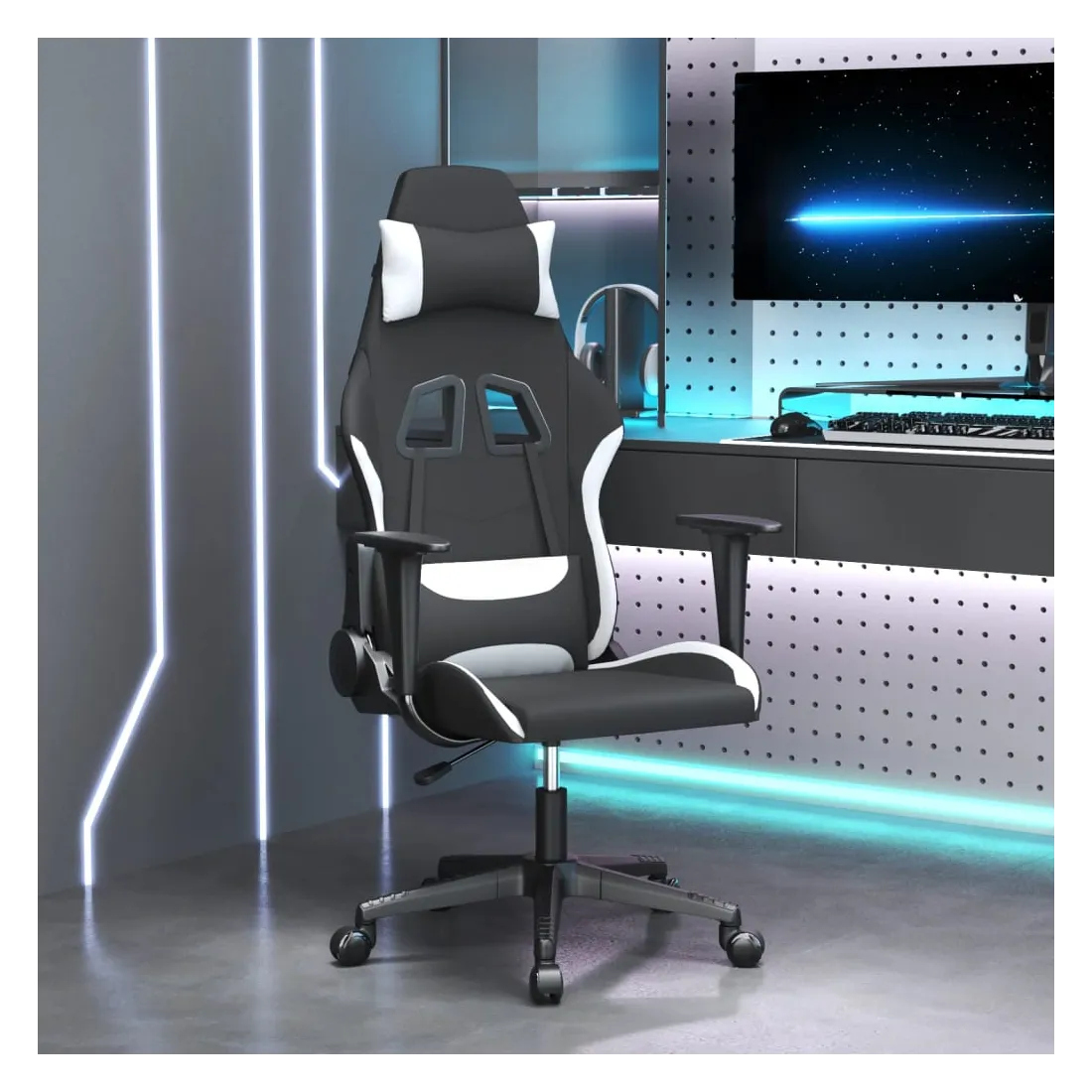 Profitez de cette chaise de jeu unique et améliorez votre expérience de jeu avec confort ! Tissu durable : le tissu présente un aspect simple et épuré, et il est respirant et durable.Dossier et hauteur réglables : il est spécialement conçu avec une fonction d'inclinaison afin que vous puissiez régler le dossier selon votre confort. Utilisez le levier pour régler la hauteur de votre siège à votre convenance.Design pratique : le design pivotant à 360 degrés permet une plus grande amplitude de mouvement. De plus, il est pratique de le déplacer avec des roulettes.Cadre robuste et stable : les cadres en métal et en contreplaqué assurent robustesse et stabilité. Remarque :Chaque produit est livré avec un manuel de montage dans la boîte pour un montage facile.