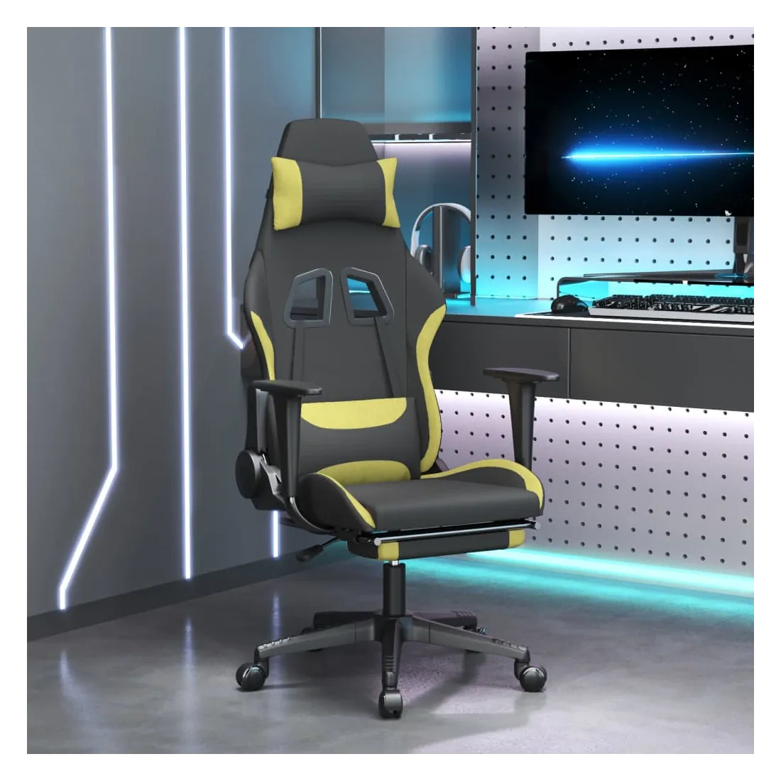 Profitez de cette chaise de jeu unique et améliorez votre expérience de jeu avec confort ! Tissu durable : le tissu présente un aspect simple et épuré, et il est respirant et durable.Dossier et hauteur réglables : il est spécialement conçu avec une fonction d'inclinaison afin que vous puissiez régler le dossier et le repose-pied selon votre confort. Utilisez le levier pour régler la hauteur de votre siège à votre convenance.Design pratique : le design pivotant à 360 degrés permet une plus grande amplitude de mouvement. De plus, il est pratique de le déplacer avec des roulettes.Cadre robuste et stable : les cadres en métal et en contreplaqué assurent robustesse et stabilité. Remarque :Chaque produit est livré avec un manuel de montage dans la boîte pour un montage facile.