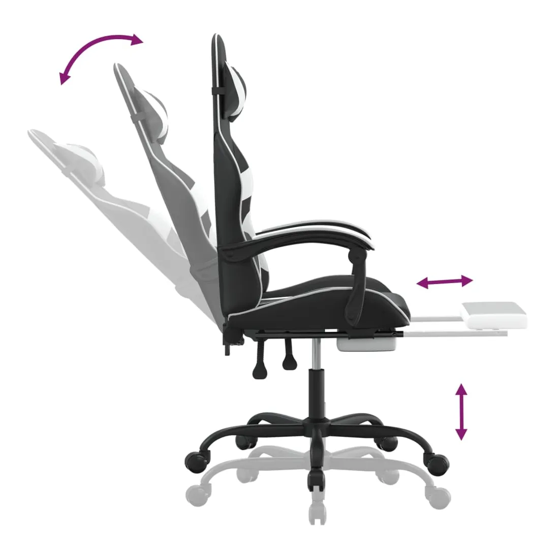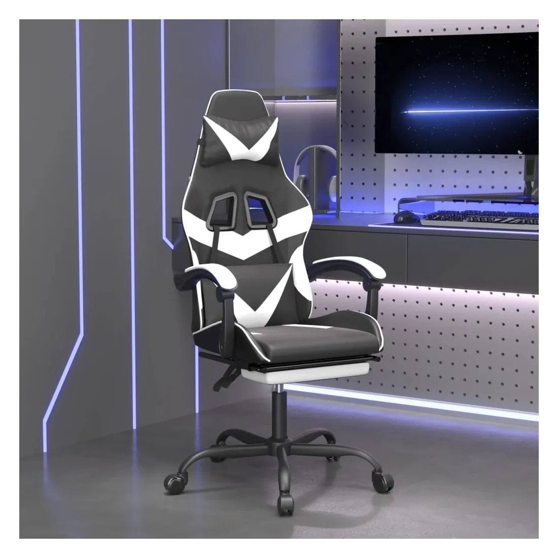 Chaise de jeu avec repose-pied Noir et blanc Similicuir