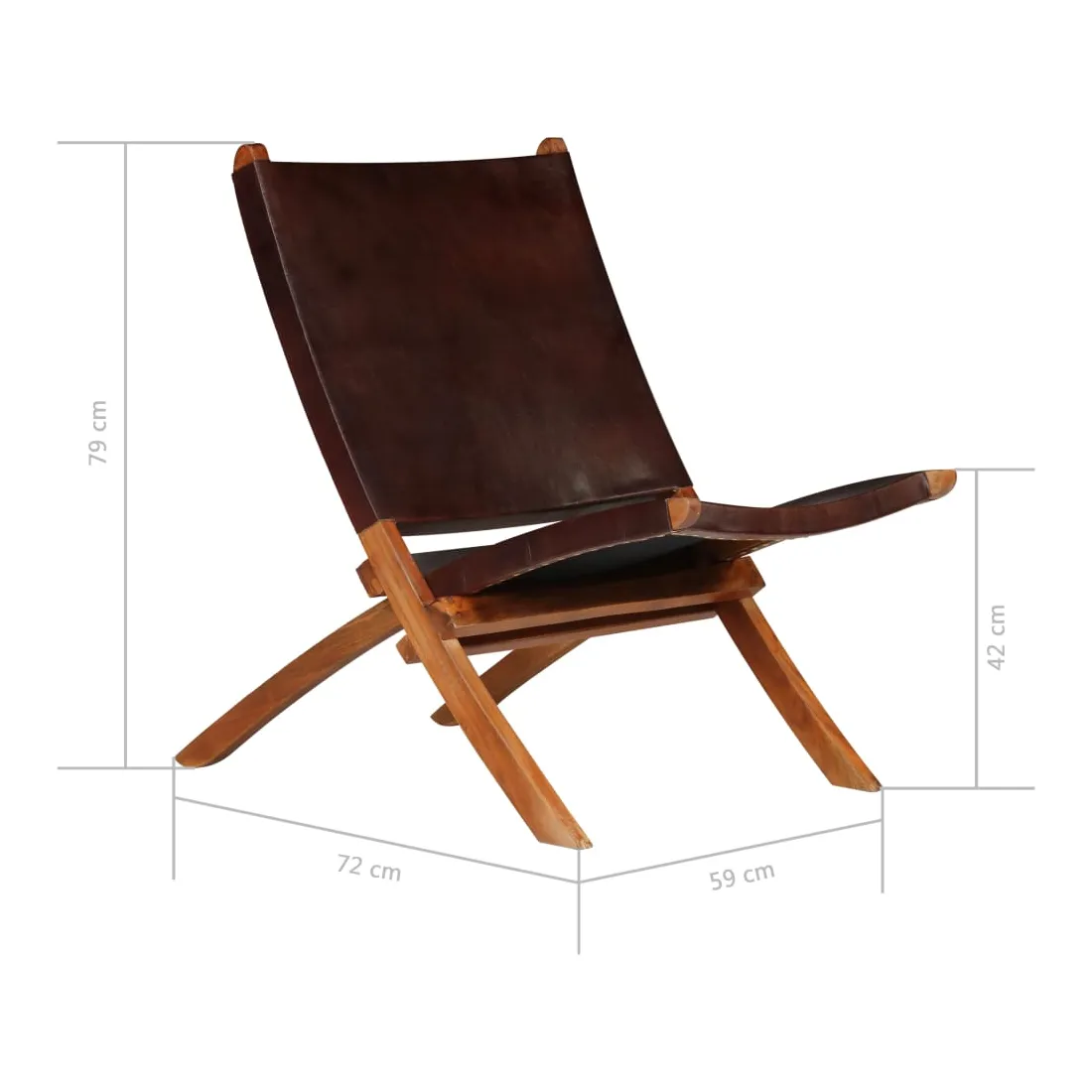 Cette chaise en cuir véritable, douce et confortable, présente un design rustique qui fait fureur à l'heure actuelle. Elle resplendira non seulement dans votre salon à la maison, mais également dans votre espace de vie extérieur. Le siège et le dossier en cuir véritable sont doux au toucher et très confortables, tandis que le cadre en bois d'acacia massif rend la chaise durable. Grâce à la conception pliante, cette chaise de relaxation peut être facilement rangée lorsqu'elle n'est pas utilisée. L'article est déjà assemblé. Aucun assemblage n'est requis. Remarque importante : les motifs en cuir peuvent varier d’une pièce à l’autre, ce qui rend chacune de nos chaises unique. La livraison est aléatoire.