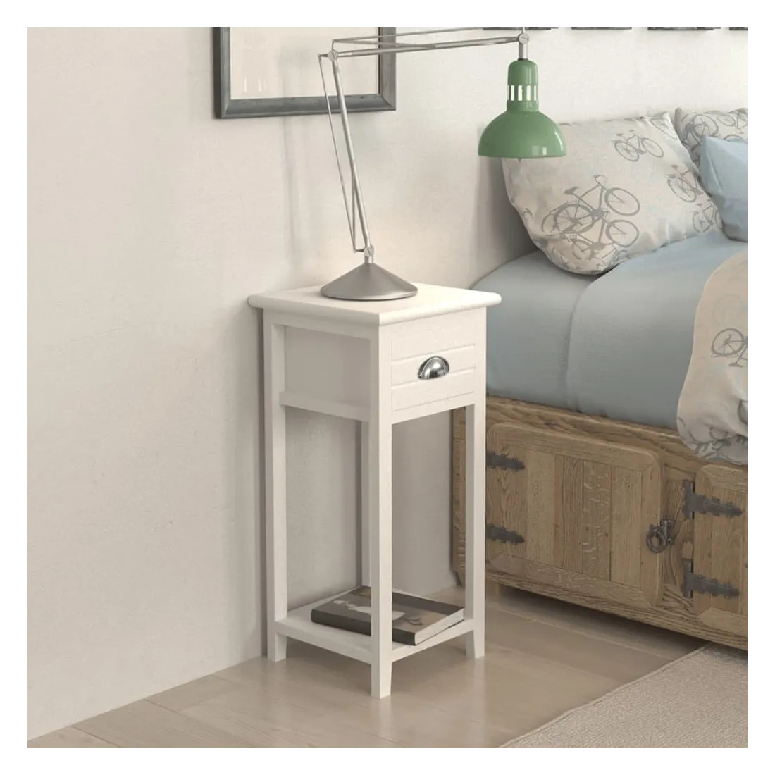 Cette armoire de chevet, avec un tiroir et un design simple mais élégant, peut être utilisée comme table de chevet ou support téléphonique. Le tiroir et l'étagère offrent un espace suffisant pour ranger les petits objets à portée de main. Fabriquée en contreplaqué fort et en bois de paulownia de qualité supérieure, la table de chevet facile à nettoyer est très durable et demande peu d'entretien.