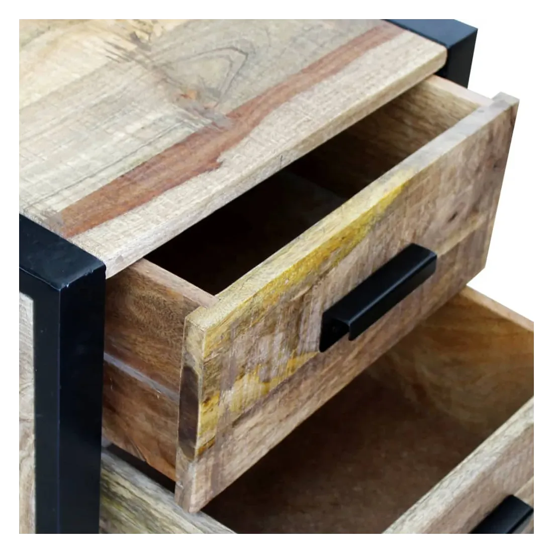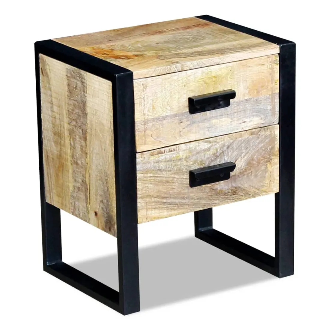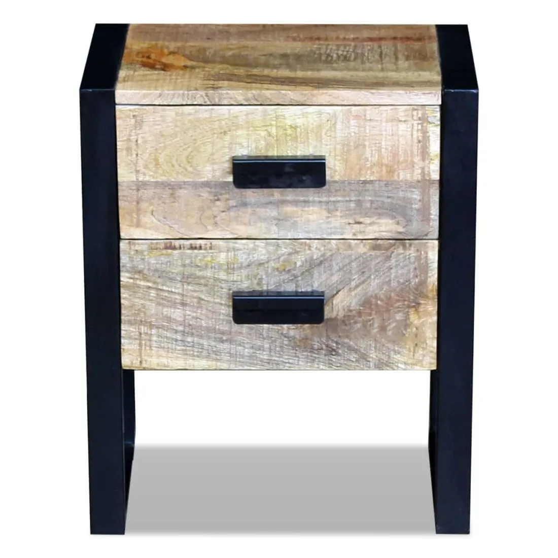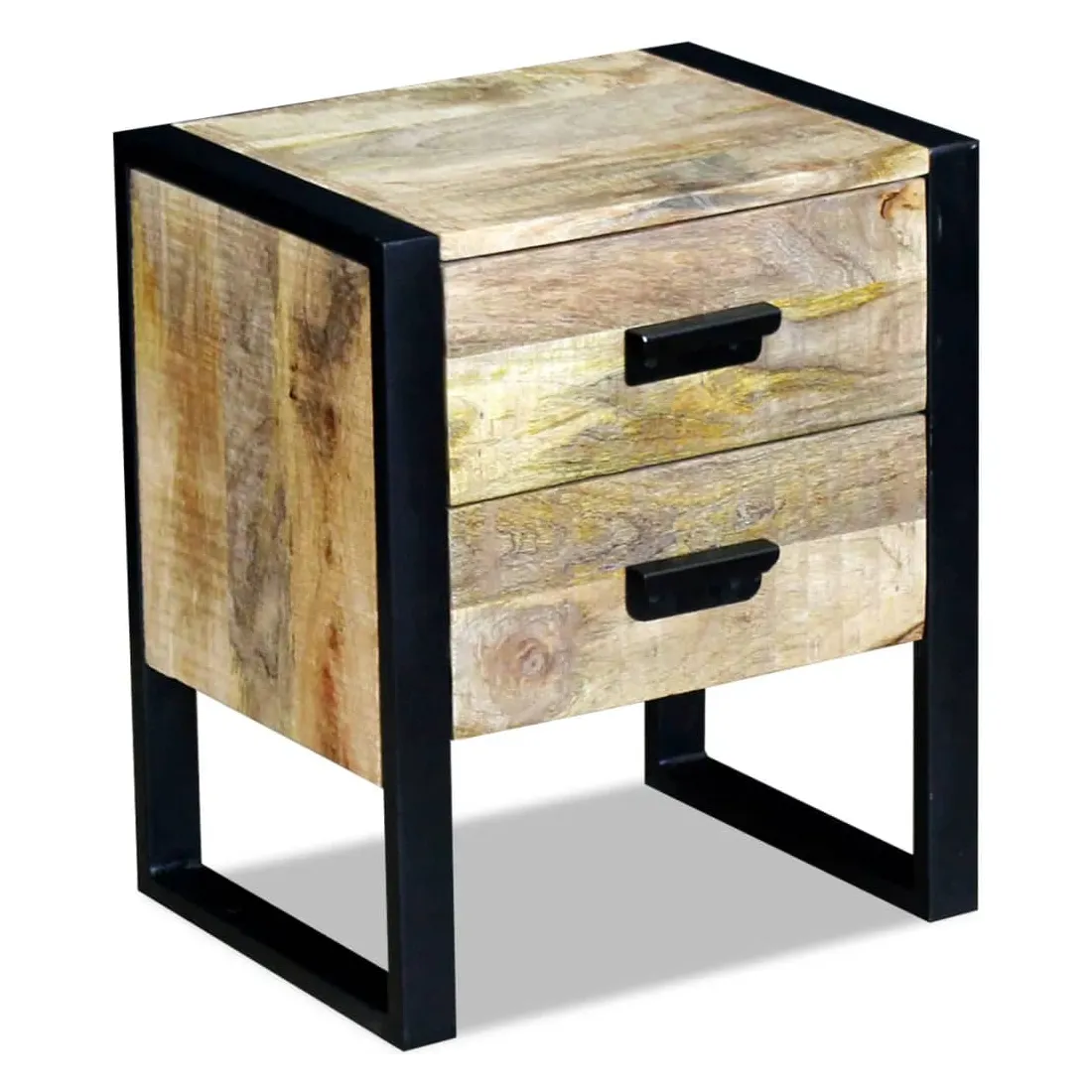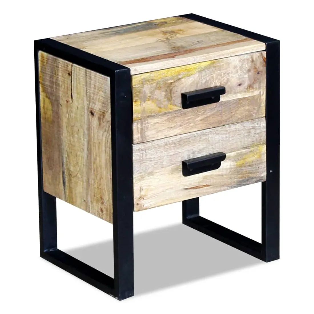 Cette table a un style industriel attrayant et fera un accessoire distinctif pour n'importe quelle pièce. Elle peut également être utilisée comme table de chevet, support téléphonique, armoire de chambre, armoire de lit, armoire à tiroirs, table de coin etc. Cette table est en bois de manguier solide, ce qui la rend robuste, stable et durable. Ses deux tiroirs ont un espace de stockage suffisant et les pieds en fer accentuent son aspect industriel ainsi que sa stabilité. La structure de grain visible rend chaque meuble unique et légèrement différent du suivant. Cette table est entièrement faite à la main et la qualité de l'artisanat contribue à son style rétro spectaculaire. Chaque étape du processus est effectuée avec le plus grand soin, qu'il s'agisse de l'entretien, du polissage, de la peinture ou du cirage. Remarque importante : les couleurs varient d'une pièce à l'autre, rendant chacune de nos tables auxiliaires unique. La livraison est aléatoire, ce qui garantit l'exclusivité et l'individualité de votre produit.