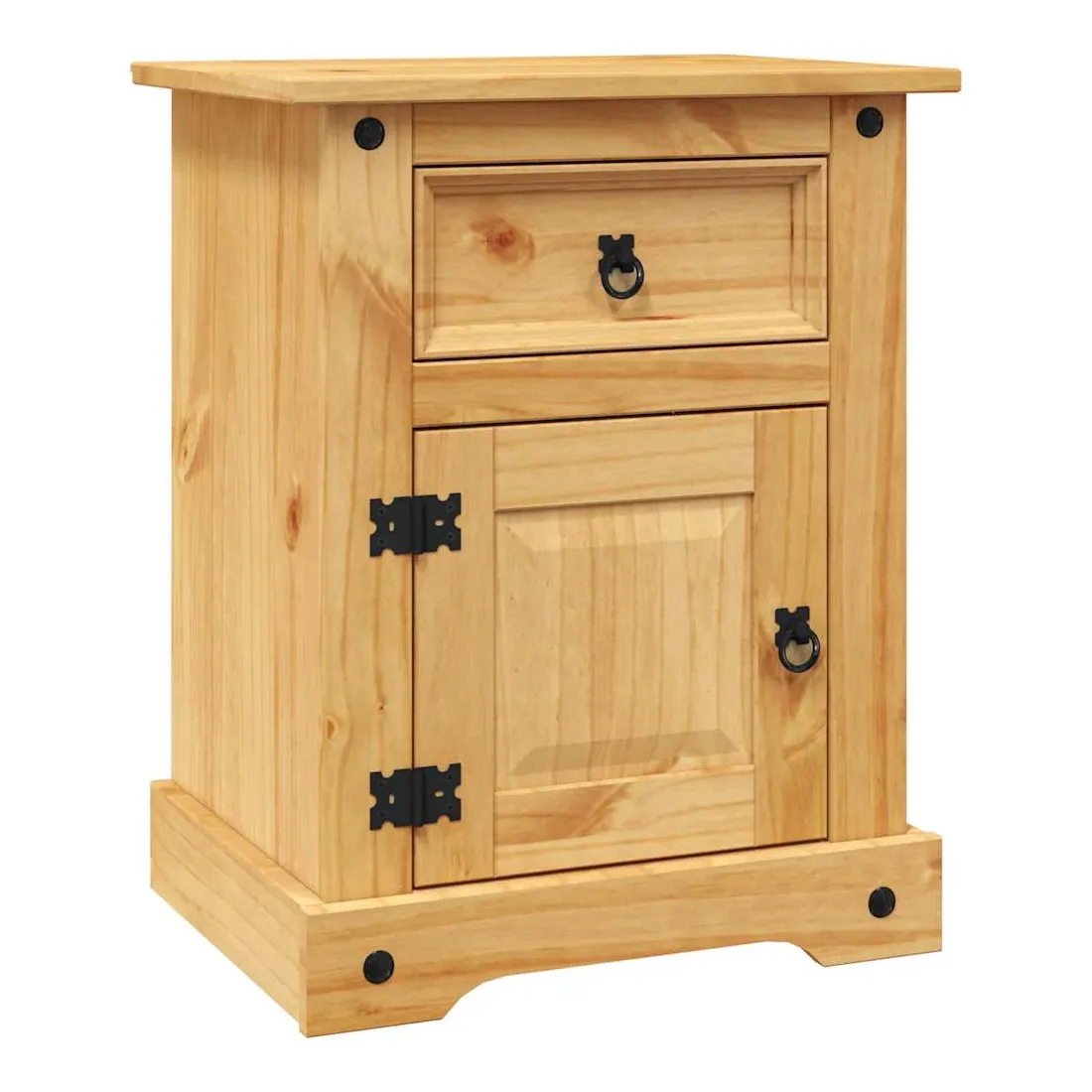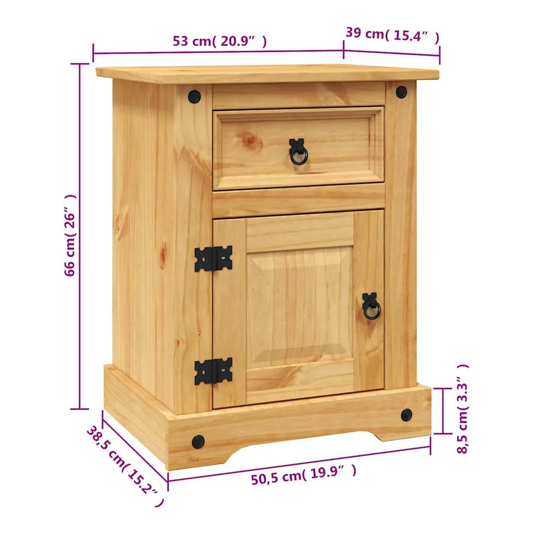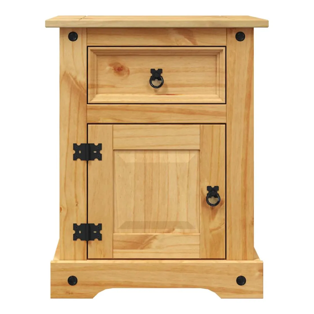 Cette table de chevet en bois de style corona est fabriquée en pin massif ciré avec des détails rustiques en métal noir et dégage un charme mexicain qui en fera un excellent supplément à votre chambre à coucher ou salon. Matériau durable : fabriquée à partir de bois de pin massif, la table de chevet est solide et robuste.Grand espace de rangement : elle dispose d’un tiroir pour les petits objets que vous aimez garder à portée de main et d’un placard avec porte en dessous qui est idéal pour ranger des livres et des magazines.Dessus d’armoire robuste : le dessus de l'armoire est assez robuste et assez grand pour contenir une lampe de chevet, un réveil ou tout ce dont vous pourriez avoir besoin à côté de votre lit.Applications multiples : elle peut également être utilisée comme table de chevet, armoire latérale, table d’appoint, etc.