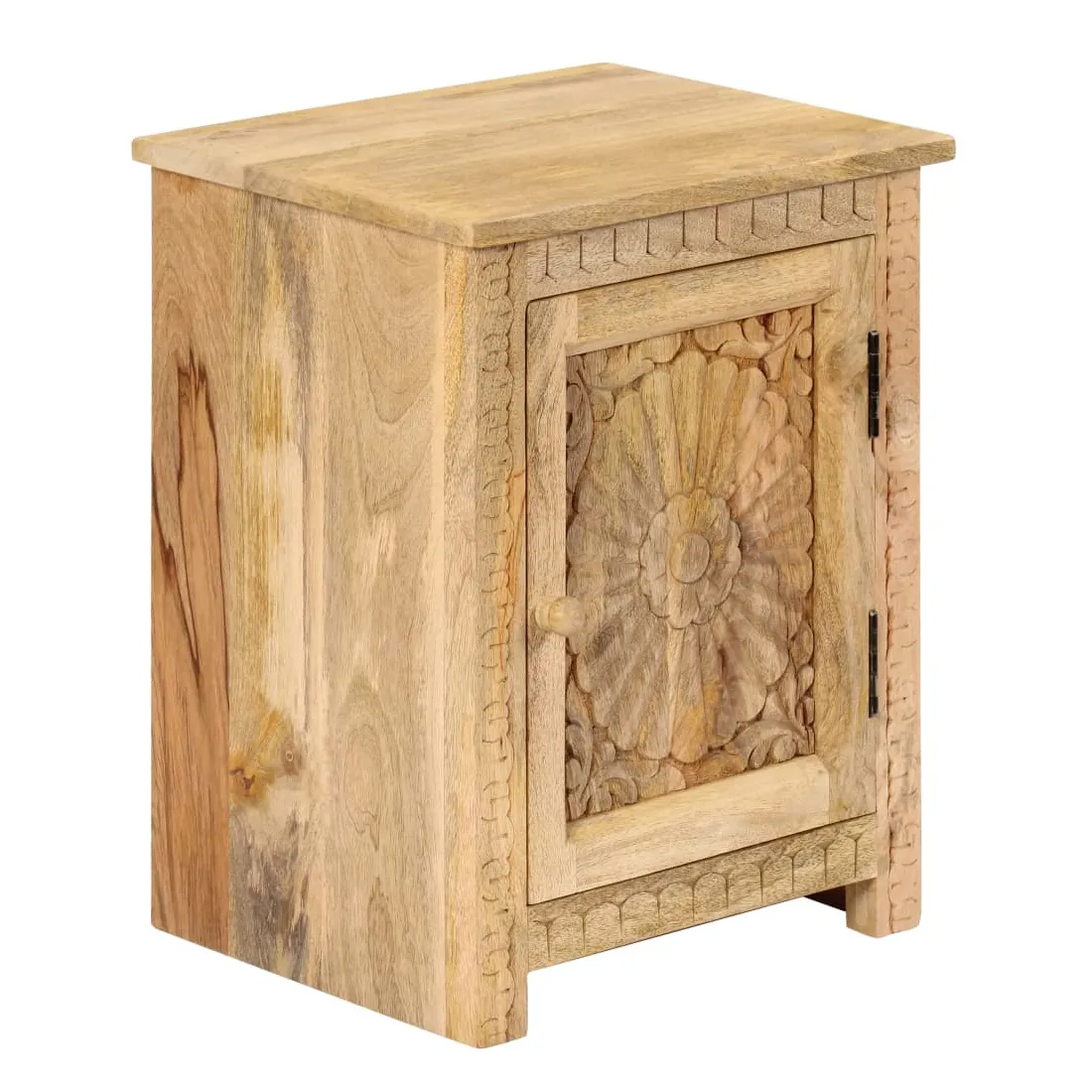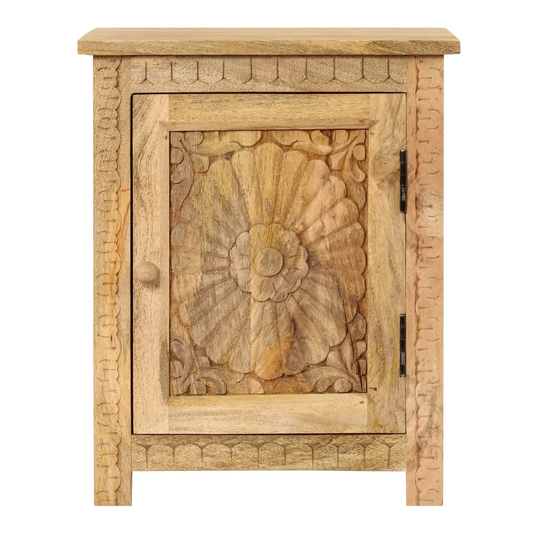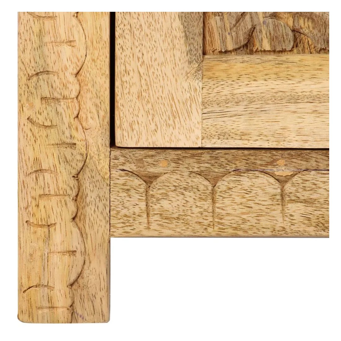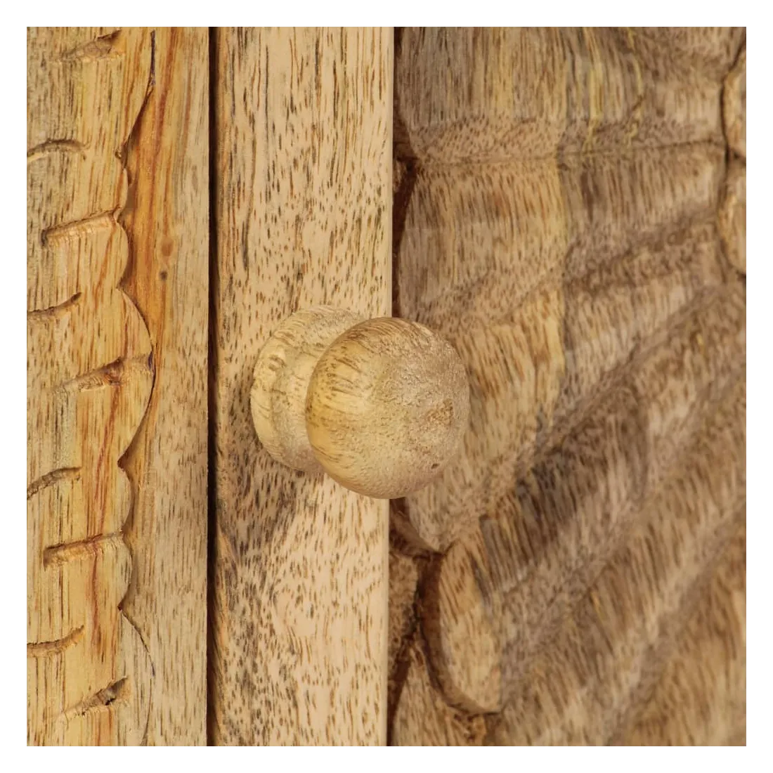 La table de chevet ajoutera une touche intemporelle à votre décoration intérieure. La table d'appoint est fabriquée en bois de manguier massif et est très stable et durable. Le couvercle robuste est idéal pour ranger vos verres, livres, tasses à thé, etc. La table de chevet offre un espace de rangement pour ranger vos différents objets de façon ordonnée. Les détails sculptés confèrent à la table de chevet une touche de charme élégante. Cet élément est déjà assemblé ; aucun assemblage n'est requis. Remarque importante : les couleurs et les grains de bois peuvent varier d'une pièce à l'autre, ce qui rend chaque pièce unique et légèrement différente l'une de l'autre. La livraison est aléatoire, ce qui garantit l'exclusivité et l'individualité de votre produit.