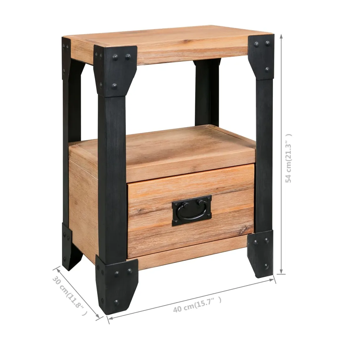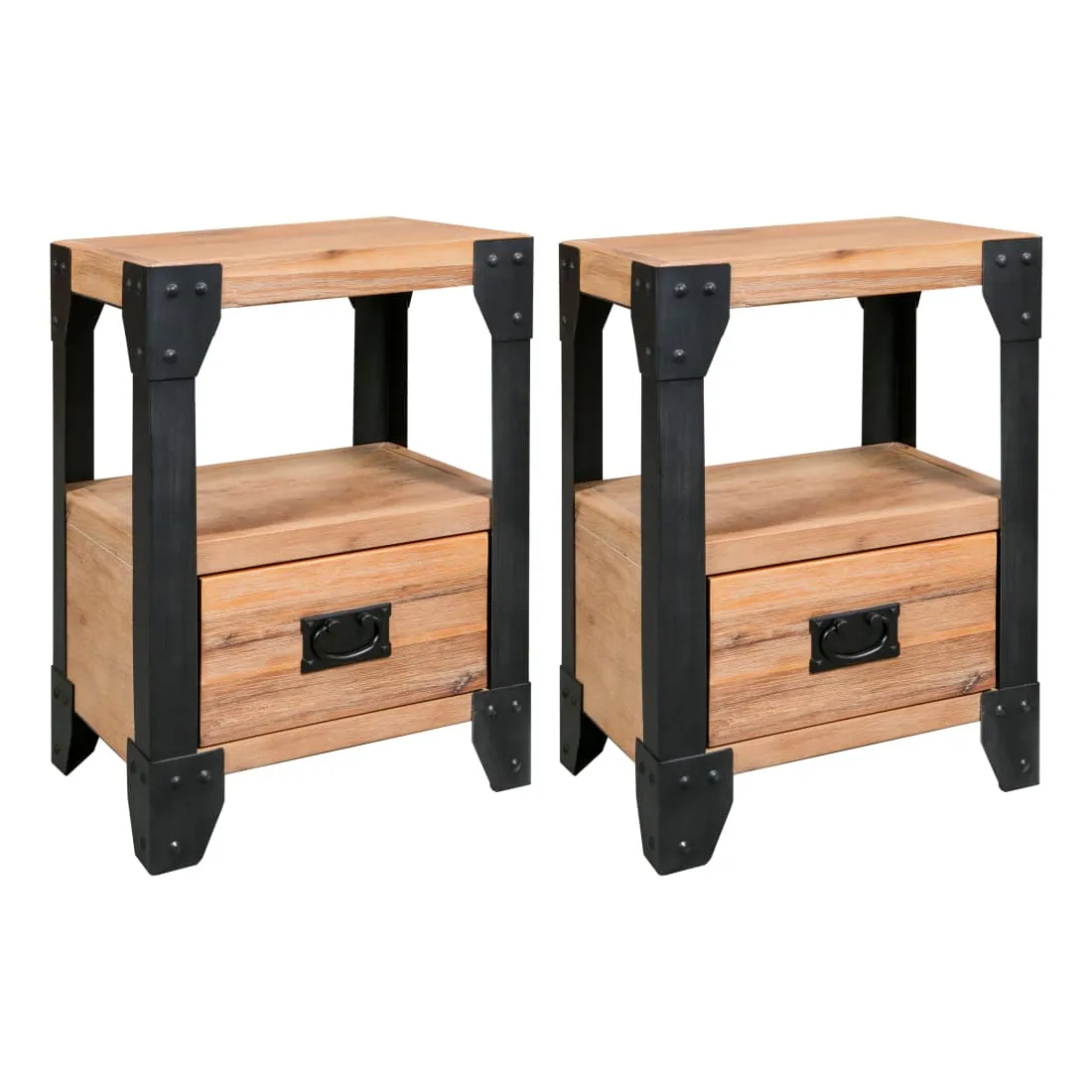 vidaXLCette table de chevet attrayante et industrielle est fabriquée en bois d'acacia massif avec des pieds et des détails en acier et sera un excellent ajout au décor de votre chambre à coucher. Le dessus de table robuste est idéal pour garder un réveil, une lampe de lecture, des livres, etc., ou pour exposer des cadres photo ou d'autres objets décoratifs. Les tiroirs offrent amplement d'espace pour garder toutes sortes de petits objets organisés et à portée de main. Les poignées pratiques facilitent l'ouverture des tiroirs et complètent le style vintage de la table de chevet. Remarque : La table de chevet est déjà assemblée ; aucun assemblage n'est requis. La livraison comprend 2 tables de chevet