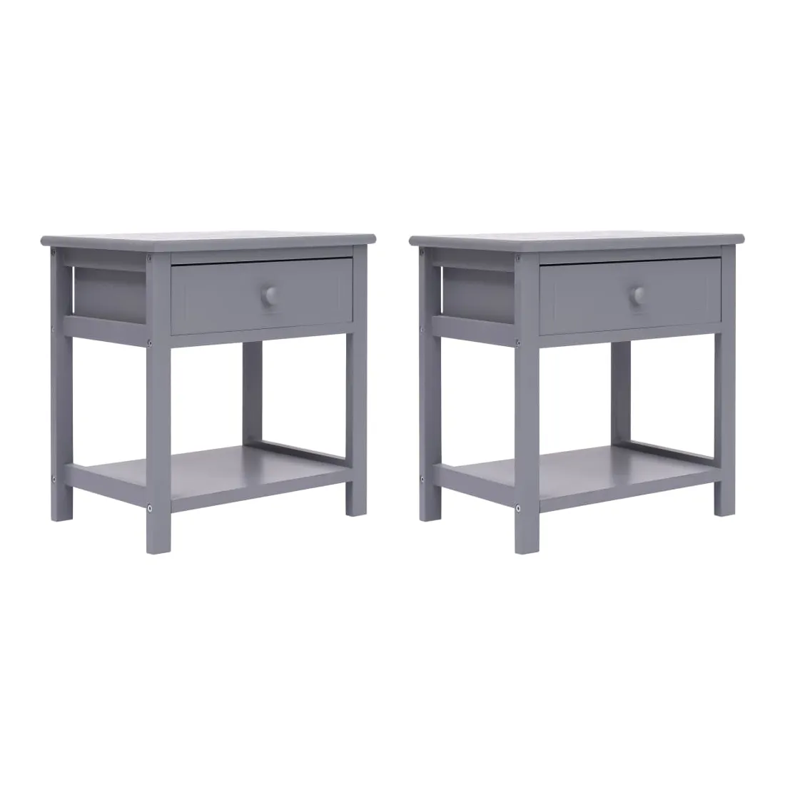 Comme tous les meilleurs designs, cet ensemble de deux tables de chevet avec tiroir est simple, propre et sûr de ne jamais se démoder, ce qui en fera un supplément formidable dans votre chambre à coucher ou salon. Elles peuvent également être utilisées comme supports de téléphone, armoires latérales, petites armoires, armoires à tiroirs, armoires de rangement, armoires de chambre à coucher, tables de chevet, etc. Ces armoires compactes se caractérisent par un tiroir qui fonctionne bien, offrant un espace suffisant pour garder les petits articles rangés et à portée de main. L'étagère sous le tiroir offre également un espace de rangement supplémentaire. Faites de matériaux solides, les armoires sont extrêmement durables et faciles à nettoyer. La livraison comprend 2 tables de chevet.