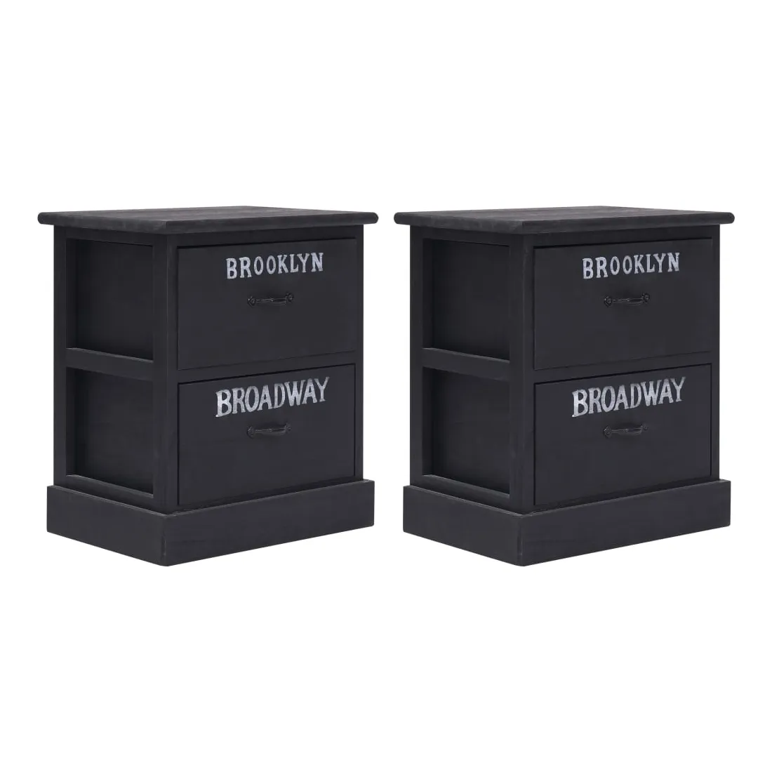 Apportez une touche de charme vintage à votre intérieur avec nos élégantes tables de chevet ! Elles peuvent également être utilisées comme support de téléphone à côté de votre canapé ! Ces armoires compactes sont dotées de 2 tiroirs fonctionnant sans à-coups, offrant un grand espace pour garder vos petits objets rangés et à portée de main. Fabriquées en bois de paulownia résistant, ces armoires sont extrêmement durables et faciles à nettoyer. La livraison comprend 2 tables de chevet.