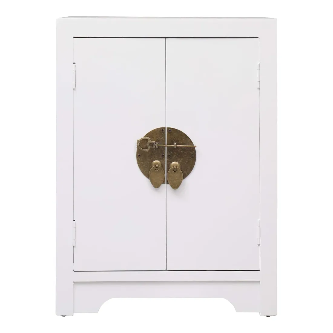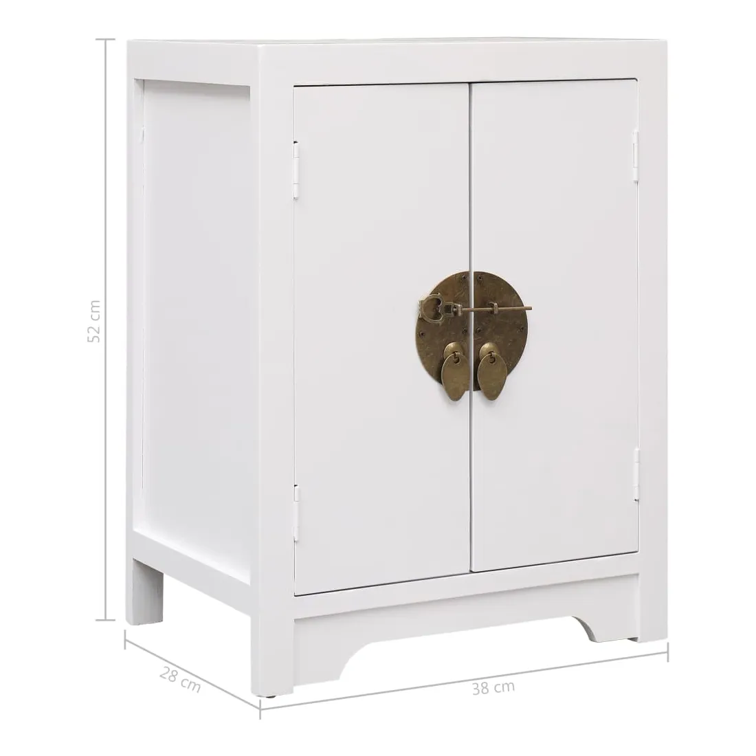 Apportez une touche de charme oriental à votre intérieur avec notre élégante table de chevet de style asiatique ! Elle peut également être utilisée comme support de téléphone à côté de votre canapé ! Fabriquée en bois de paulownia et en MDF, cette table de chevet est durable et robuste. Les élégantes serrures dorées de style chinois ajoutent à son élégance intemporelle. La table de chevet offre un grand espace de rangement avec 2 portes. Le dessus de table robuste est idéal pour afficher des objets décoratifs, des cadres photo ou des plantes en pot. Elle est facile d'essuyer avec un chiffon humide. L'armoire latérale est facile à assembler.