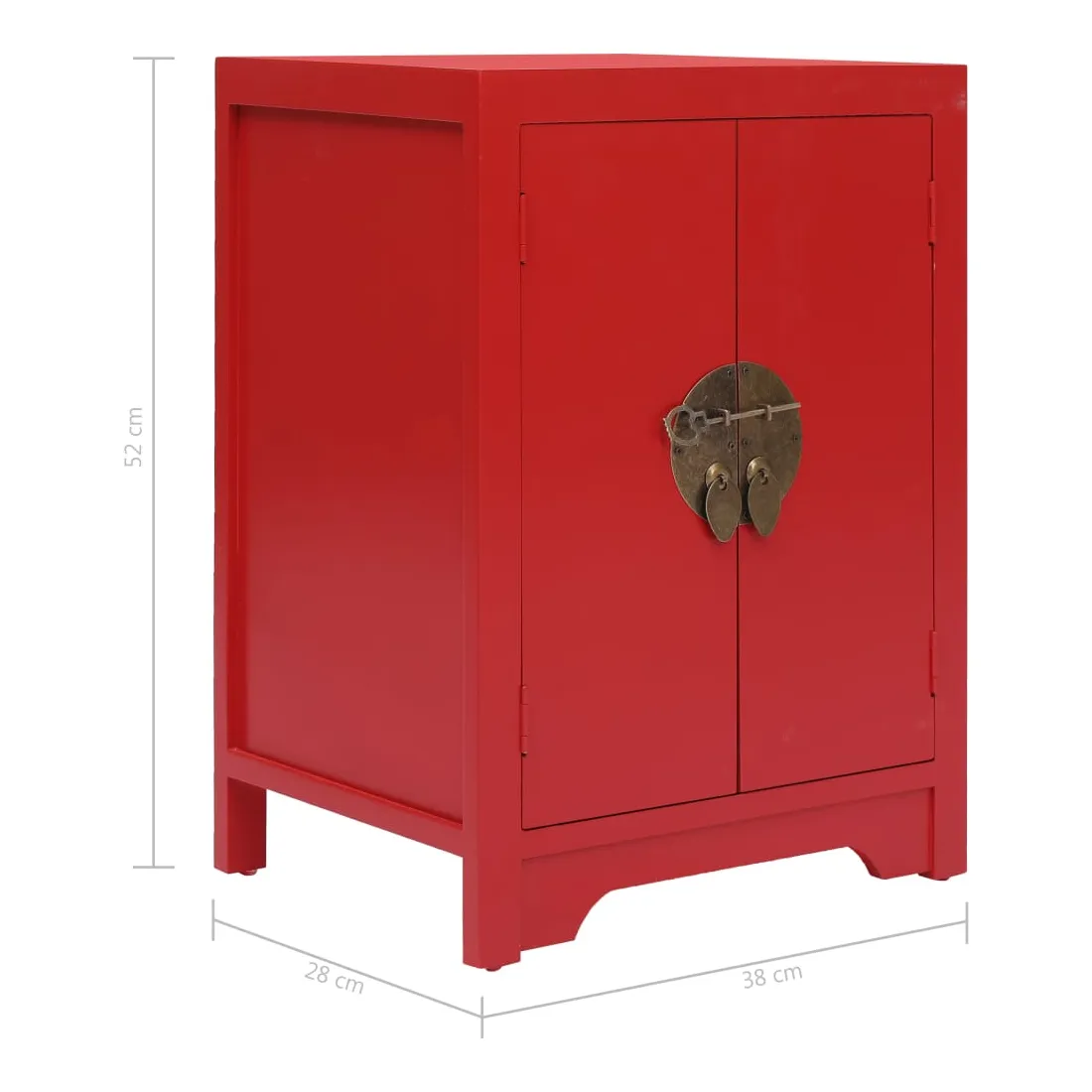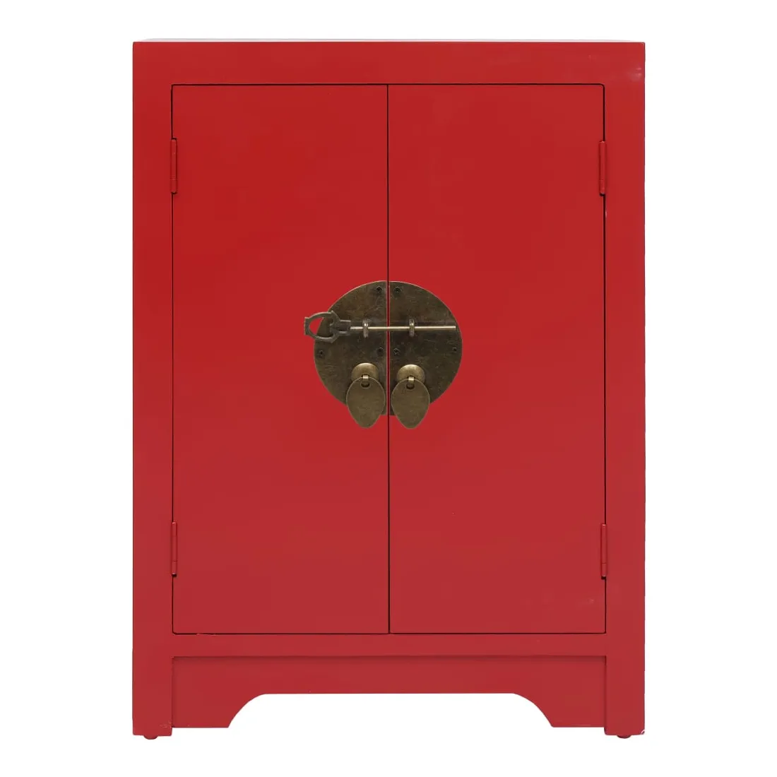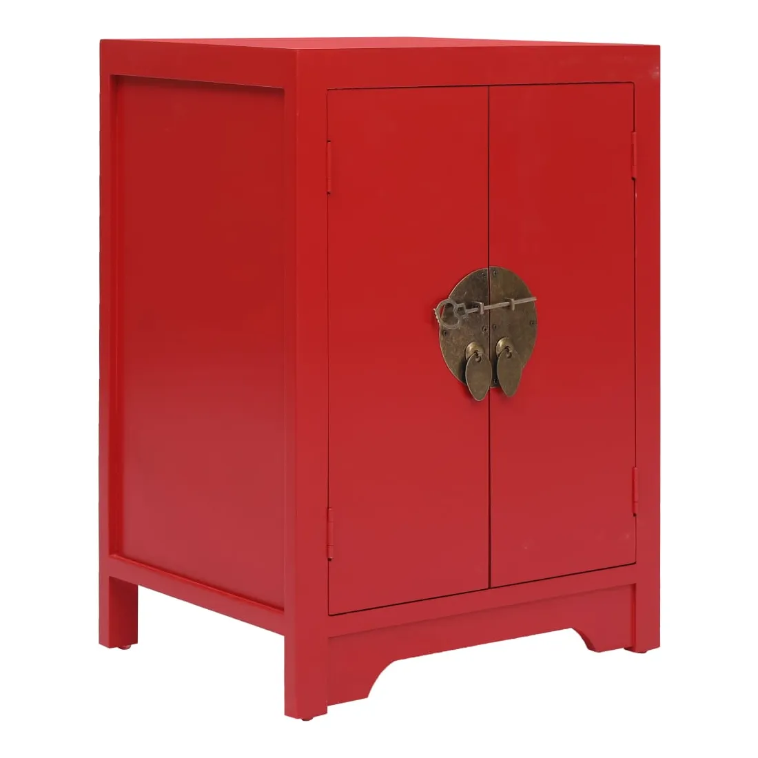 Apportez une touche de charme oriental à votre intérieur avec notre élégante table de chevet de style asiatique ! Elle peut également être utilisée comme support de téléphone à côté de votre canapé ! Fabriquée en bois de paulownia et en MDF, cette table de chevet est durable et robuste. Les élégantes serrures dorées de style chinois ajoutent à son élégance intemporelle. La table de chevet offre un grand espace de rangement avec 2 portes. Le dessus de table robuste est idéal pour afficher des objets décoratifs, des cadres photo ou des plantes en pot. Elle est facile d'essuyer avec un chiffon humide. L'armoire latérale est facile à assembler.