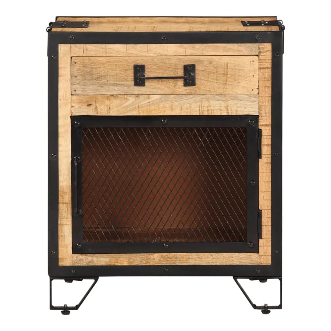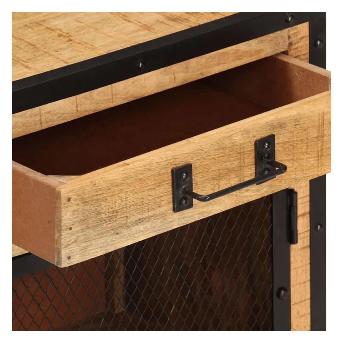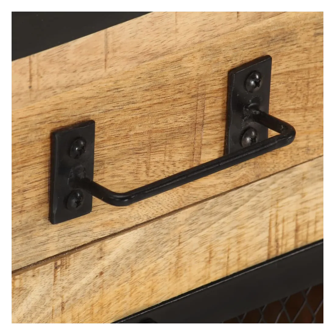 Cette table de chevet en bois de style industriel sera un supplément décoratif ainsi que pratique à votre décoration. L'armoire de lit est fabriquée à la main en acier et en bois de manguier brut massif, ce qui la rend robuste et stable. Le savoir-faire artisanal et les belles veines du bois font que chaque meuble soit unique et légèrement différent l'un de l'autre. De plus, cette table de chevet dispose d'un grand espace de rangement pour garder vos objets importants organisés et à portée de main. La table de chevet est également facile à assembler. Remarque importante : les couleurs et les grains peuvent varier d'une pièce à l'autre, rendant chaque pièce unique. La livraison est aléatoire, ce qui garantit l'exclusivité et l'individualité de votre produit.