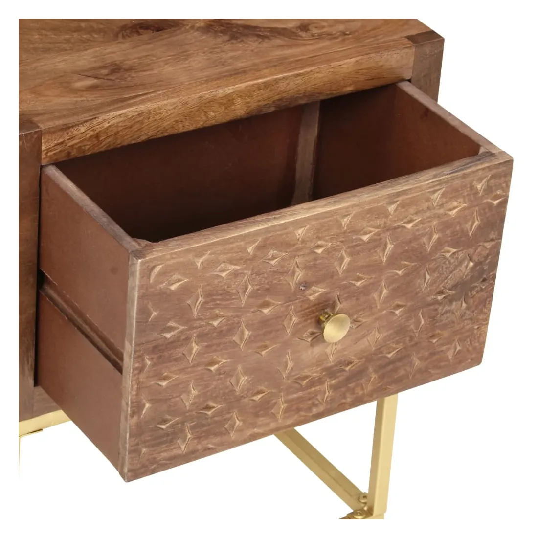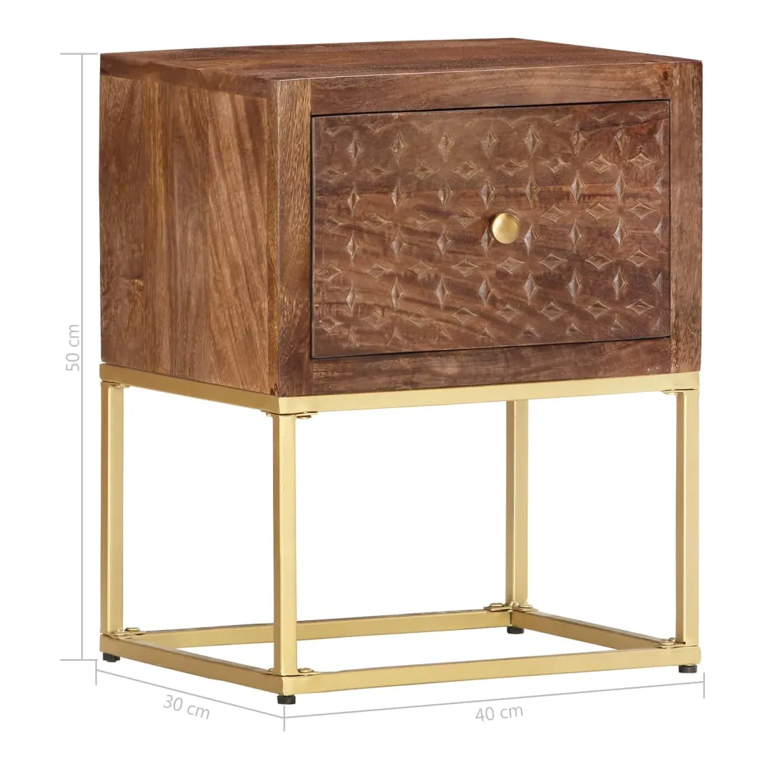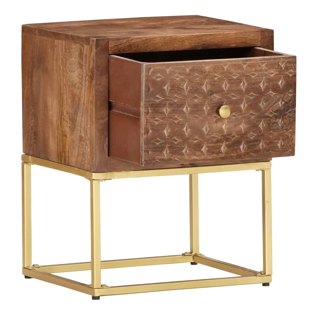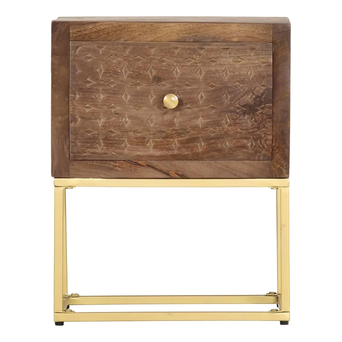 Cette table de chevet de style vintage et pratique sera un supplément intemporel à votre décoration intérieure. La table de chevet, avec des parties sculptées à la main à l'avant, est faite à la main en bois de manguier massif qui est un bois dur dense et robuste avec des belles stries et des contours bruns ou dorés sur sa surface. Chaque étape du processus est réalisée avec le plus grand soin, qu'il s'agisse de polissage ou de laquage, et le savoir-faire ajoute au style rétro spectaculaire. Les beaux grains de bois rendent chaque meuble unique et légèrement différent l'un de l'autre. Le cadre en acier enduit de poudre ajoute au style industriel de l'armoire en bois. En outre, cette armoire comprend 1 tiroir, offrant suffisamment d'espace pour garder toutes sortes de petits objets organisés et à portée de main. L'article est facile à assembler. Remarque importante : les couleurs varient d'une pièce à l'autre, rendant chaque pièce unique. La livraison est aléatoire, garantissant l'exclusivité et l'individualité de votre produit.