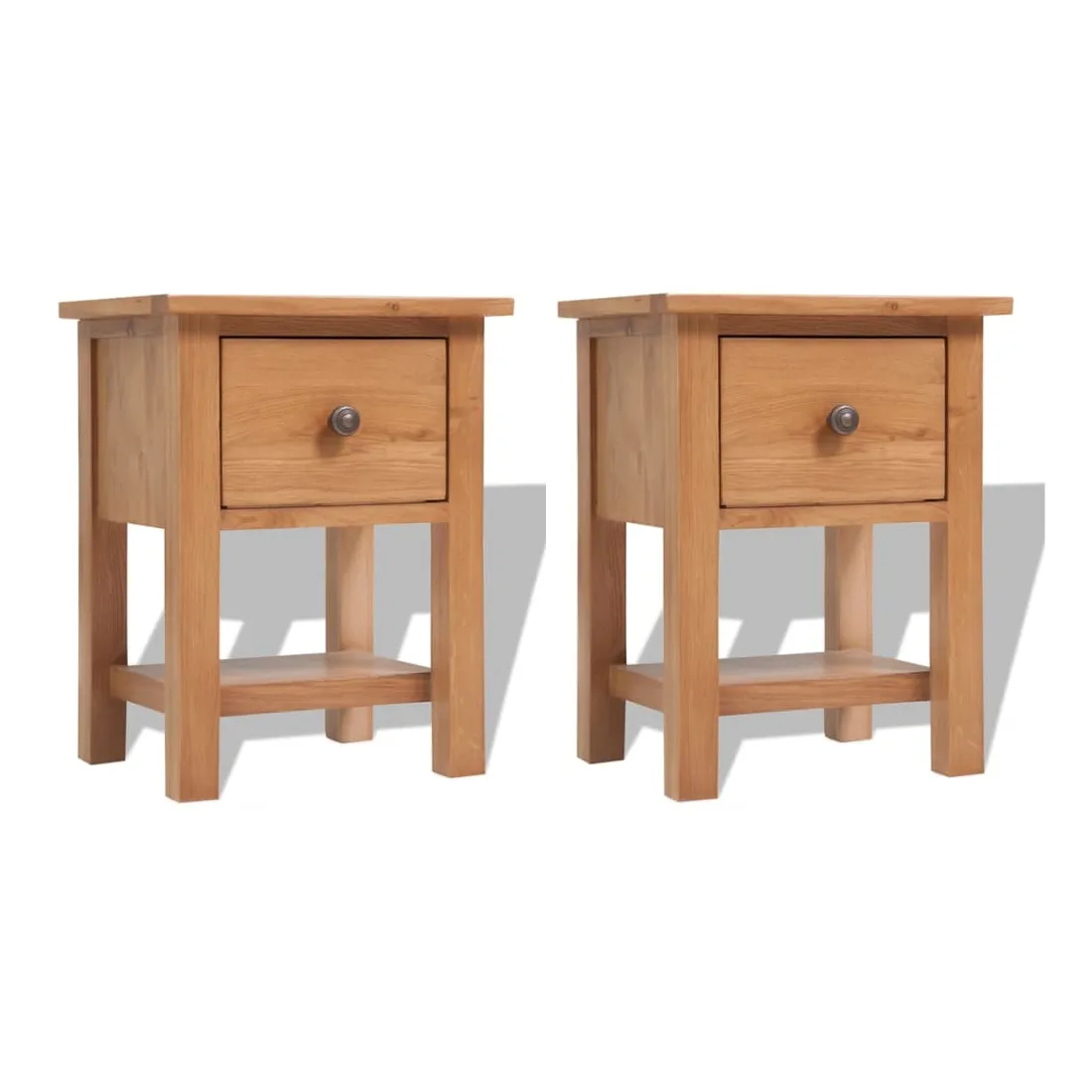 Ces 2 tables de chevet en bois de qualité avec un tiroir et une étagère ajouteront une touche rustique à votre chambre à coucher. Fabriquées en bois de chêne massif, les tables de chevet ont un aspect et un toucher rustiques et sont très durables. Elles seront parfaites pour conserver et exposer les objets essentiels à l'heure du coucher, et vous aideront à garder votre chambre bien rangée. Elles peuvent également être utilisées comme tables d'appoint, tables à lampes, tables basses, etc. La livraison comprend 2 tables de chevet.