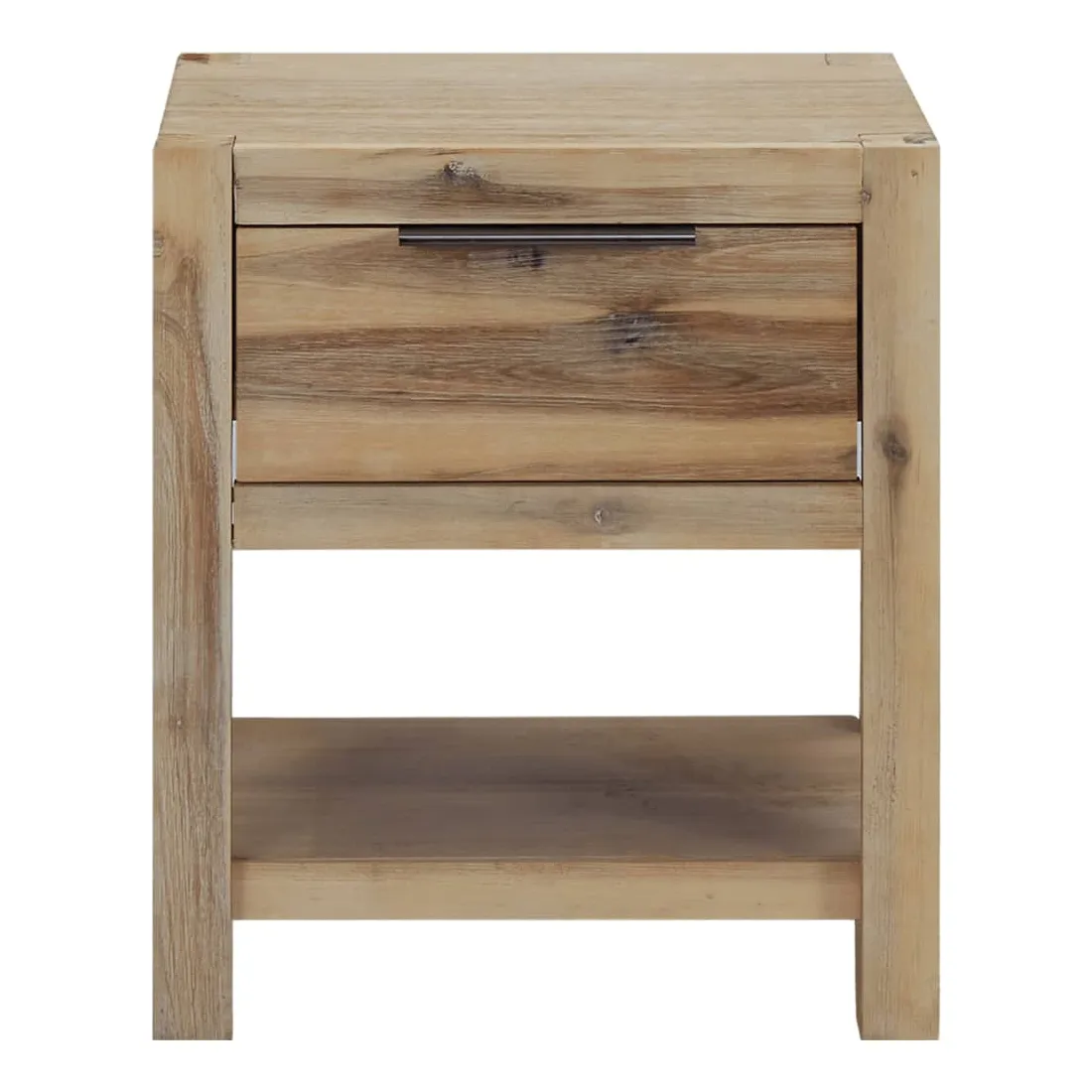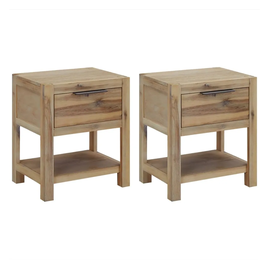 Cet ensemble de tables de chevet ajoutera une touche de charme rustique à votre décor intérieur. La table de chevet peut également être utilisée comme une table d'appoint ou comme support pour téléphone. La table de chevet est fabriquée à partir de bois d’acacia massif, de MDF et de placage d'acacia, ce qui la rend très durable et résistante à l'usure. La finition brossée donne à la table de chevet un aspect authentique, patiné et rétro et à votre maison une apparence plus traditionnelle. Le dessus robuste est idéal pour garder un réveil, une lampe de lecture, des livres, etc., ou pour afficher des cadres photo ou d'autres objets décoratifs. Le tiroir et la tablette offrent de l'espace pour garder tous les types d'articles plus petits organisés et à portée de main. Chaque produit est l