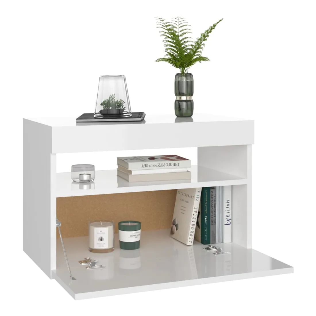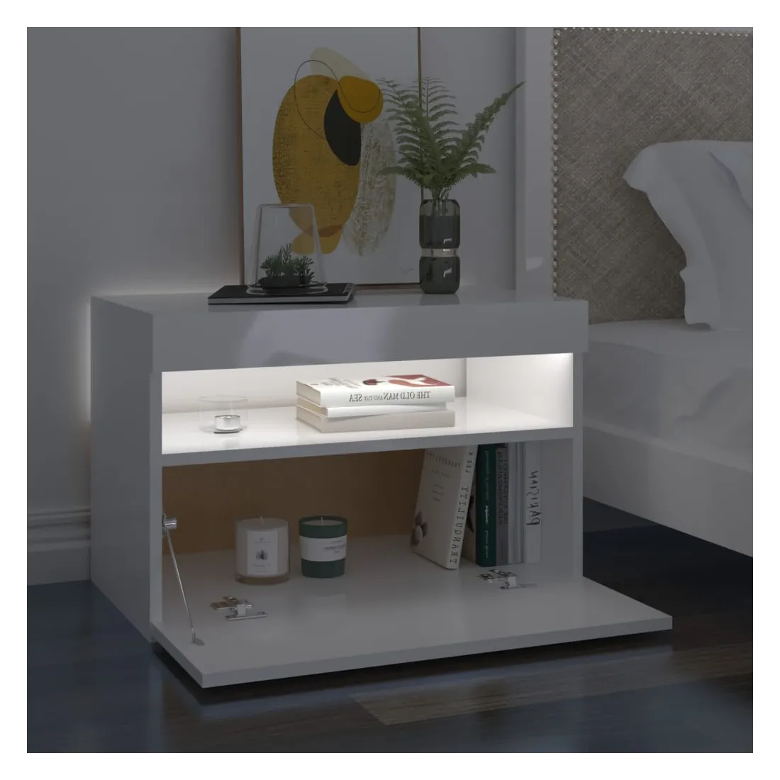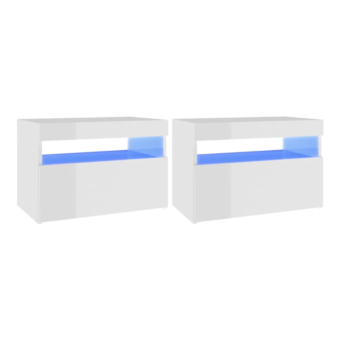 Avec un design à la fois tendance et pratique, ces tables de chevet avec éclairage LED deviennent certainement un point central de votre pièce. Cadre robuste : la construction robuste de l'armoire d'appoint la rend très durable. Grand espace de rangement : il reste suffisamment d'espace pour garder vos magazines, livres, télécommandes et autres petits articles bien organisés et à portée de main. Lumières LED pour une ambiance agréable : ces tables de chevet sont équipées de lumières LED RVB qui ont différents menus pour changer la couleur des lumières et laisser la couleur s'ajuster automatiquement différemment. Les lumières LED soulignent le look moderne et contribuent au sentiment tendance.Facile à entretenir : de plus, ces tables de chevet sont faciles à nettoyer avec un chiffon humide. Bon à savoir : Ce produit est doté d'un connecteur USB, mais la source d'alimentation certifiée de USB 5V n'est pas incluse.