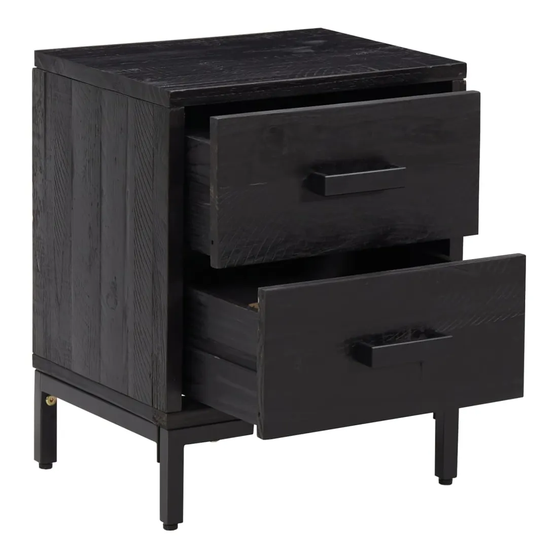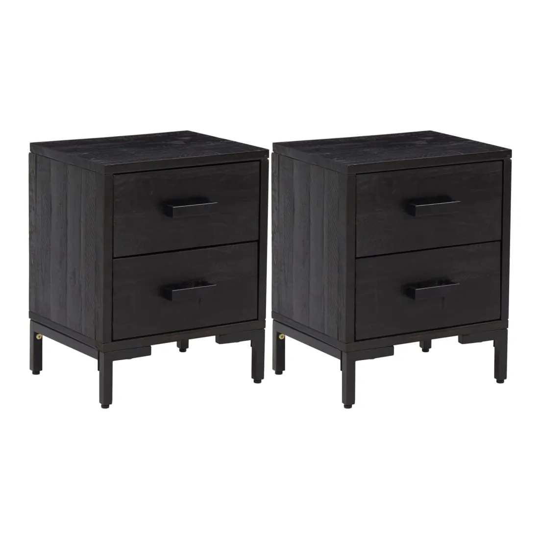 Ajoutez une touche vintage à votre pièce avec ces tables de chevet ! Elles sont un supplément pratique et décoratif à votre maison. Matériau durable : le bois de pin massif est un matériau naturel magnifique. Le bois de pin a un grain droit et les nœuds donnent au matériau son aspect caractéristique et rustique.Grand espace de rangement : l'armoire latérale est conçue avec 2 tiroirs pour garder les choses organisées et à portée de main.Dessus robuste : l'armoire latérale est dotée d'un dessus robuste, idéal pour placer vos tasses, livres et autres objets décoratifs.Pieds en métal : les pieds en métal de ces meubles de chambre à coucher assurent robustesse et stabilité. Remarque :Chaque produit est livré avec un manuel de montage dans la boîte pour un montage facile.