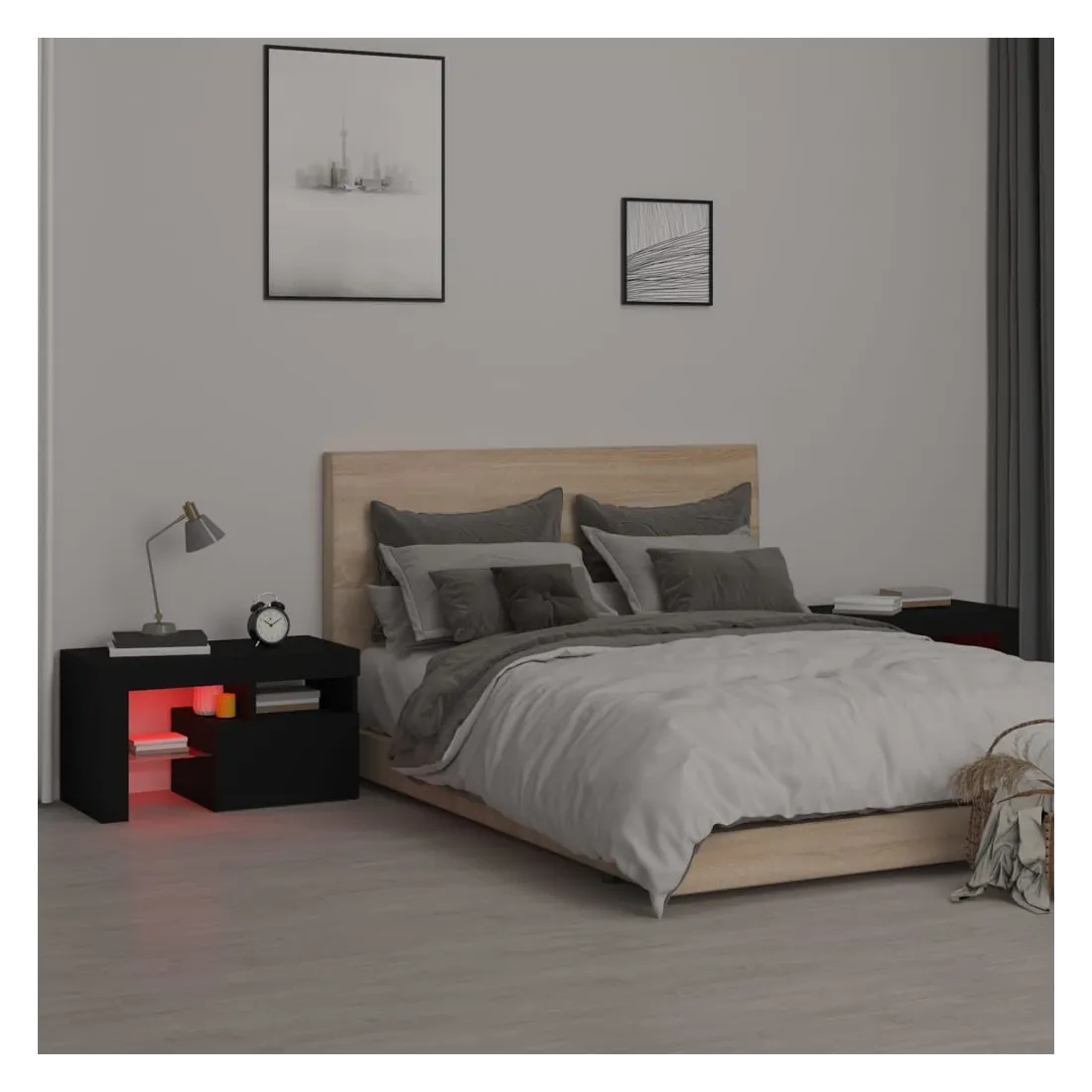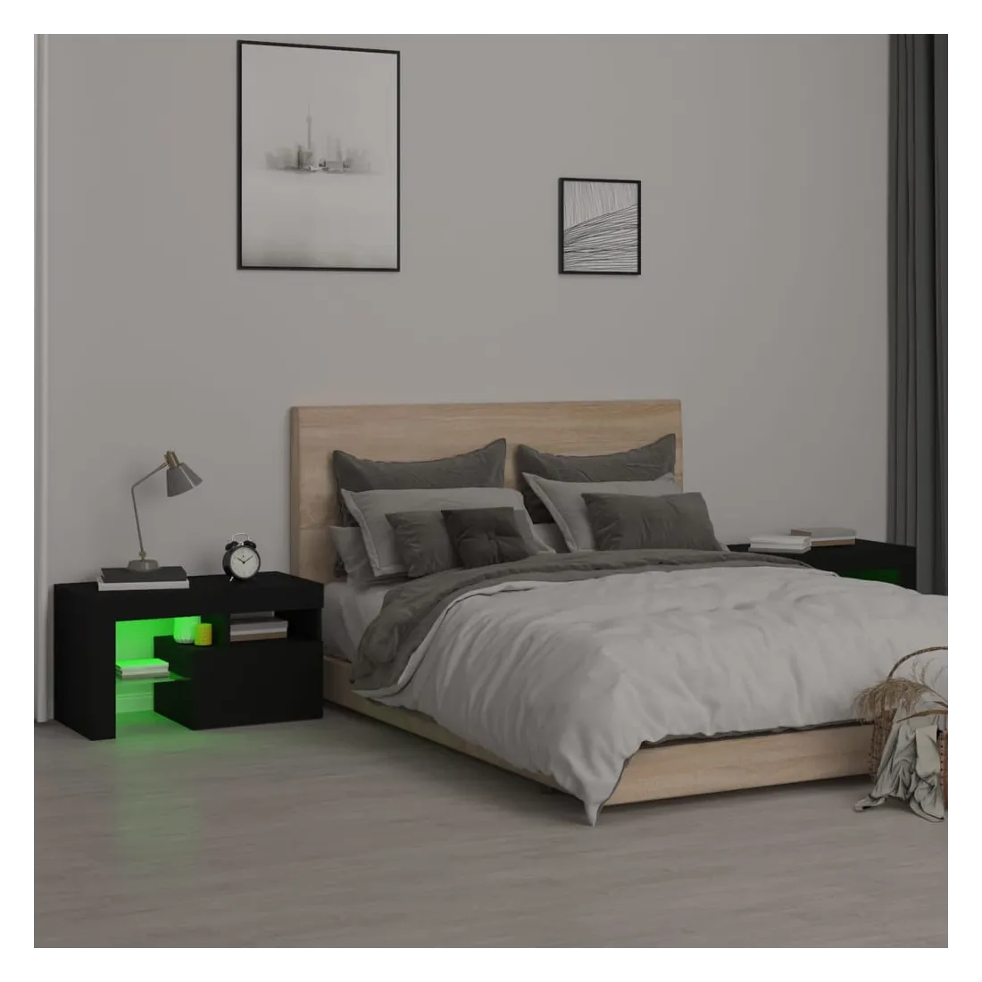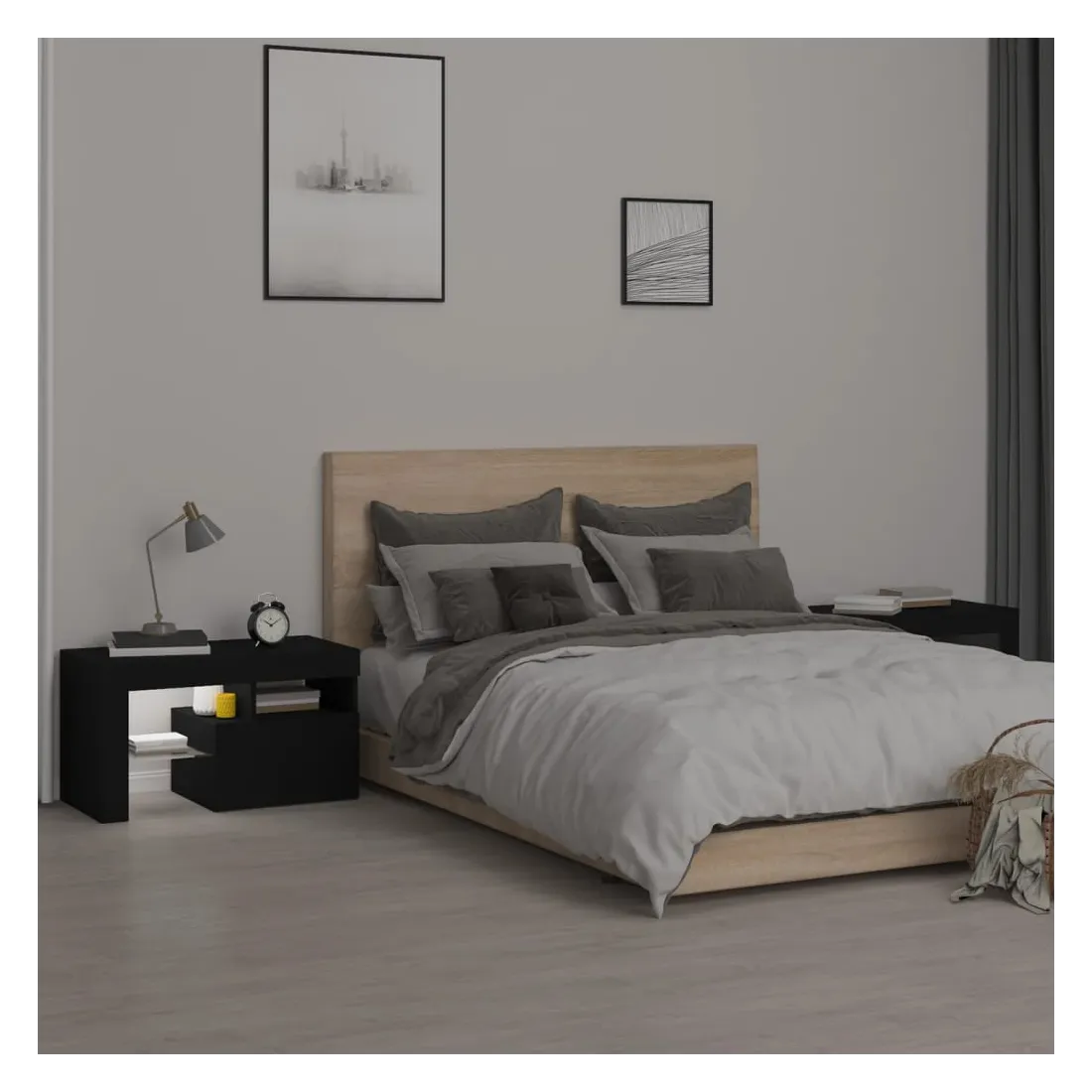 Ancrez votre espace de vie dans un charme contemporain avec ces tables de chevet élégantes ! Avec un design à la fois tendance et pratique, ces tables de chevet avec éclairage LED deviendront certainement le point de mire de votre pièce. Matériau durable : le bois d'ingénierie est d'une qualité exceptionnelle avec une surface lisse et présente également résistance, stabilité et résistance à l'humidité. Lumières LED RVB : l'armoire est équipée de lumières LED RVB, qui disposent de différents menus pour changer la couleur des lumières et laisser la couleur s'ajuster automatiquement de manière différente. Les lumières LED soulignent l'aspect moderne et contribuent à la sensation de tendance.Grand espace de rangement : la table de chevet offre un grand espace de rangement pour garder vos magazines, livres, télécommandes et autres petits objets bien organisés et à portée de main.Fonction d'affichage : le dessus robuste de l'armoire latérale est idéal pour exposer des objets décoratifs, des cadres photo ou des plantes en pot. Remarque :Ce produit est doté d'un connecteur USB, mais la source d'alimentation certifiée de USB 5V n'est pas incluse.Chaque produit est livré avec un manuel de montage dans la boîte pour un montage facile.