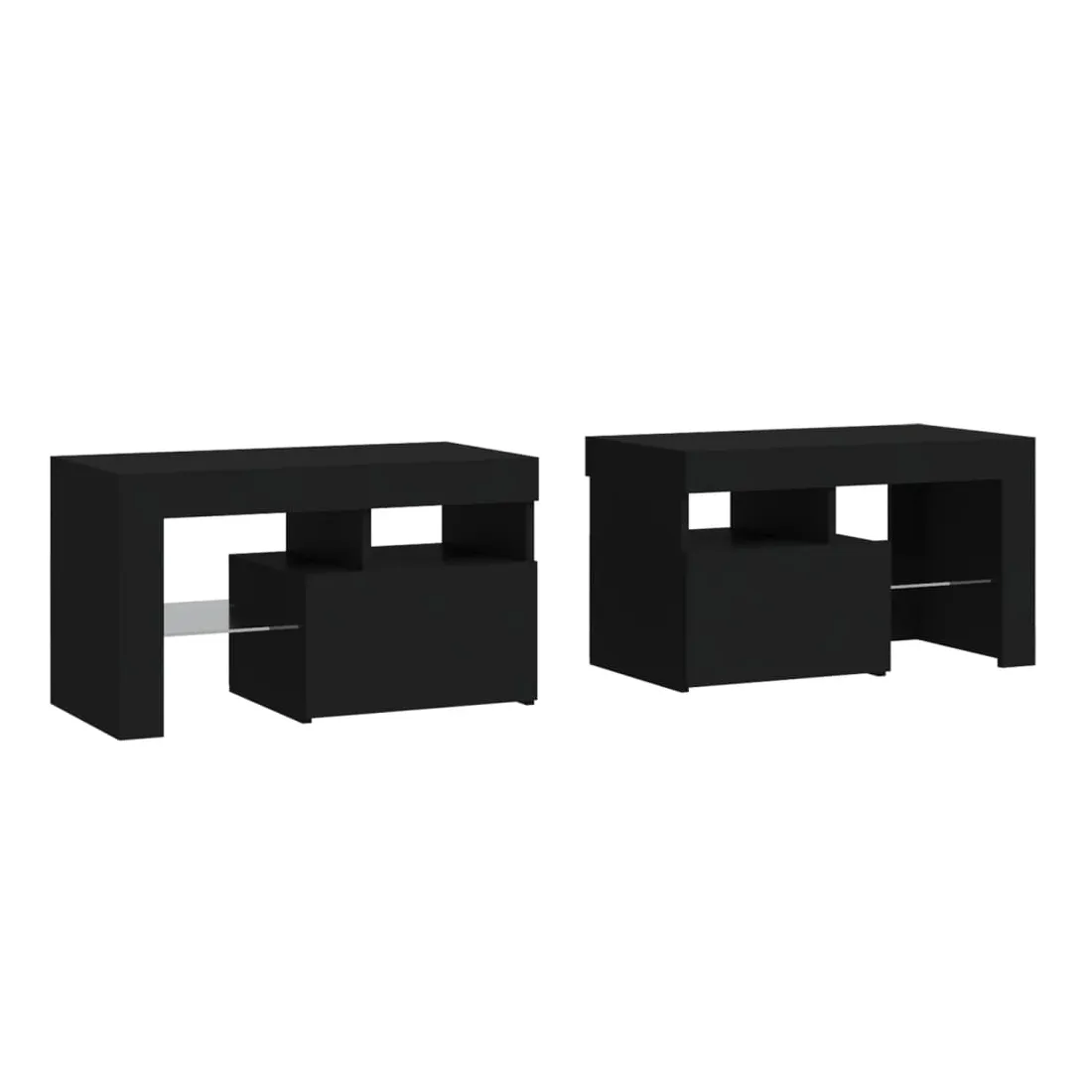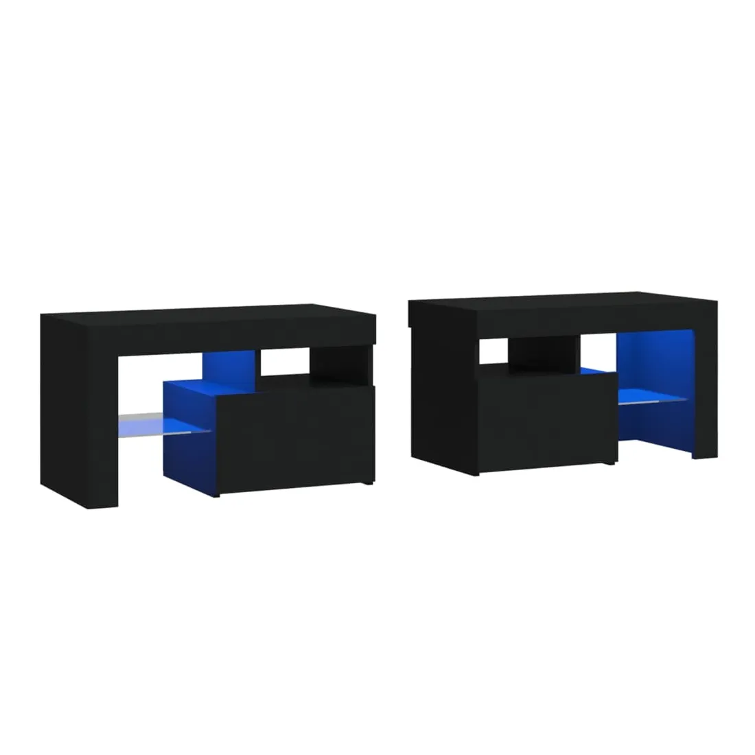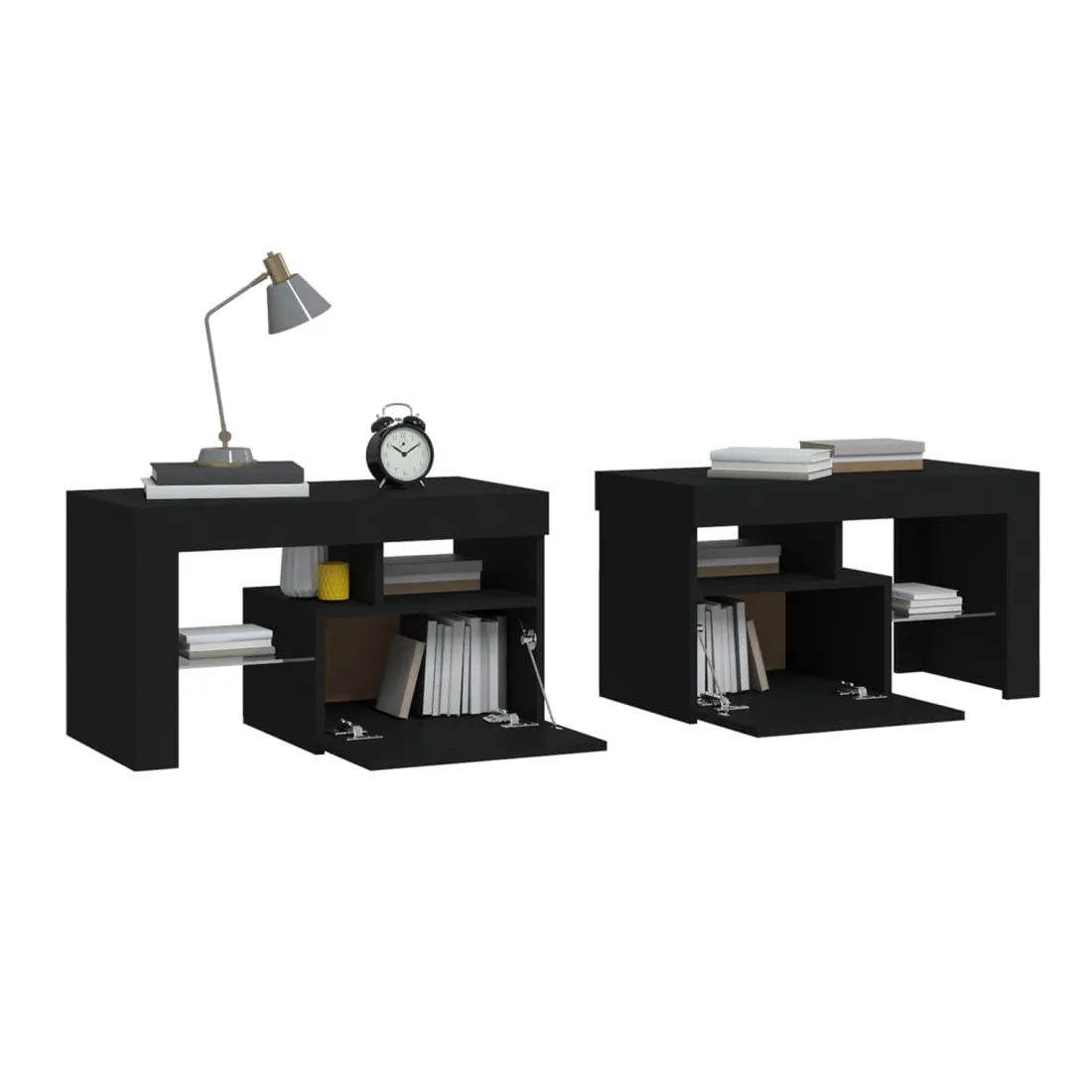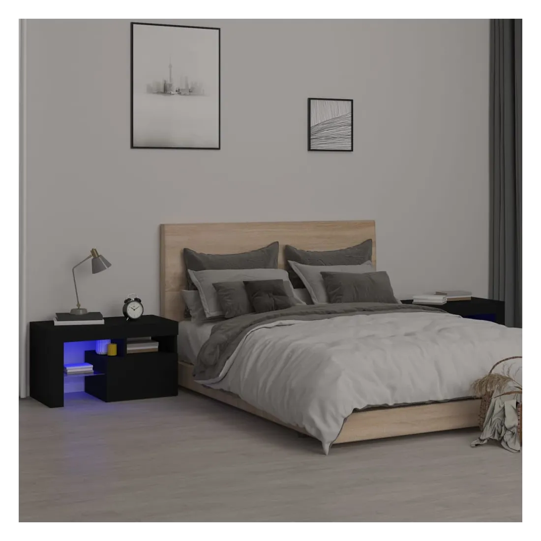 Ancrez votre espace de vie dans un charme contemporain avec ces tables de chevet élégantes ! Avec un design à la fois tendance et pratique, ces tables de chevet avec éclairage LED deviendront certainement le point de mire de votre pièce. Matériau durable : le bois d'ingénierie est d'une qualité exceptionnelle avec une surface lisse et présente également résistance, stabilité et résistance à l'humidité. Lumières LED RVB : l'armoire est équipée de lumières LED RVB, qui disposent de différents menus pour changer la couleur des lumières et laisser la couleur s'ajuster automatiquement de manière différente. Les lumières LED soulignent l'aspect moderne et contribuent à la sensation de tendance.Grand espace de rangement : la table de chevet offre un grand espace de rangement pour garder vos magazines, livres, télécommandes et autres petits objets bien organisés et à portée de main.Fonction d'affichage : le dessus robuste de l'armoire latérale est idéal pour exposer des objets décoratifs, des cadres photo ou des plantes en pot. Remarque :Ce produit est doté d'un connecteur USB, mais la source d'alimentation certifiée de USB 5V n'est pas incluse.Chaque produit est livré avec un manuel de montage dans la boîte pour un montage facile.