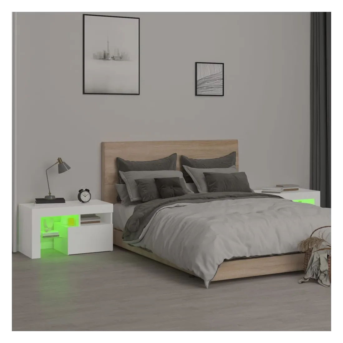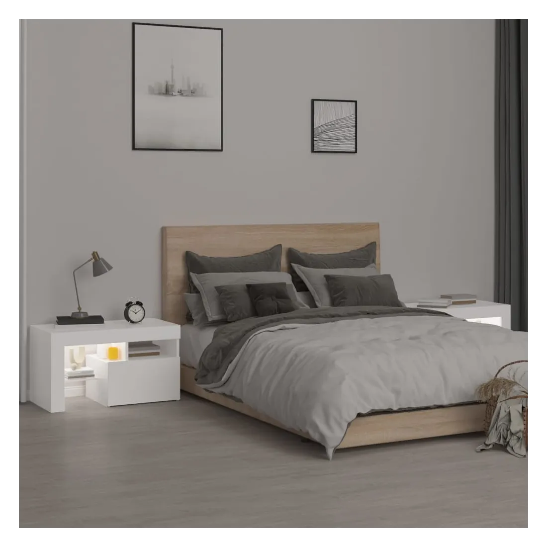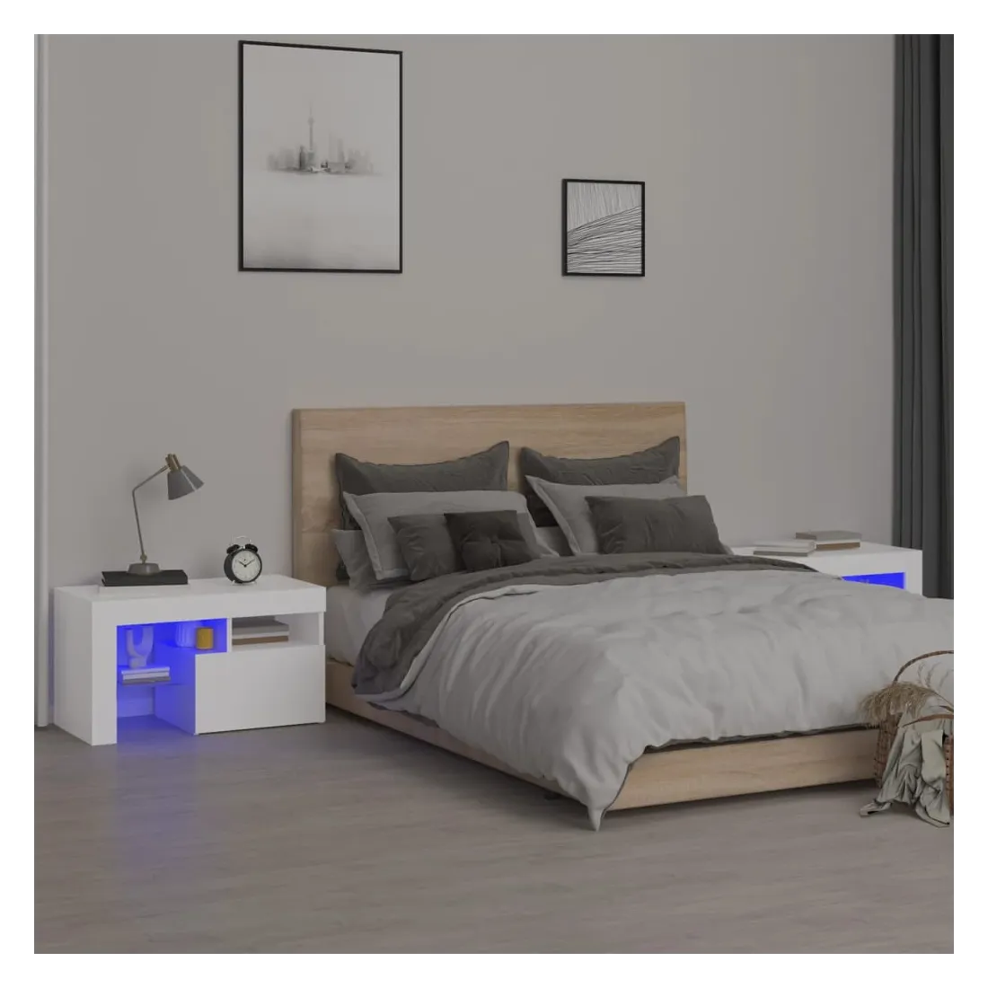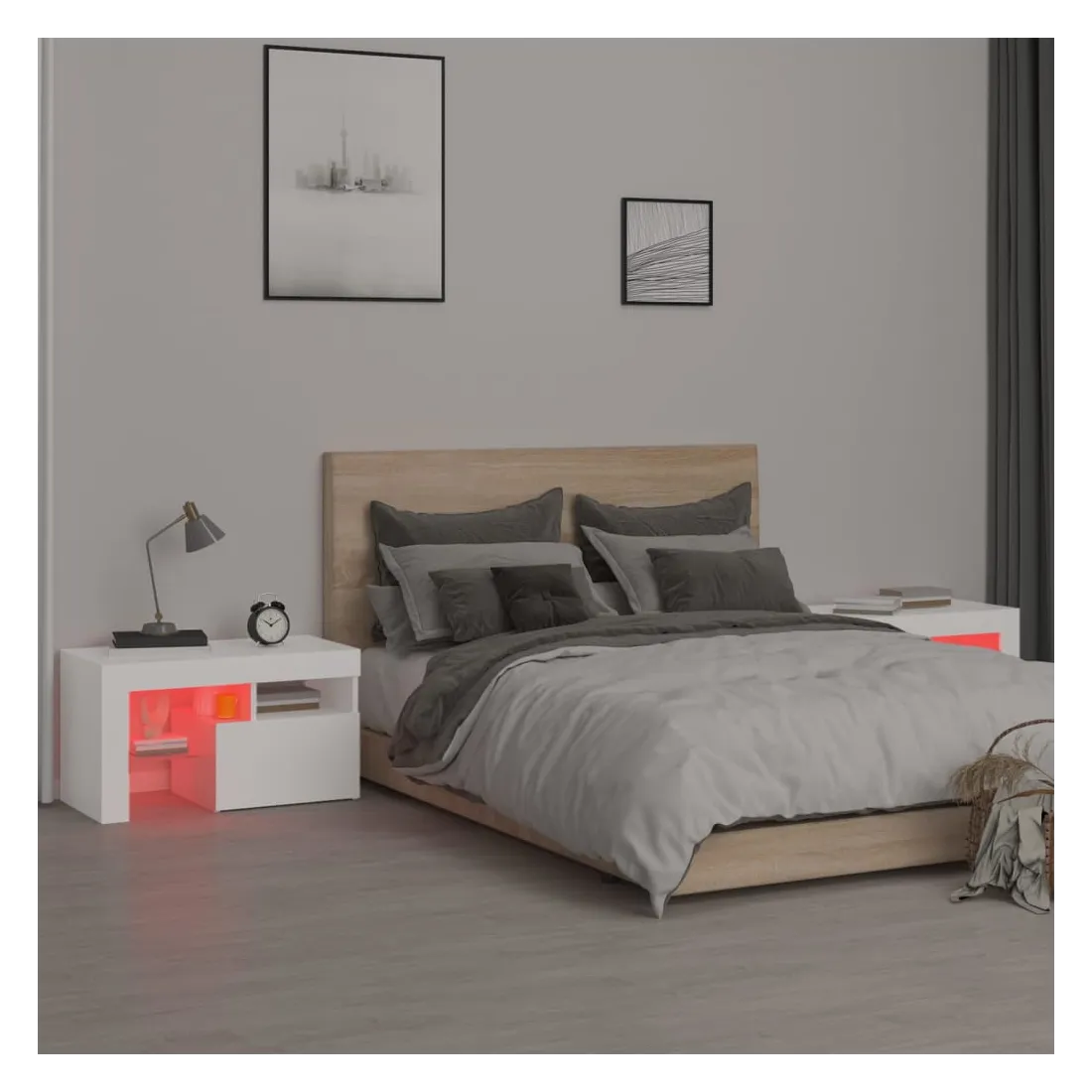 vidaXLAncrez votre espace de vie dans un charme contemporain avec ces tables de chevet élégantes ! Avec un design à la fois tendance et pratique, ces tables de chevet avec éclairage LED deviendront certainement le point de mire de votre pièce. Matériau durable : le bois d'ingénierie est d'une qualité exceptionnelle avec une surface lisse et présente également résistance, stabilité et résistance à l'humidité. Lumières LED RVB : l'armoire est équipée de lumières LED RVB, qui disposent de différents menus pour changer la couleur des lumières et laisser la couleur s'ajuster automatiquement de manière différente. Les lumières LED soulignent l'aspect moderne et contribuent à la sensation de tendance.Grand espace de rangement : la table de chevet offre un grand espace de rangement pour garder vos magazines, livres, télécommandes et autres petits objets bien organisés et à portée de main.Fonction d'affichage : le dessus robuste de l'armoire latérale est idéal pour exposer des objets décoratifs, des cadres photo ou des plantes en pot. Remarque :Ce produit est doté d'un connecteur USB, mais la source d'alimentation certifiée de USB 5V n'est pas incluse.Chaque produit est livré avec un manuel de montage dans la boîte pour un montage facile.