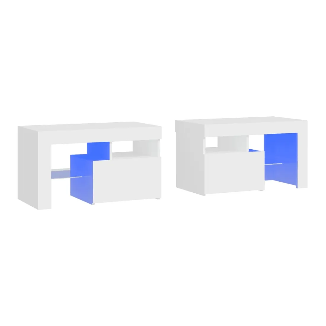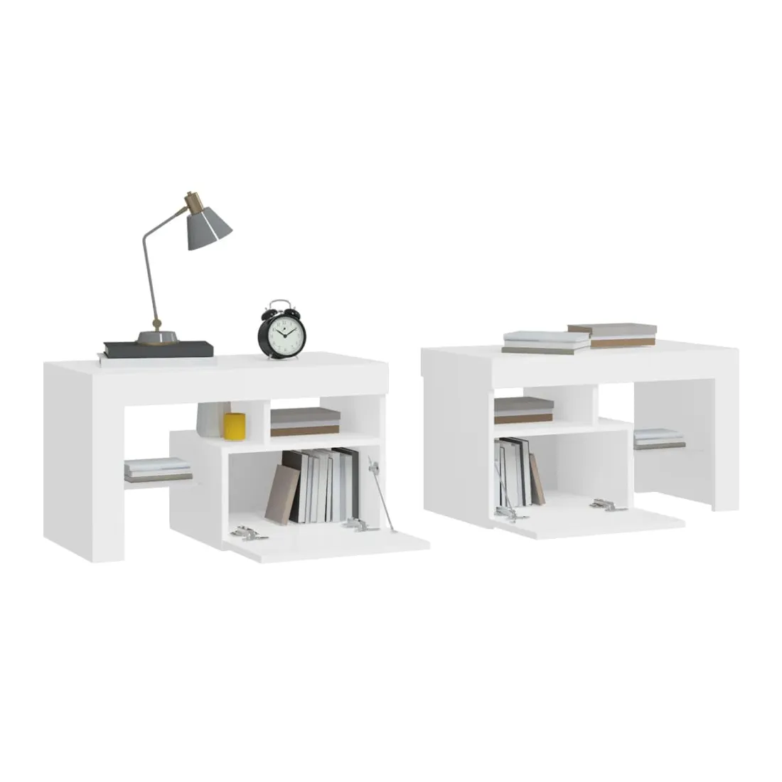 Tables de chevet 2 pcs et lumières LED Blanc 70x36,5x40 cm