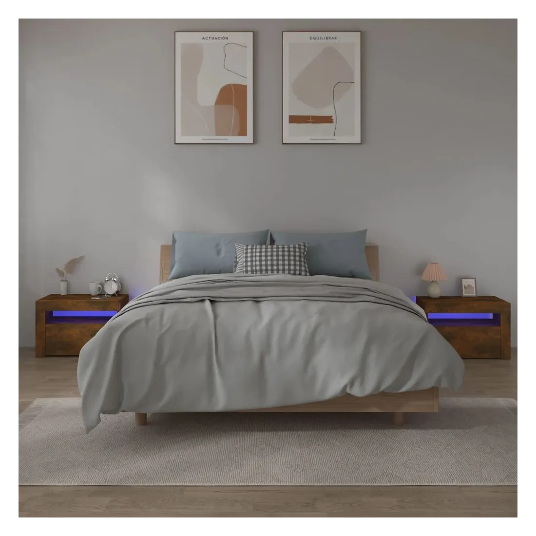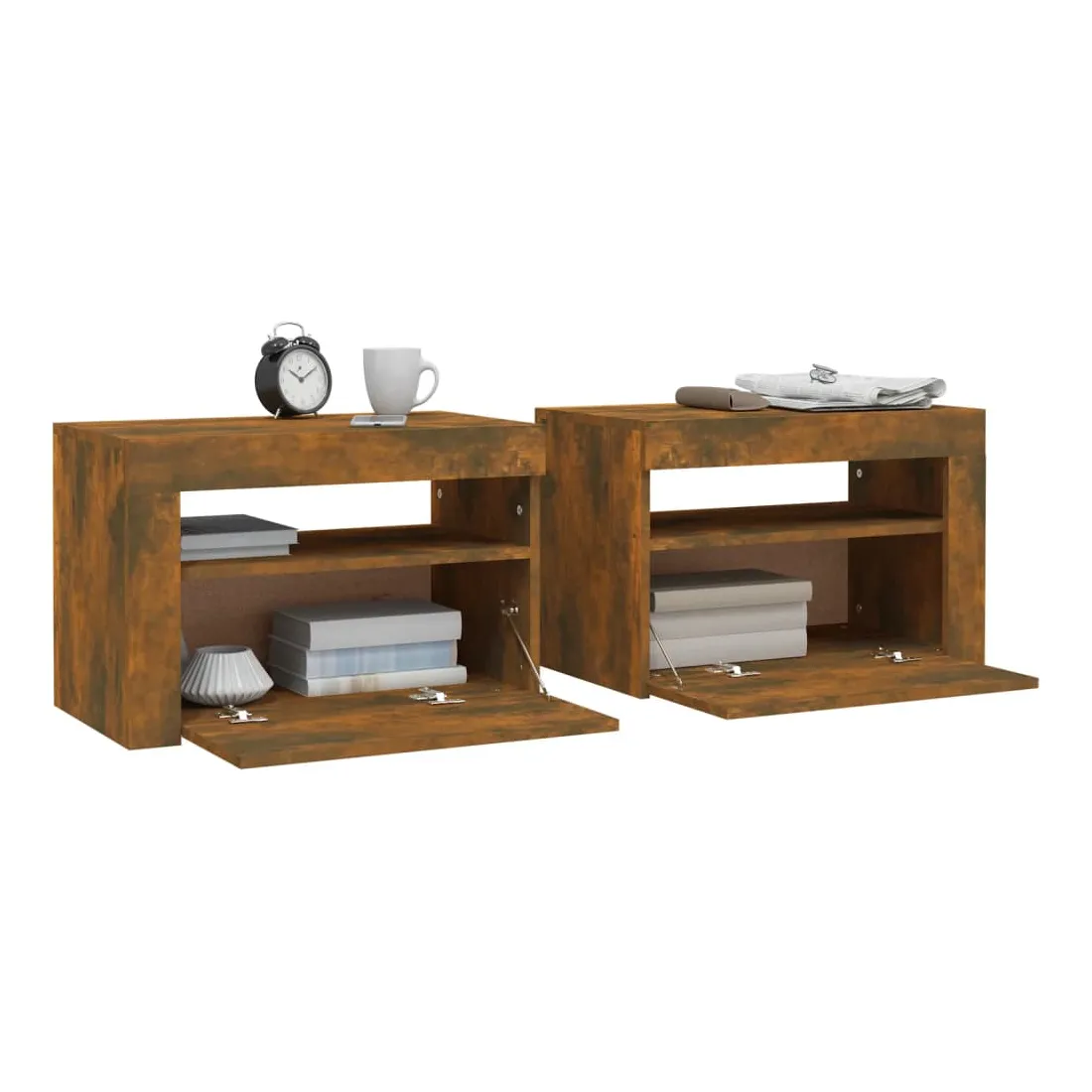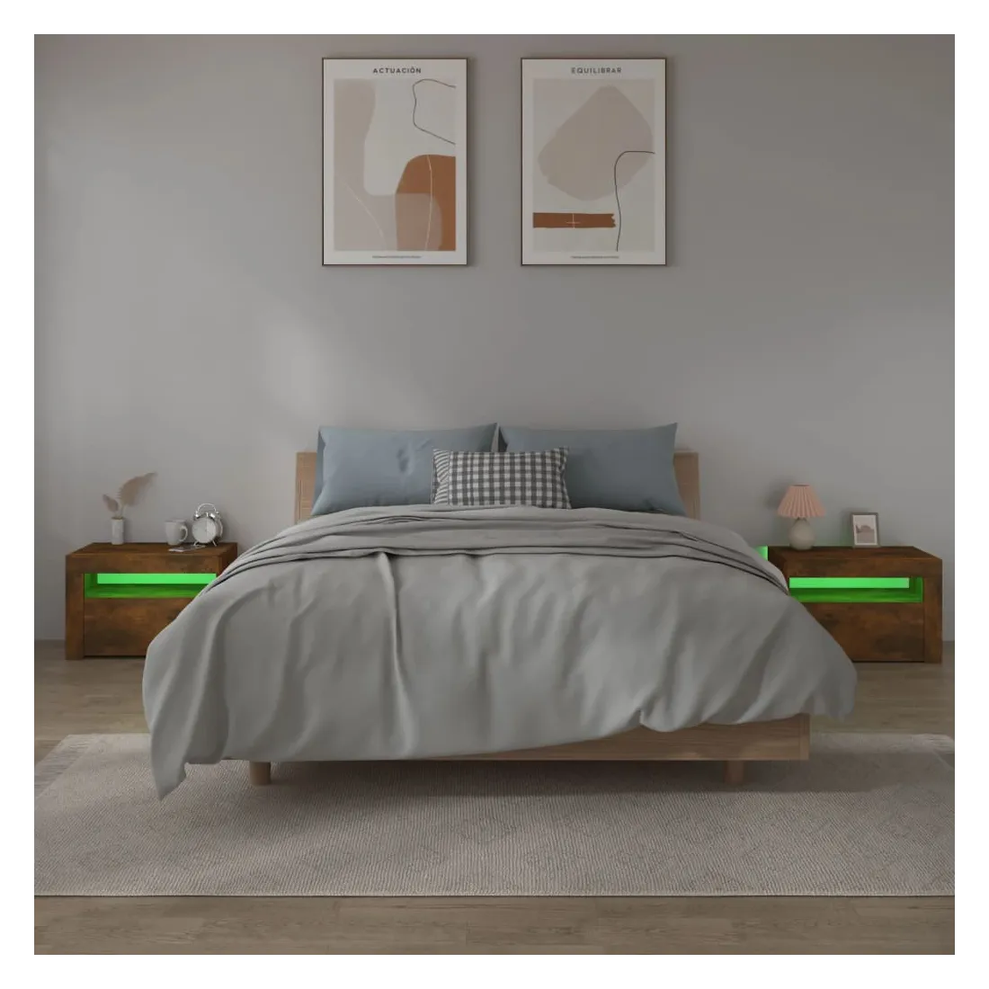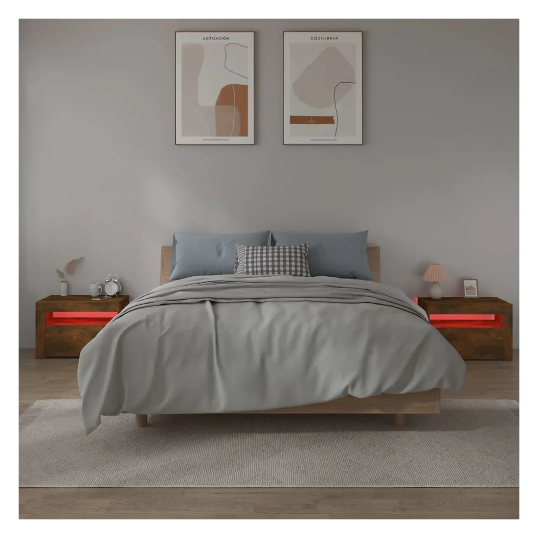 Avec un design à la fois tendance et pratique, ces tables de chevet constituent certainement un point central de votre pièce. Matériau pratique : le bois d'ingénierie est d'une qualité exceptionnelle avec une surface lisse et présente également résistance, stabilité et résistance à l'humidité. Fabriquée en bois d'ingénierie, les tables de chevet sont faciles à nettoyer.Lumières LED RVB : ces tables de chevet sont dotées de lumières LED RVB, qui ont différents menus pour changer la couleur des lumières et laisser la couleur s'ajuster automatiquement. Les lumières LED soulignent l'aspect moderne et contribuent à la sensation de tendance.Grand espace de rangement : l'espace de rangement des tables de chevet facilite l'organisation des articles.Armoires multifonctionnelles : les dessus robustes sont idéaux pour exposer des objets décoratifs, des cadres photo ou des plantes en pot. Ils peuvent également être utilisés comme armoires latérales, tables de bout, etc. Remarque :Chaque produit est livré avec un manuel de montage dans la boîte pour un montage facile.Ce produit est doté d'un connecteur USB, mais la source d'alimentation certifiée de USB 5V n'est pas incluse.
