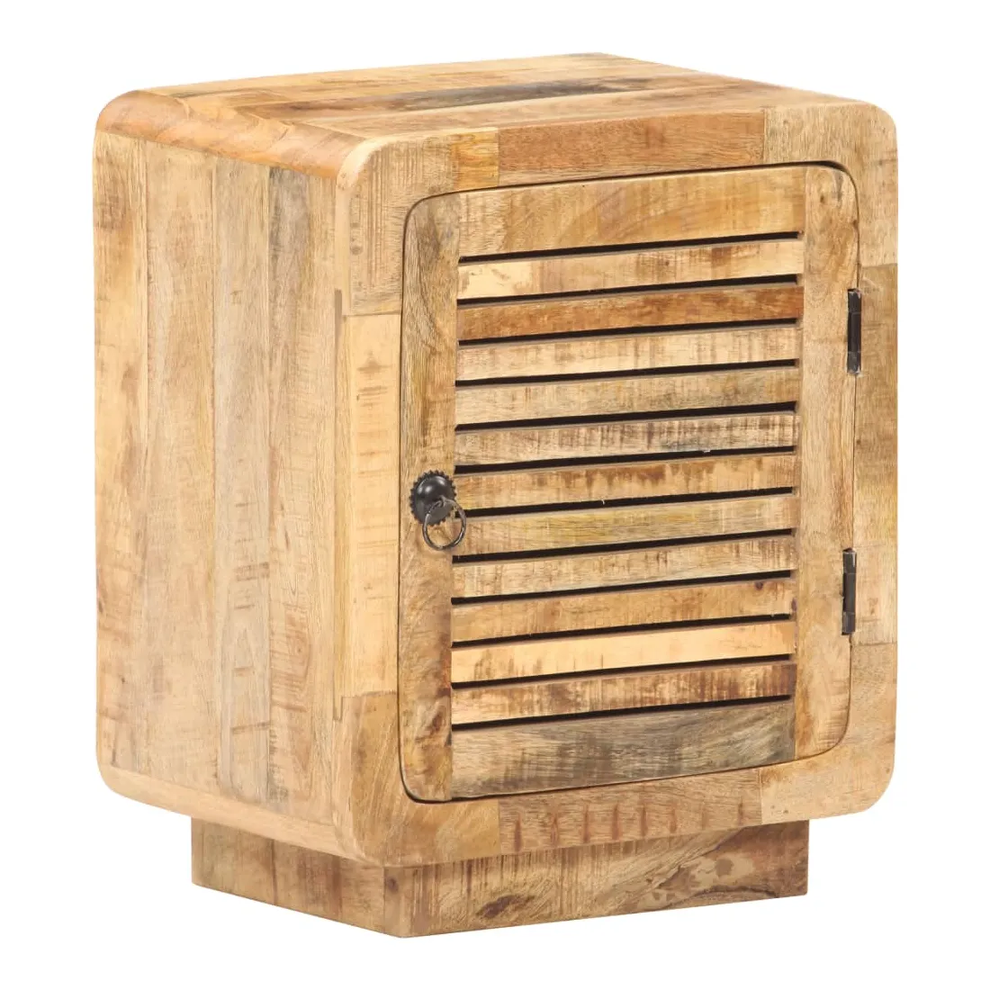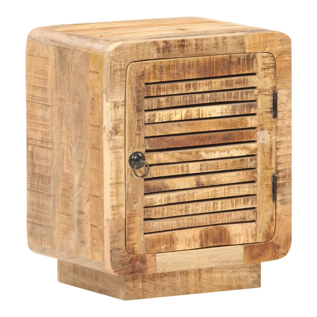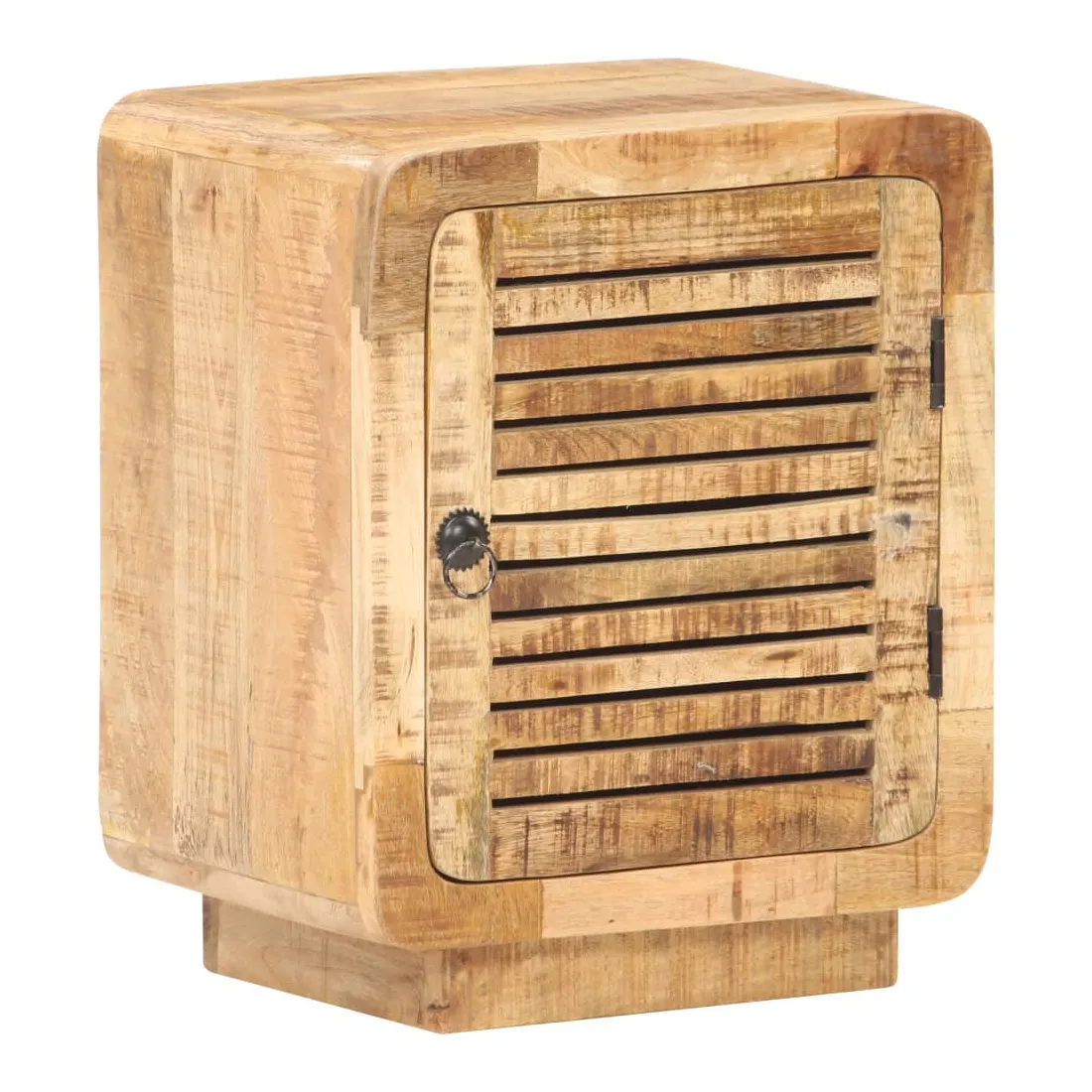 Cette table de chevet en bois dégage un charme rustique à votre décoration intérieure existante. Fabriquée en bois de manguier brut avec une finition naturelle, un bois dur tropical avec la force de soutenir le poids et de résister à l’usure du temps, cette table de chevet est stable et durable. Le savoir-faire et les belles veines du bois rendent chaque meuble unique et légèrement différent l'un de l'autre. Elle dispose d’un grand compartiment derrière une porte pour ranger vos articles. Le dessus de table robuste peut être utilisé pour afficher des articles décoratifs. Elle sert même de table de nuit, d'armoire de rangement, de table d'appoint, etc. Remarque importante : les couleurs et les grains varient d'une pièce à l'autre, rendant chaque pièce unique. La livraison est aléatoire, ce qui garantit l'exclusivité et l'individualité de votre produit.
