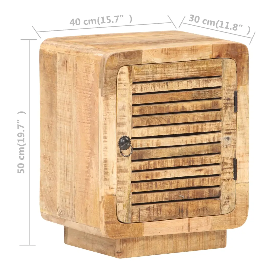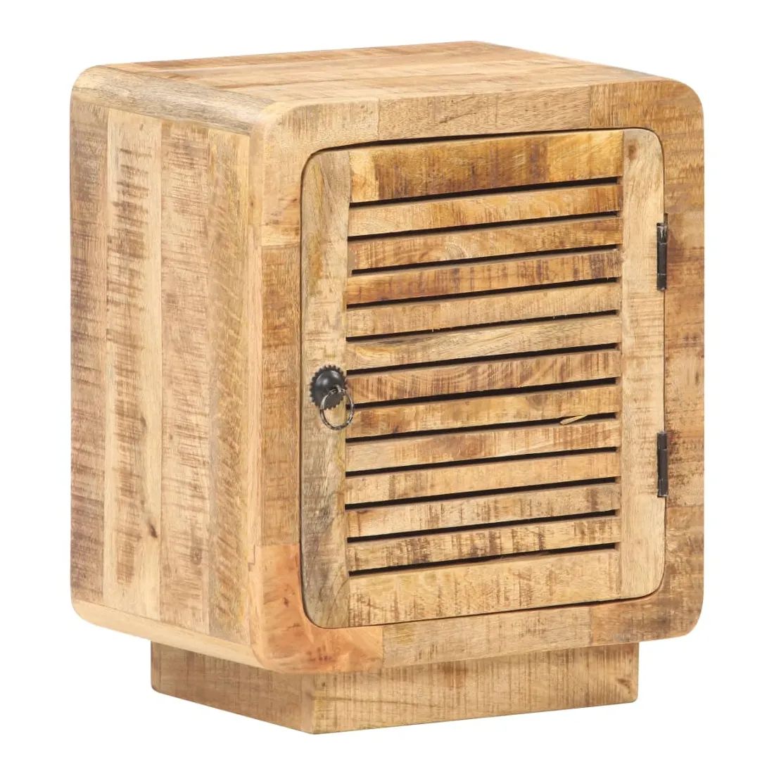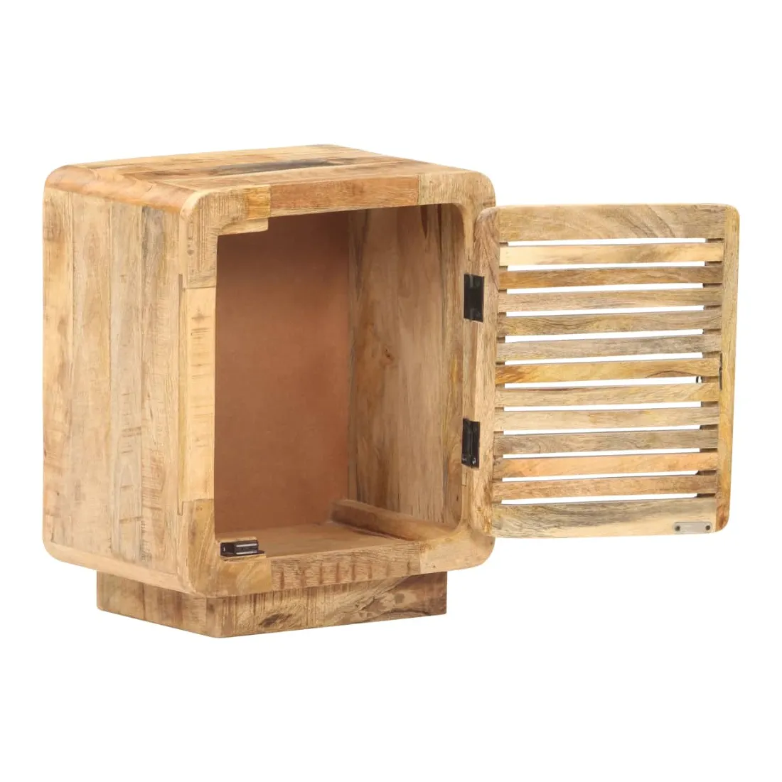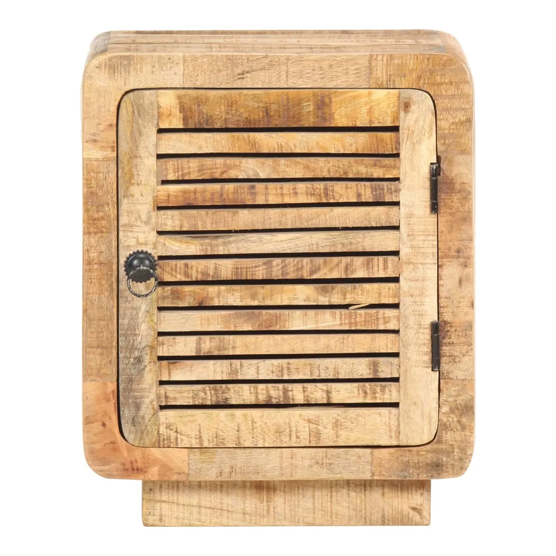 Cette table de chevet en bois dégage un charme rustique à votre décoration intérieure existante. Fabriquée en bois de manguier brut avec une finition naturelle, un bois dur tropical avec la force de soutenir le poids et de résister à l’usure du temps, cette table de chevet est stable et durable. Le savoir-faire et les belles veines du bois rendent chaque meuble unique et légèrement différent l'un de l'autre. Elle dispose d’un grand compartiment derrière une porte pour ranger vos articles. Le dessus de table robuste peut être utilisé pour afficher des articles décoratifs. Elle sert même de table de nuit, d'armoire de rangement, de table d'appoint, etc. Remarque importante : les couleurs et les grains varient d'une pièce à l'autre, rendant chaque pièce unique. La livraison est aléatoire, ce qui garantit l'exclusivité et l'individualité de votre produit.