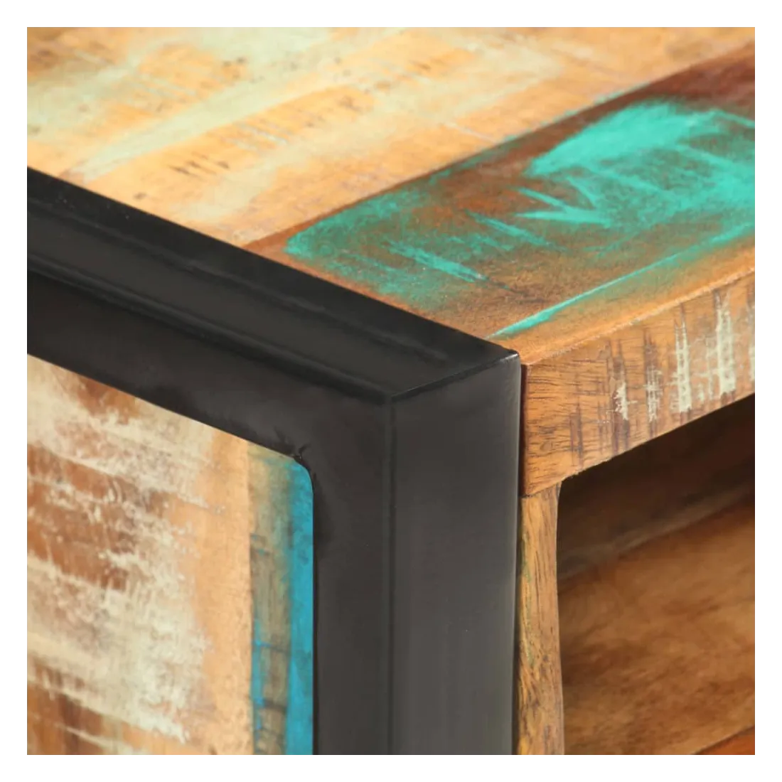 - Matériau : bois de récupération massif avec une finition naturelle, acier enduit de poudre