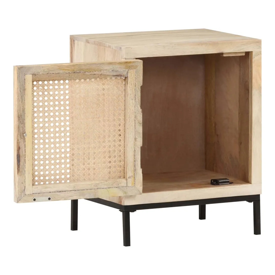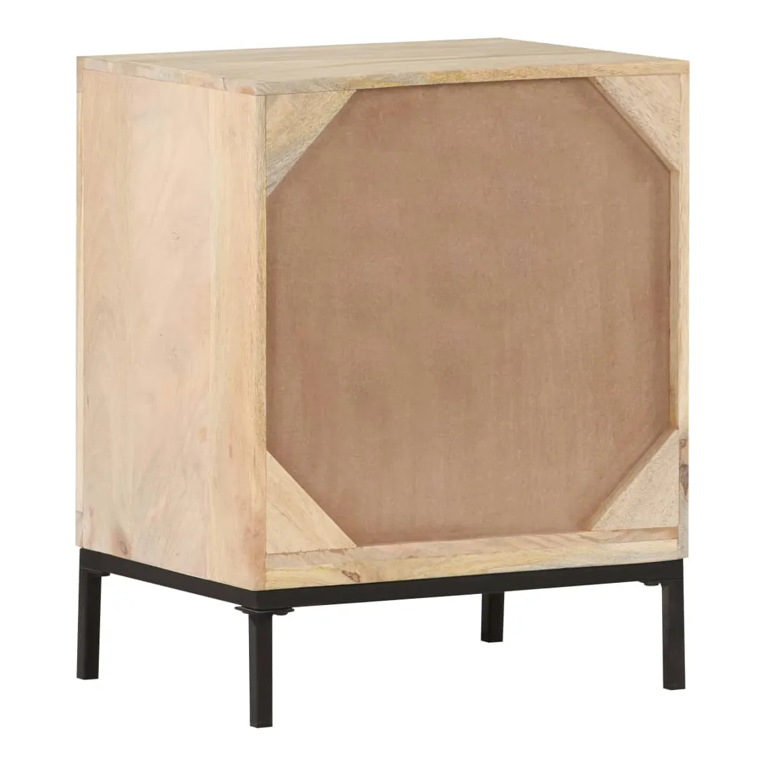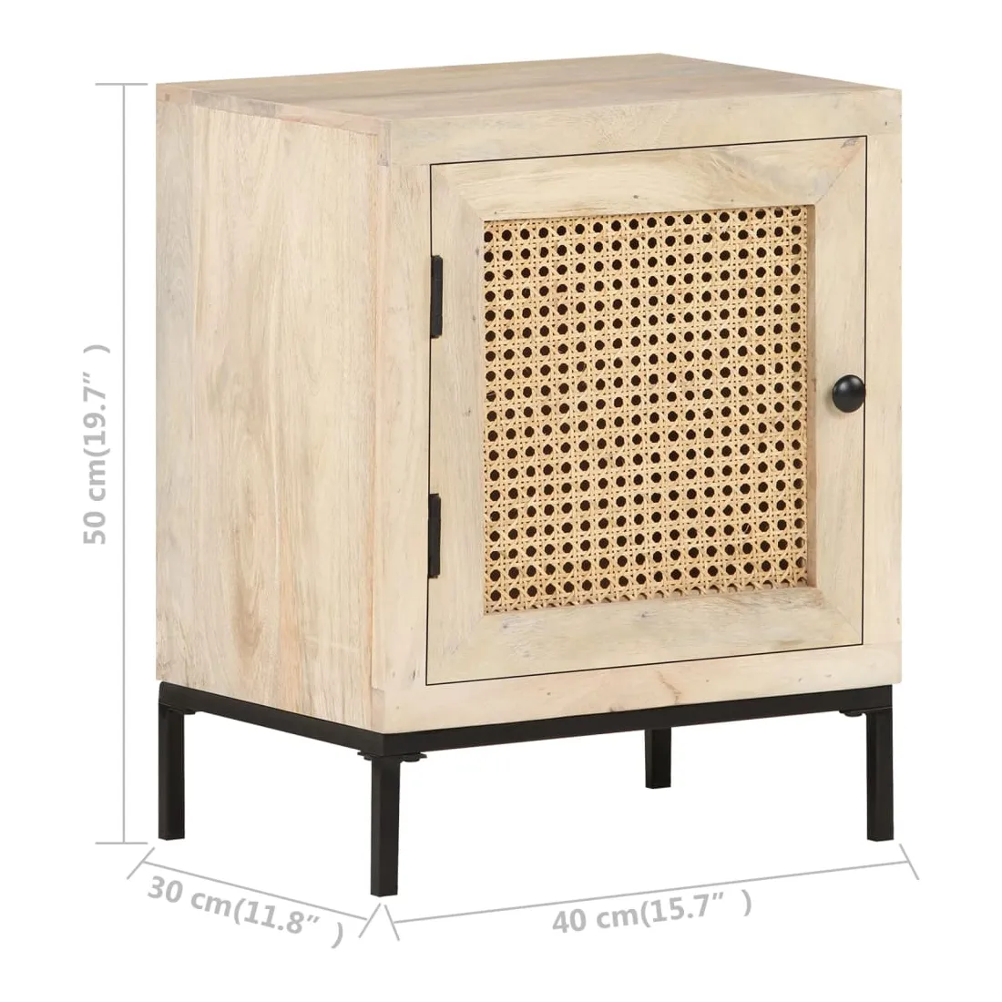 Si vous recherchez une touche de charme rustique à ajouter à votre décoration intérieure, cette table de chevet en bois de manguier massif sera pour vous. Le bois de manguier massif est un bois dur tropical. Il a d'une part la force de soutenir le poids, et d'autre part résiste à l'usure du temps. De plus, le savoir-faire exquis et les beaux grains de bois rendent chaque pièce de table de chevet légèrement différente l'une de l'autre. La table de chevet est équipée d'un grand espace de rangement, donc vous pouvez afficher ou garder bien organisés tous les articles que vous souhaitez. La base en acier contribue à sa robustesse et à sa stabilité. De plus, l’armoire latérale présente un motif de canne tissé à la main sur la porte, ajoutant à son charme rustique. Remarque importante : les couleurs varient d'une pièce à l'autre, ce qui rend chaque table de chevet en bois unique.