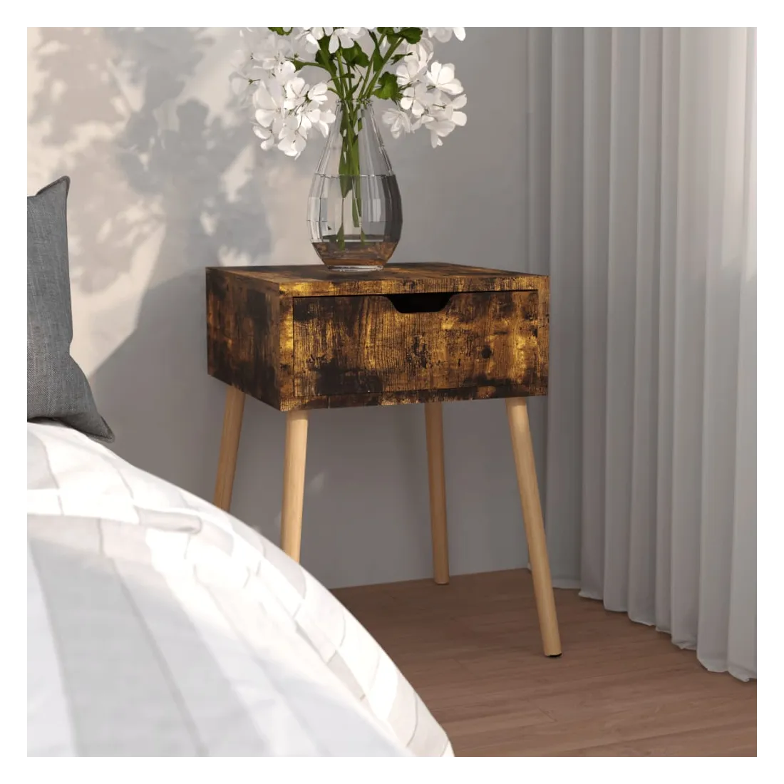 Cette table de chevet dégage une touche de charme moderne et constitue un excellent supplément à la décoration actuelle de votre pièce. La table de chevet est fabriquée en bois d'ingénierie, ce qui la rend durable et facile à nettoyer. En tant qu'armoire universelle, vous pouvez placer vos magazines, livres et décors sur le dessus et à portée de main. Avec un tiroir, les télécommandes et autres petits objets peuvent être bien organisés. Améliorez votre intérieur avec cette élégante table d'appoint !